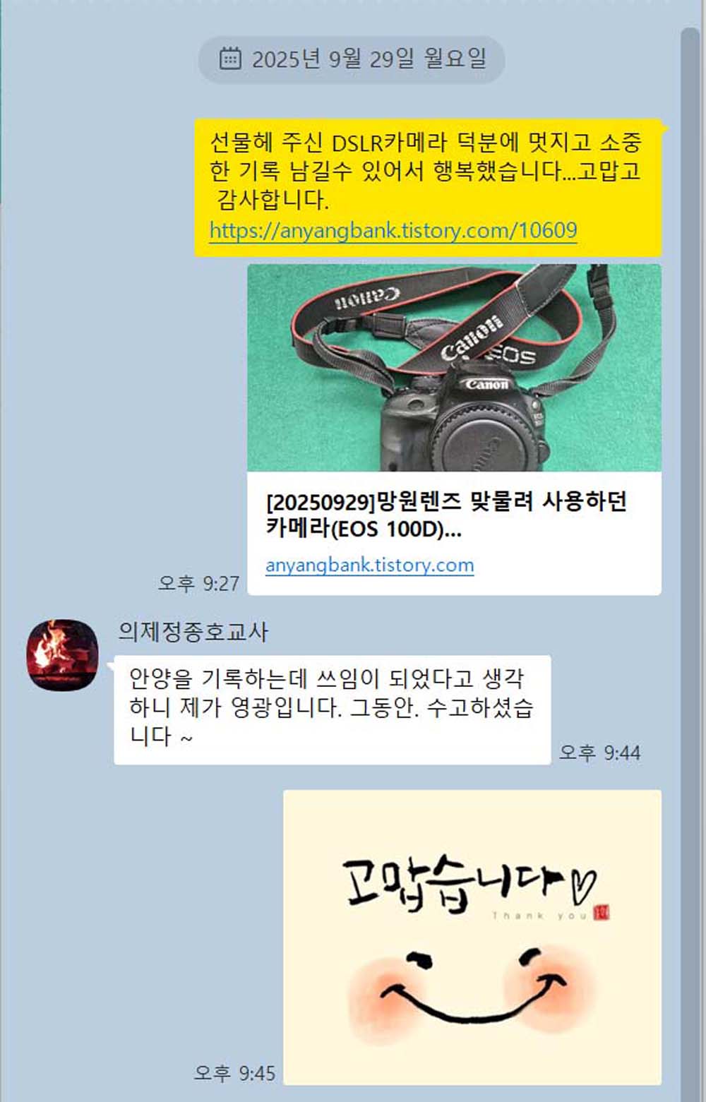 "선물헤 주신 DSLR카메라 덕분에 멋지고 소중한 기록 남길수 있어서 행복했습니다...고맙고 감사합니다."