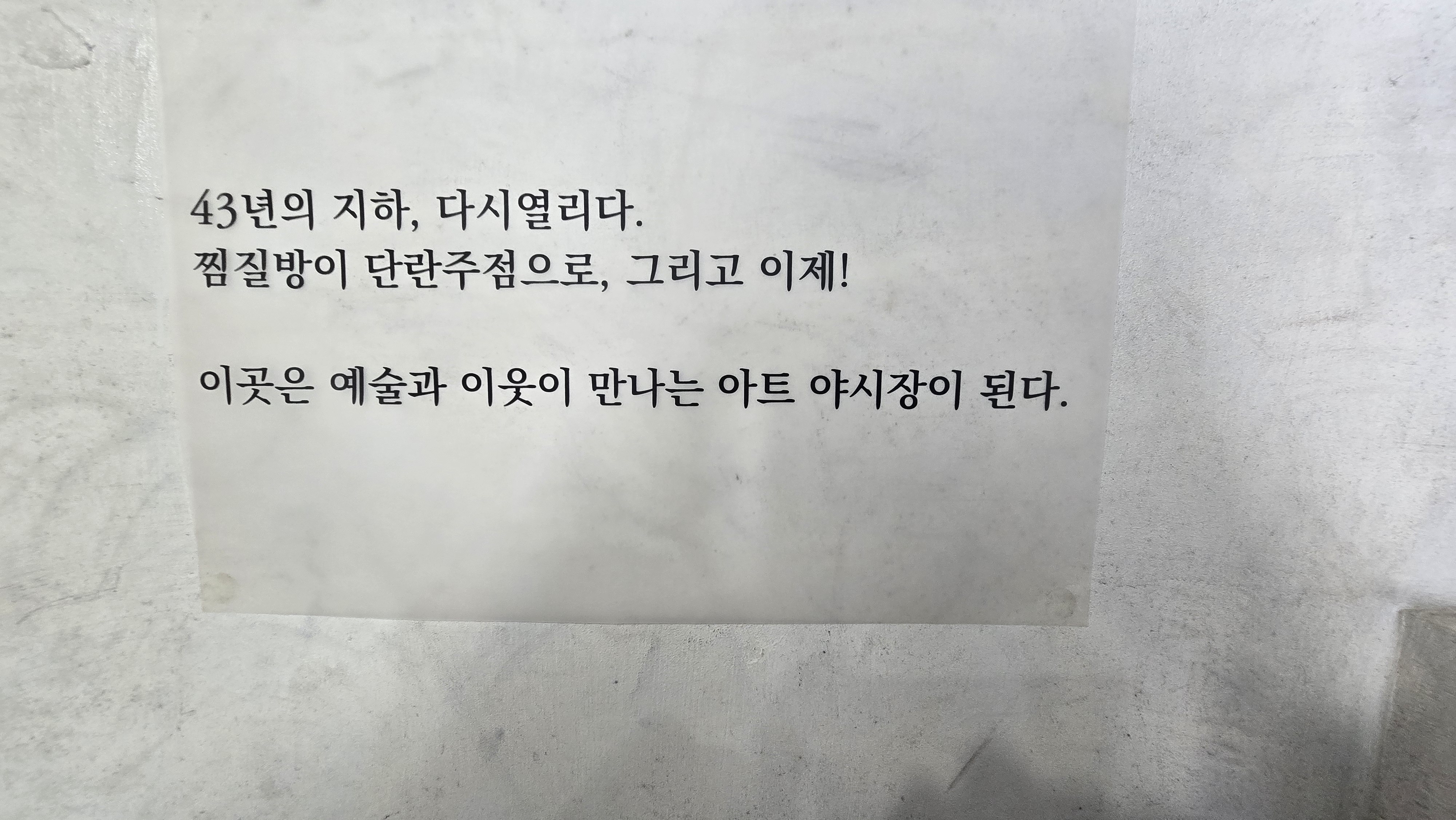 이번 프로젝트는 오래된 것의 가치를 소중히 여기는 사람들 열여덟 명의 참여자가 모여 함께 기획하고 공사하고 한 달 반 동안 함께했다. 주말마다 모여 공부하고 아이디어를 나누며, 직접 시공까지 더해 버려진 지하에 새 숨결을 불어 넣은후 전시와 아트마켓, 책과 디제잉, 플라멩고 공연 그리고 새로운 만남으로 많은이들과 함께했다.