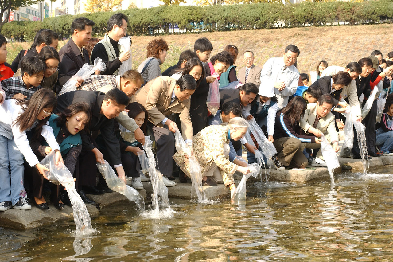 제인 구달박사는 2004년 11월 9일 국내 대표적인 "죽은 하천"에서 되살아나 버들치, 참게 등이 서식하고 철새까지 날아오면서 도내에서 수질개선 성공 하천의 대표적 사례로 타 지자체 공무원들과 환경단체, 시민들이 벤치마킹 오는 곳이 된 안양천(학의천)을 방문한바 있다. 안양 학운공원앞에는 그가 몰고기를 방사했던 돌다리가 있으며 제인구달 돌다리라 불리운다.