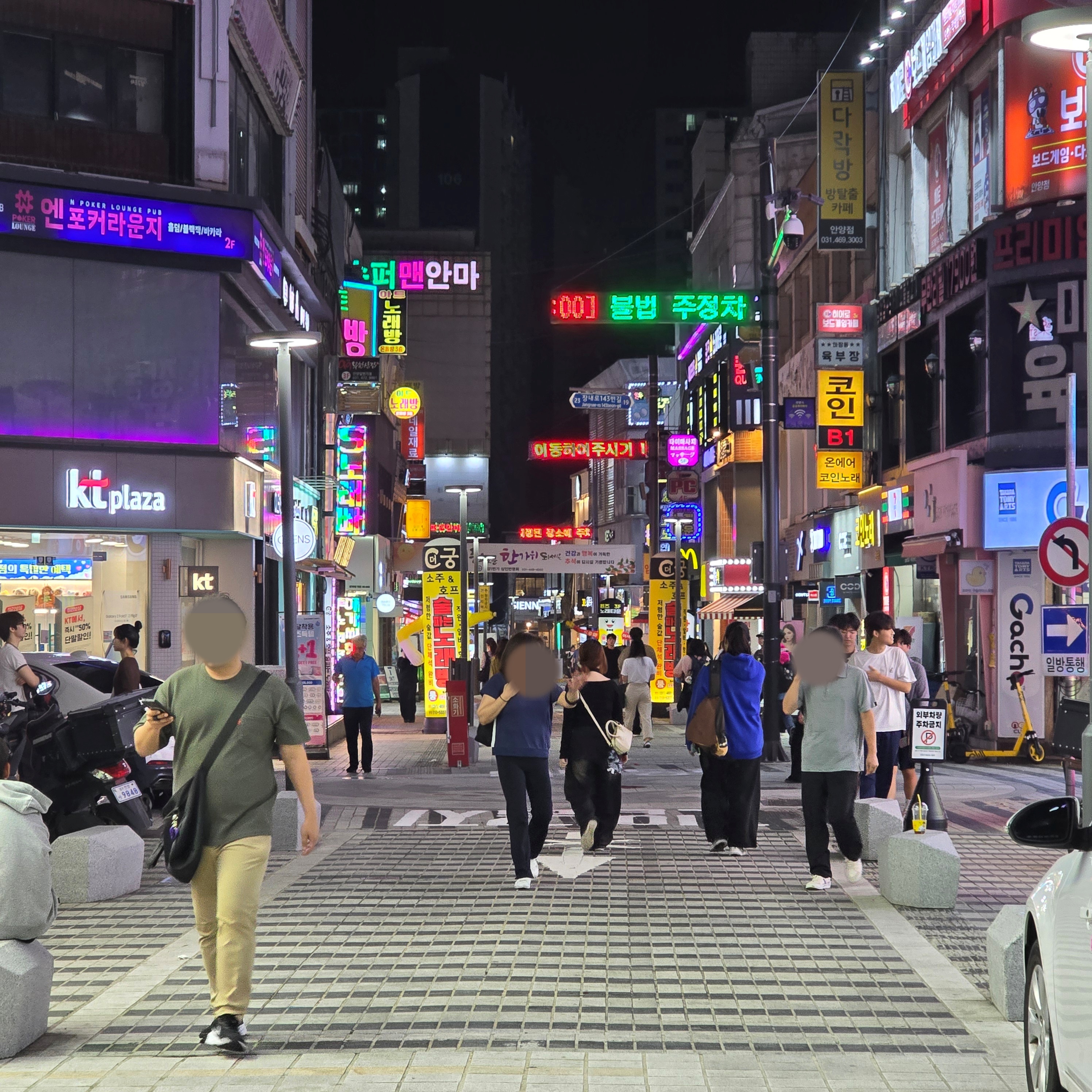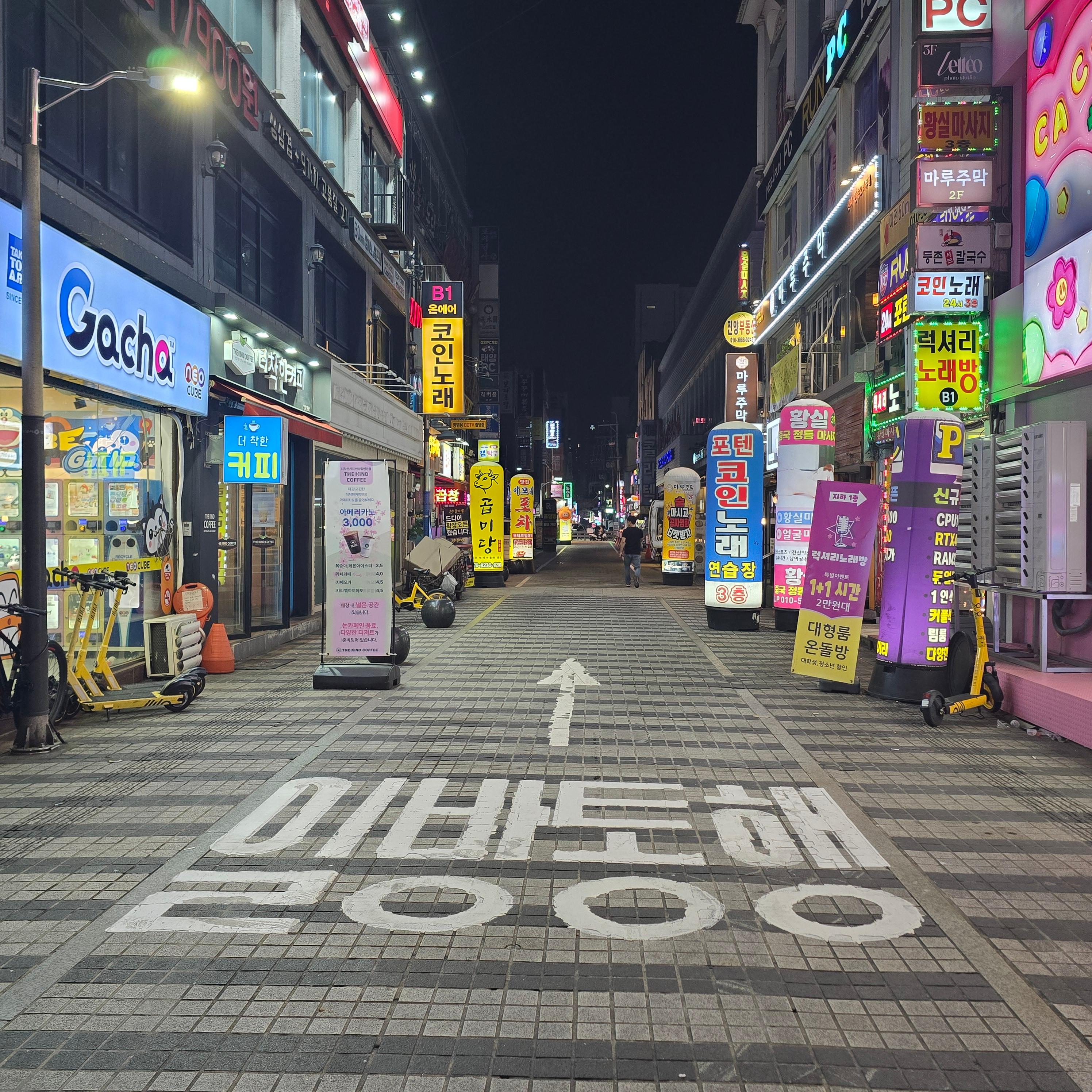 안양 최대 번화가였던 안양역과 연접한 안양일번가의 밤거리. 밤이 되니 비어 있거나 영업을 안해 불 꺼진 점포들이 많이 보인다,