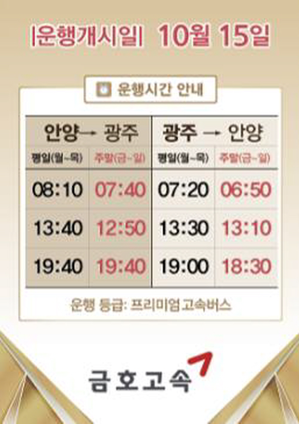 [20251015]안양~전남 광주행 고속버스 하루 3회 운행 시작