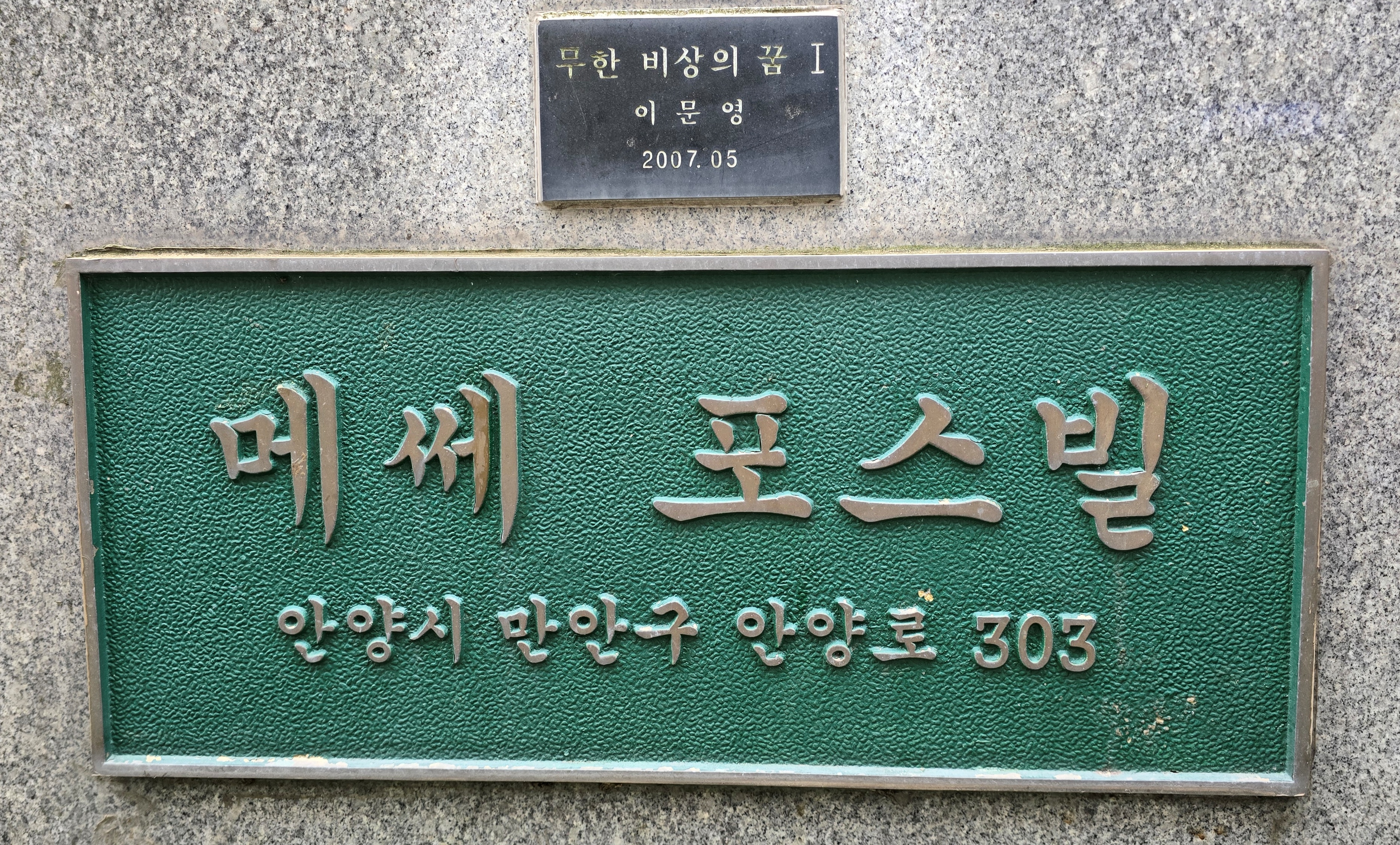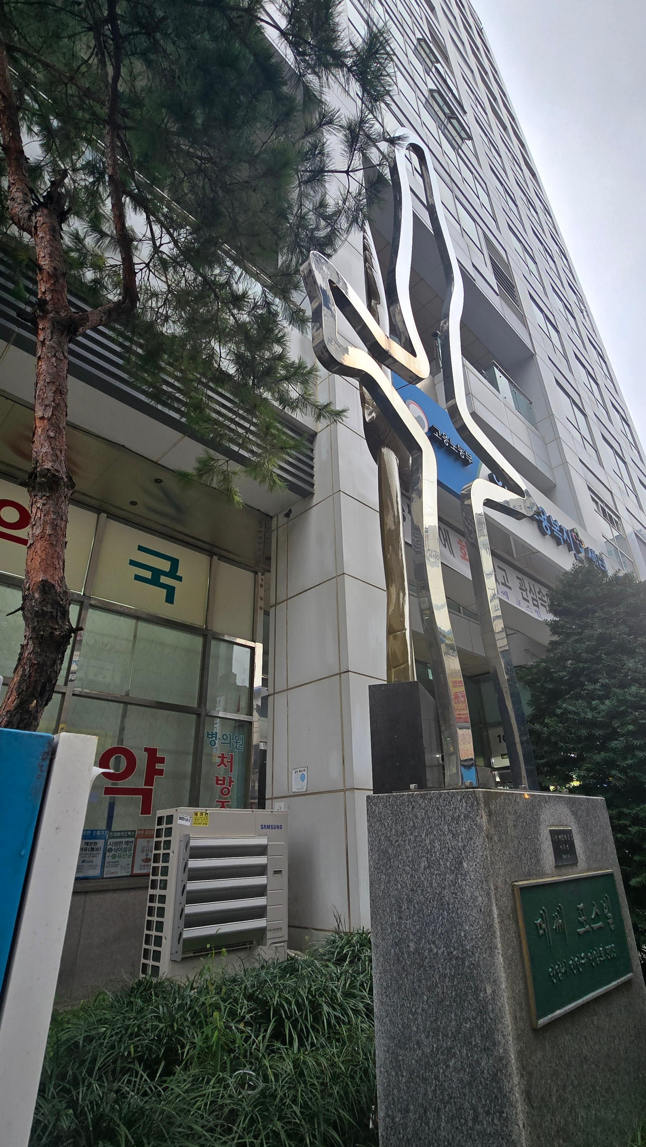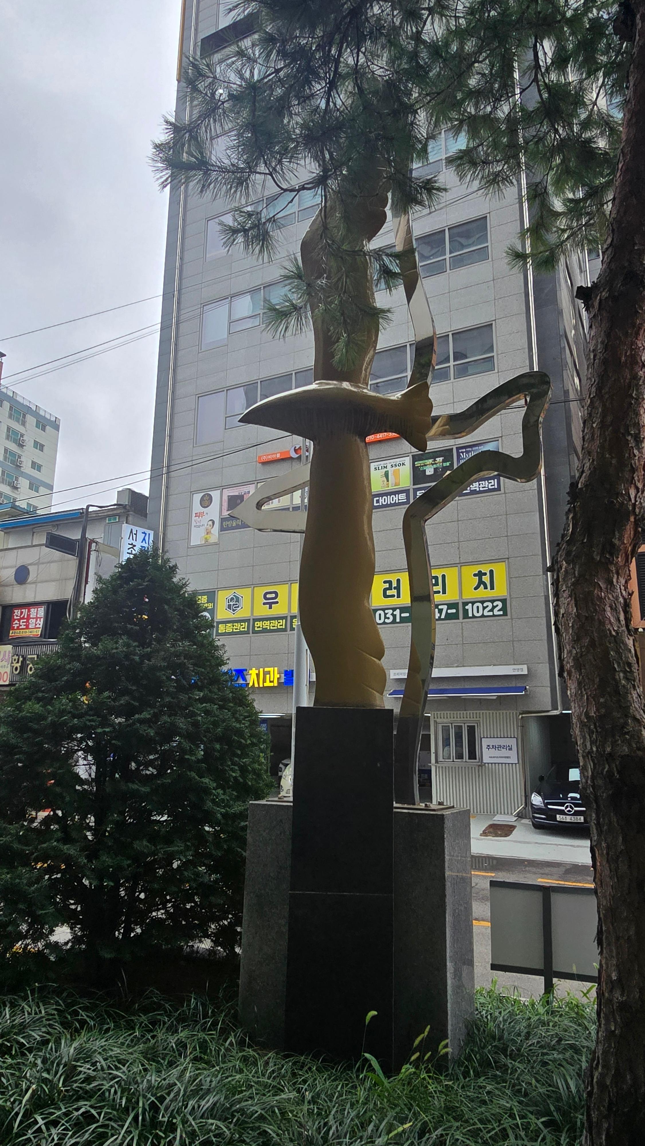 2025.10.18/ #안양 #건축 #조형물 #미술작품 #메쎄 포스빌/ 안양시 만안구 안양로 303 메써 프스빌 빌딩앞. 조형물 작가: 이문영 작품명: 무한 비상의 꿈 1/ 설치: 2007년 5월
