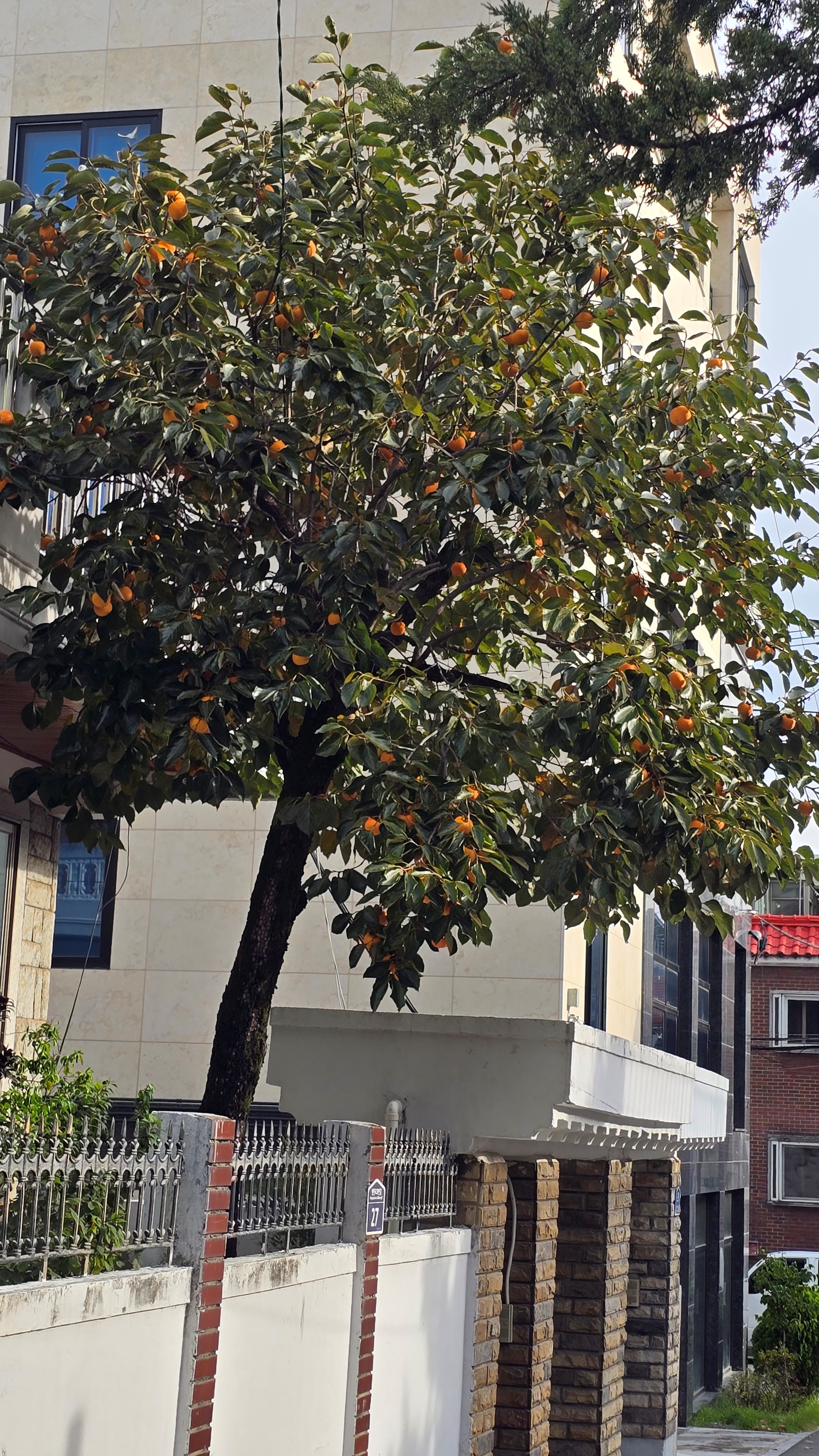 2025.10.21/ #도시기록 #안양 #감나무/ 안양 만안구 원도심 골목 단독주택 마당에 심어진 감나무에 홍시, 연시, 대봉감이 주렁주렁 매달려 익어갑니다. 이같은 풍경도 원도심 재개발로 2~3년후에는 볼수 없을듯싶다.