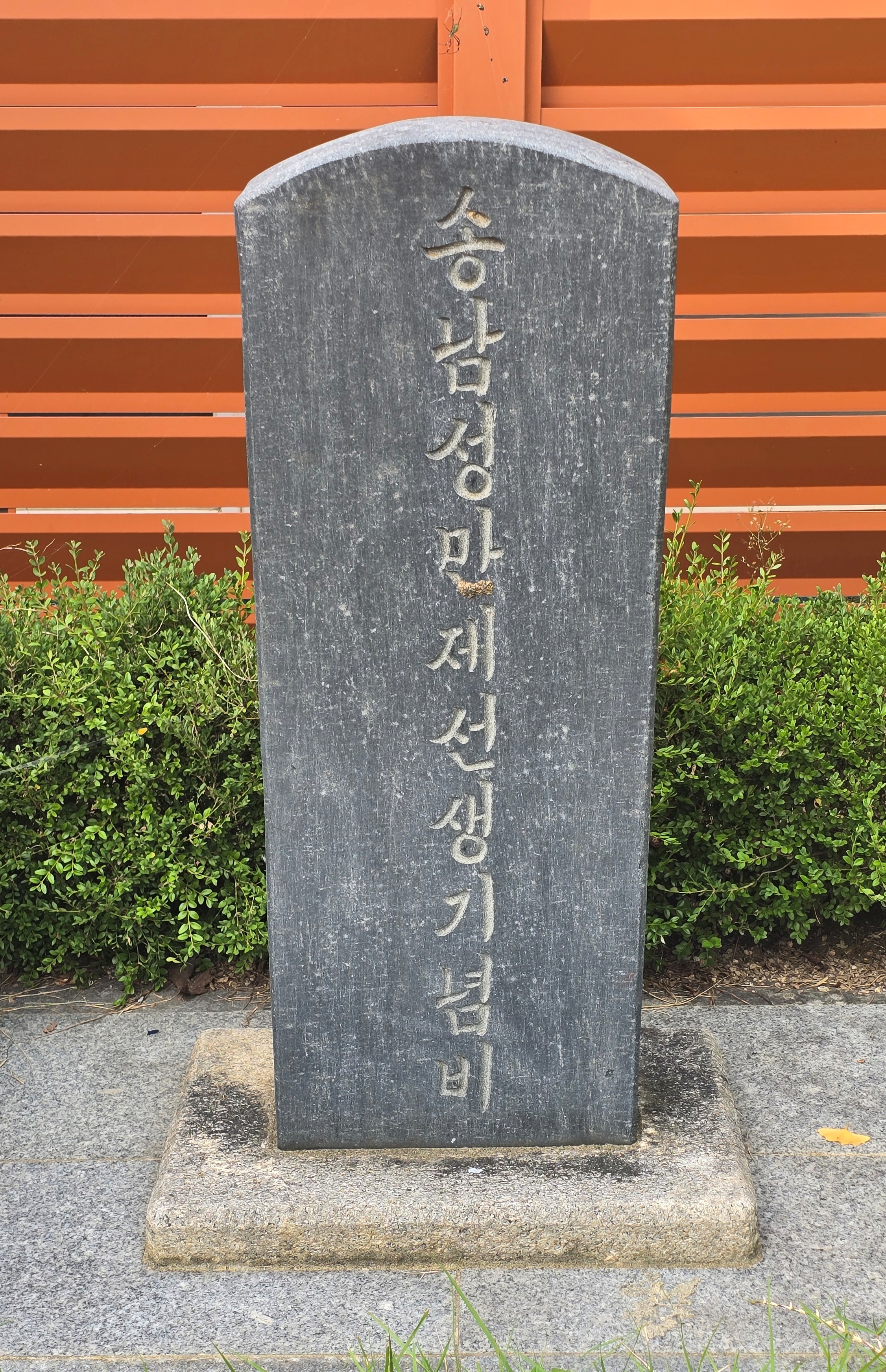 안양시 석수동 삼성초등학교 운동장 서쪽 화단에는 기념비 하나가 세워져 있다. 이는 1946년 9월 1일 현재의 삼성초교 개교 이전인시흥공립초등학교 삼성분교 인가 당시의 학교 부지를 기증했던 성만제(成萬濟,1890~1959) 선생 기념비로 1966년 12월 6일 제막한 것이다.