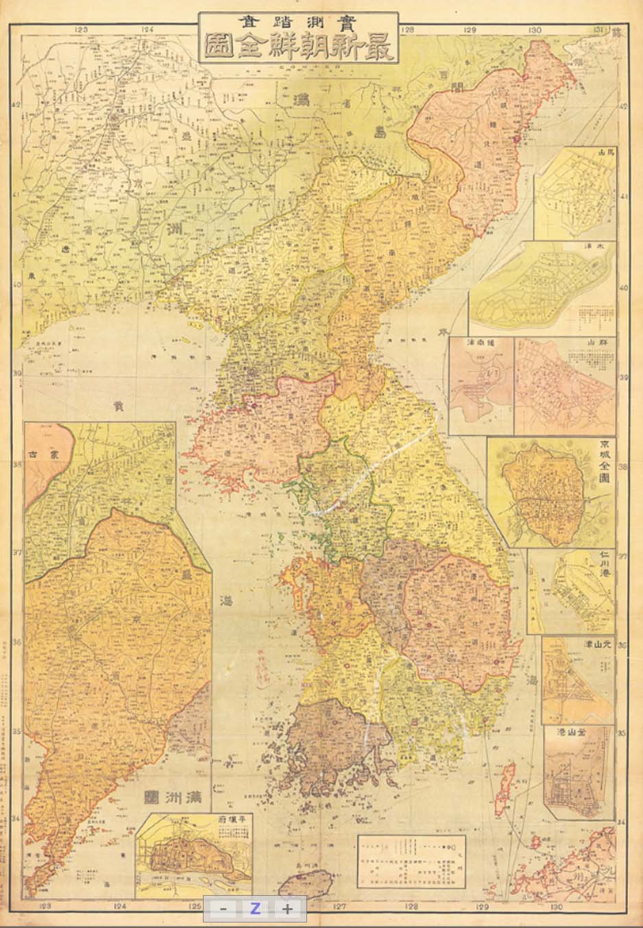 지도 좌측에 만주국, 우측에 마산, 목포,경성, 인천, 원산, 아래쪽으로는 평양 시가지 지도가 수록돼 있다.
