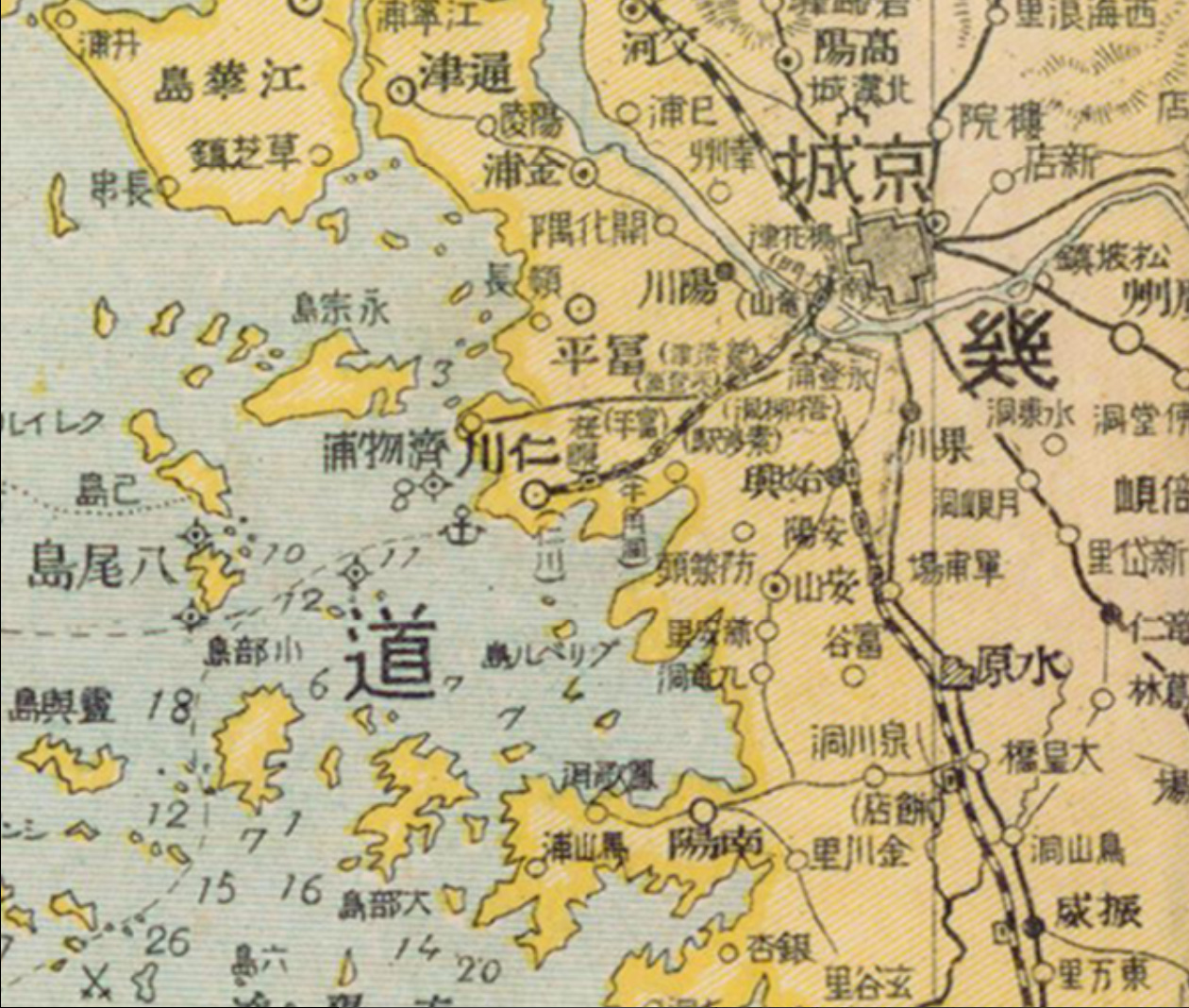 지도 우측에 인천항, 경성 시가지. 좌측에 원산항, 부산항, 평양부 시가지 지도가 수록돼 있다.