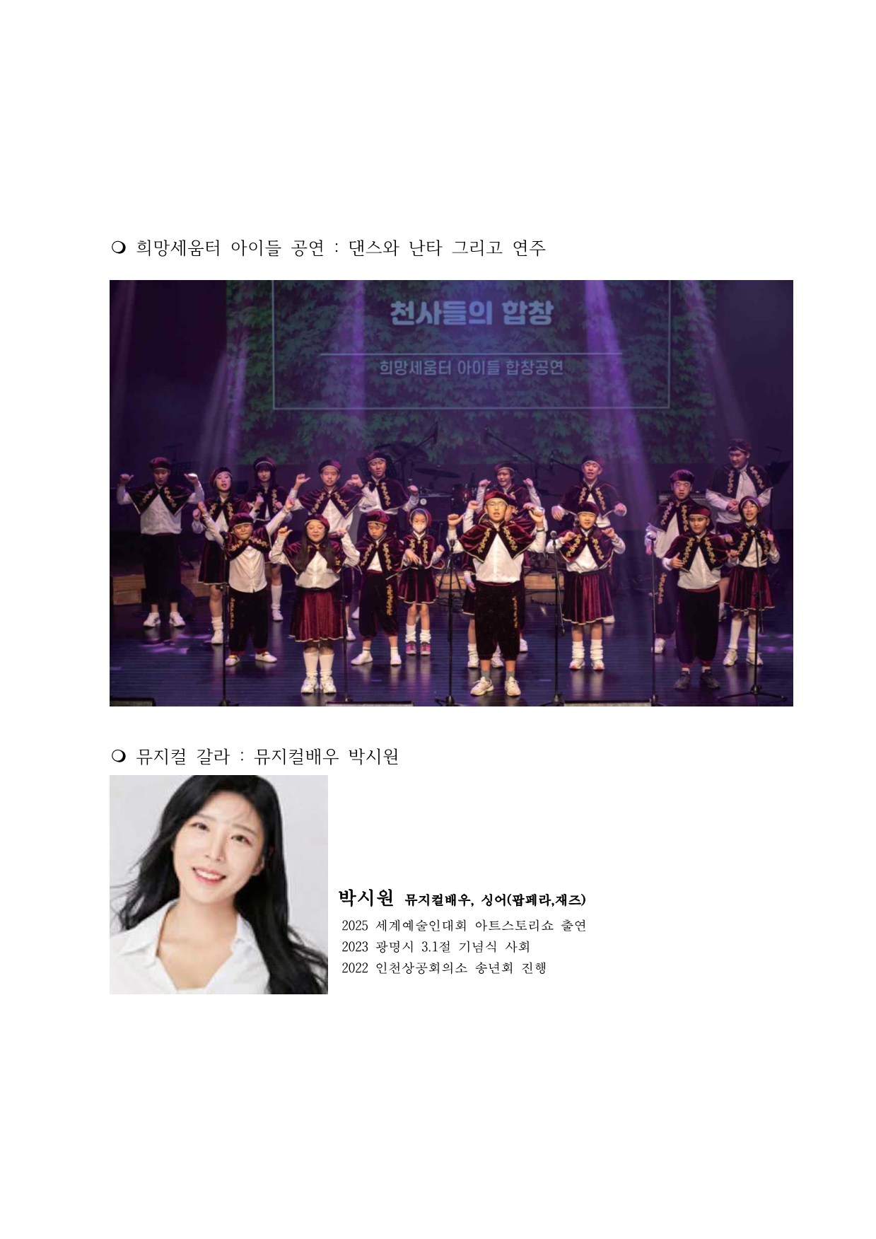 아울러 이번 공연의 수익금은 난치병아동 치료비 지원 및 센터 운영기금으로 사용된다. 시민들의 한 마음 한 마음이 아이들의 내일을 밝히는 희망의 불빛이 되기에 큰 박수와 응원을 당부한다,