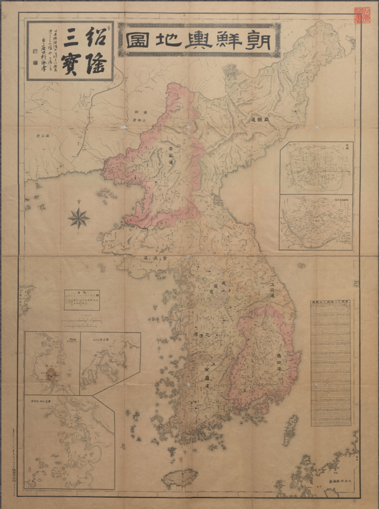 朝鮮輿地圖 조선여지도, Chosunyeojido. 작자청수상태랑(일본). 간사년고종311894. 고려대학교박물관 소장.