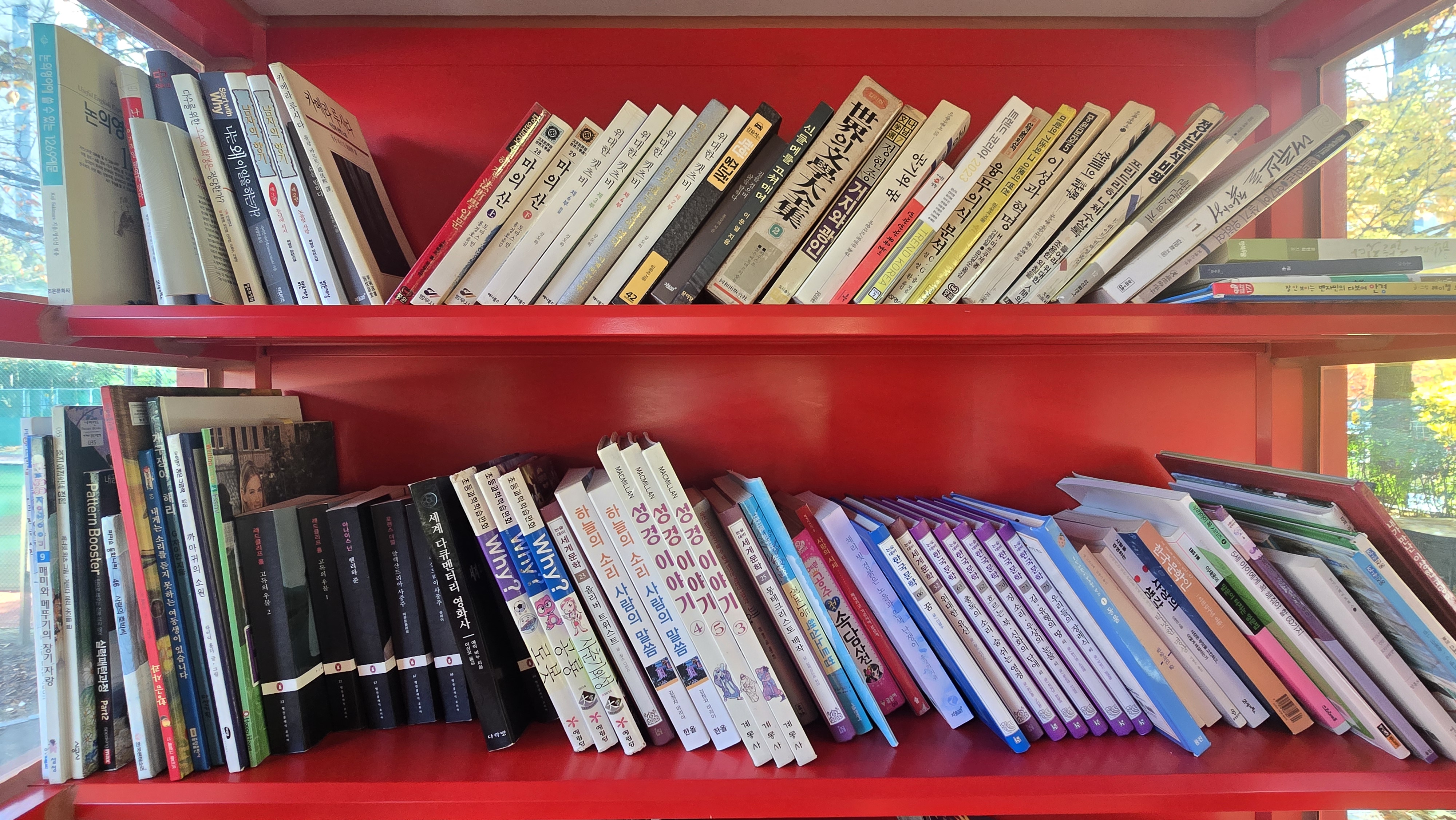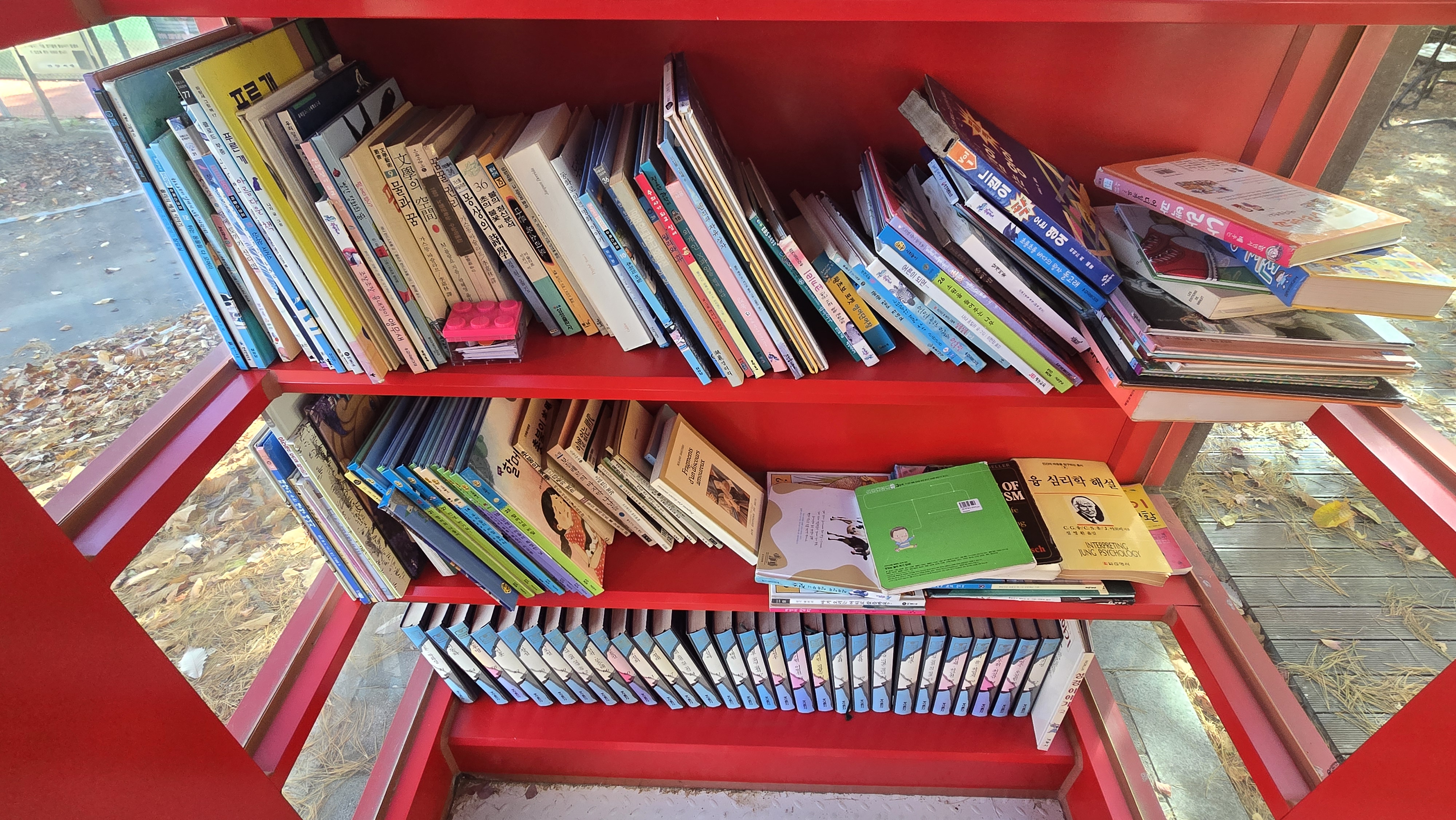 2025.11.10/ #도시기록 #안양 #숲속작은도서관 #평촌중앙공원/ 안양 평촌 중앙공원 테니스장 옆(오른쪽) 나무숲 아래에는 무인으로 운영되는 숲속작은도서관이 있다. 중앙공원에는 이와 별도로 관리사무소(공원 좌측 육교 아래)내 한쪽에 새마을 작은 도서관이 들어와 있다. 매주 일요일과 월요일을 제외하고 14시 ~ 18시까지 운영한다. 동절기에는 13시 ~ 17시까지다.