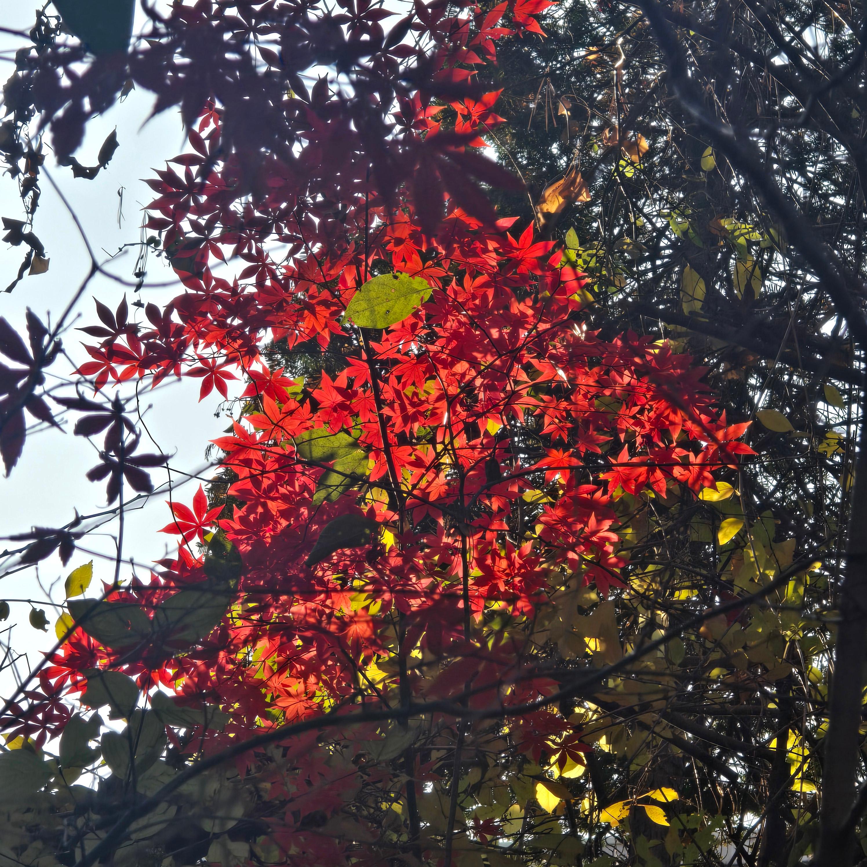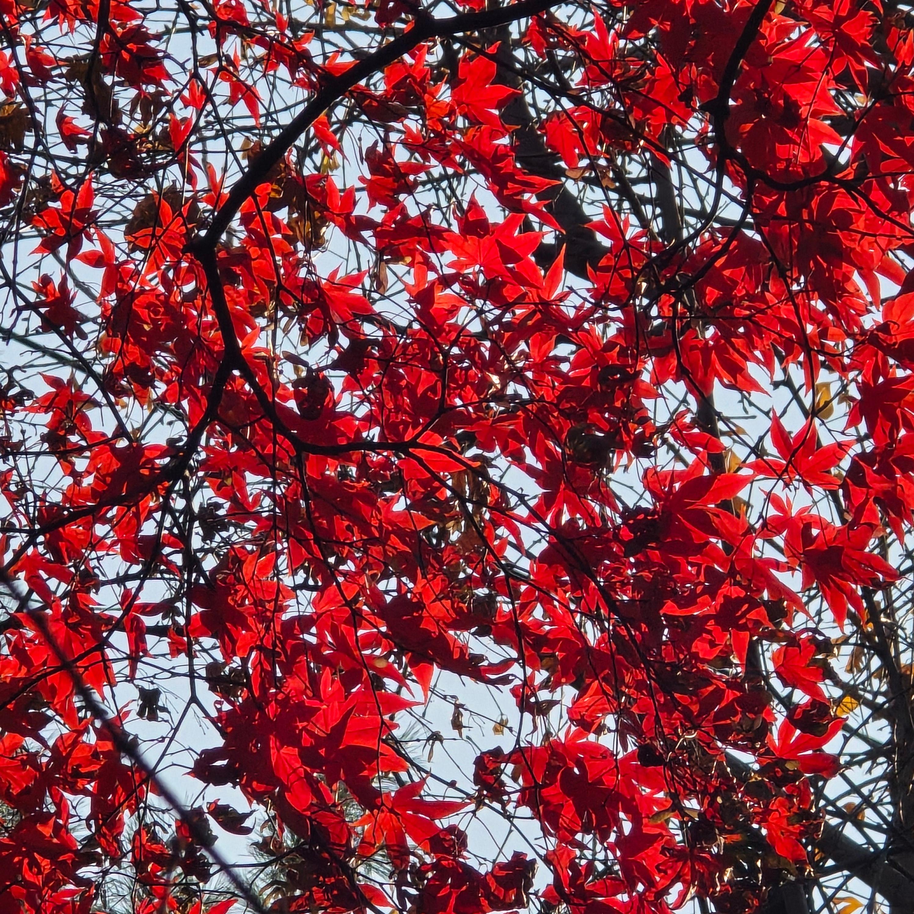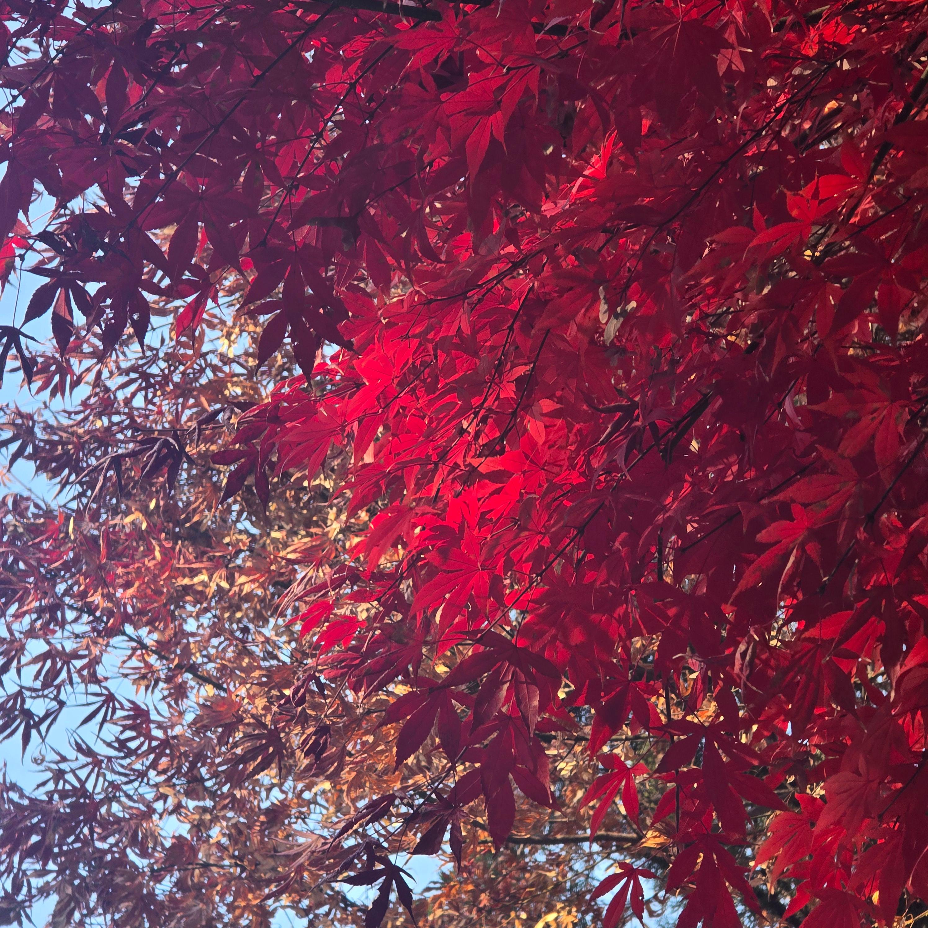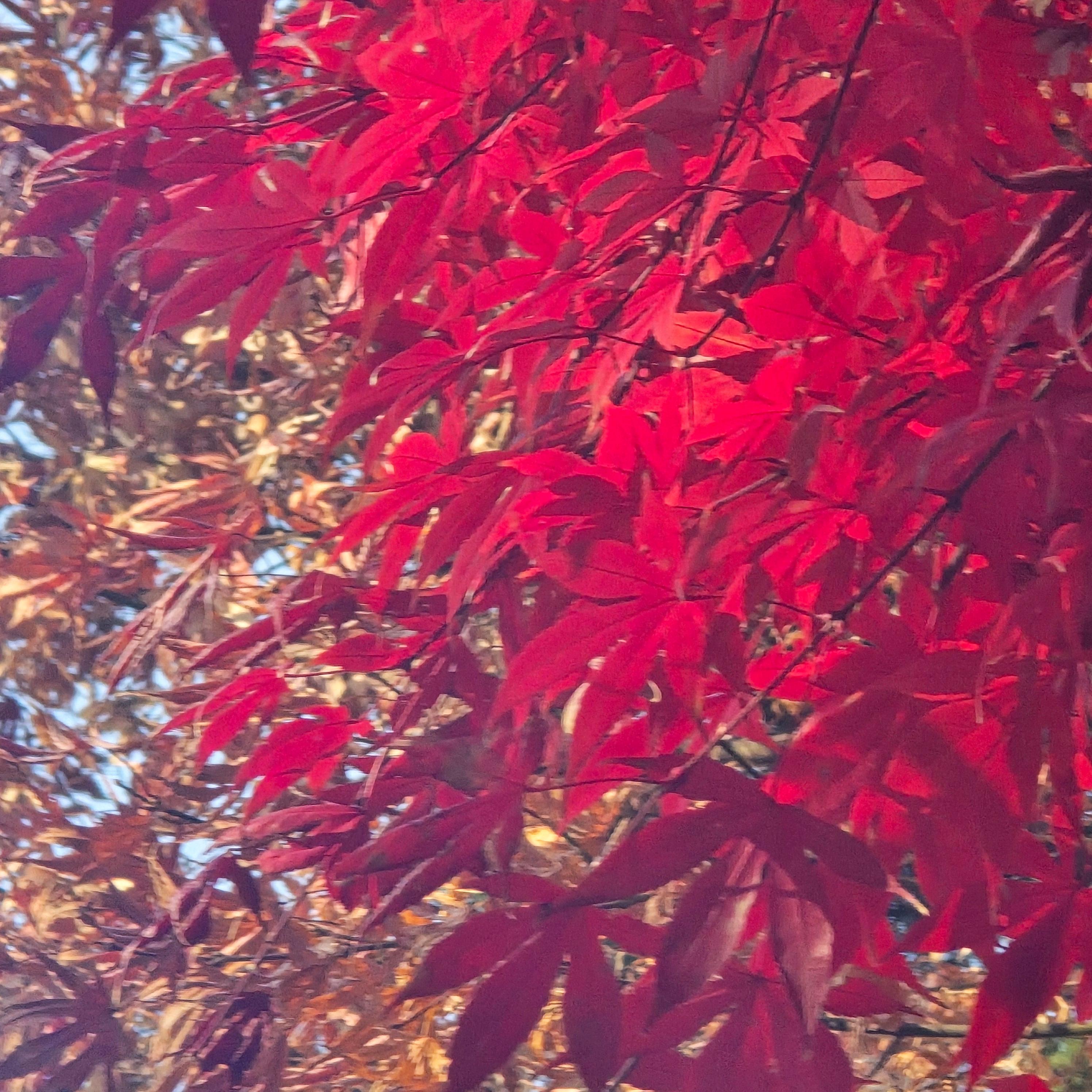 2025.12.02/ #도시기록 #안양 #단풍 #안양시립만안도서관/ 가을과 겨울 사이에 만안도서관 가는 오르막길 양쪽의 단풍나무가 불타는듯 하다.