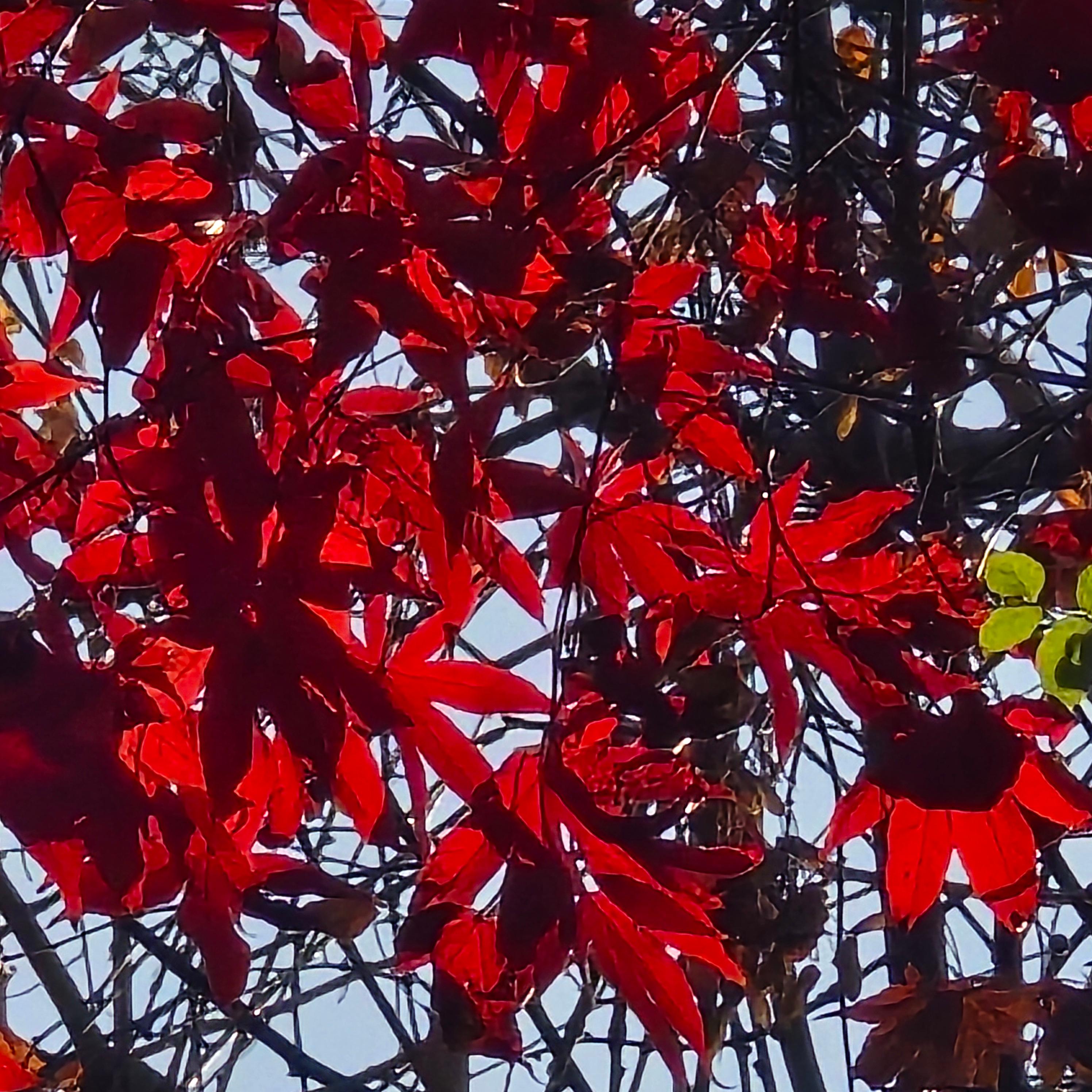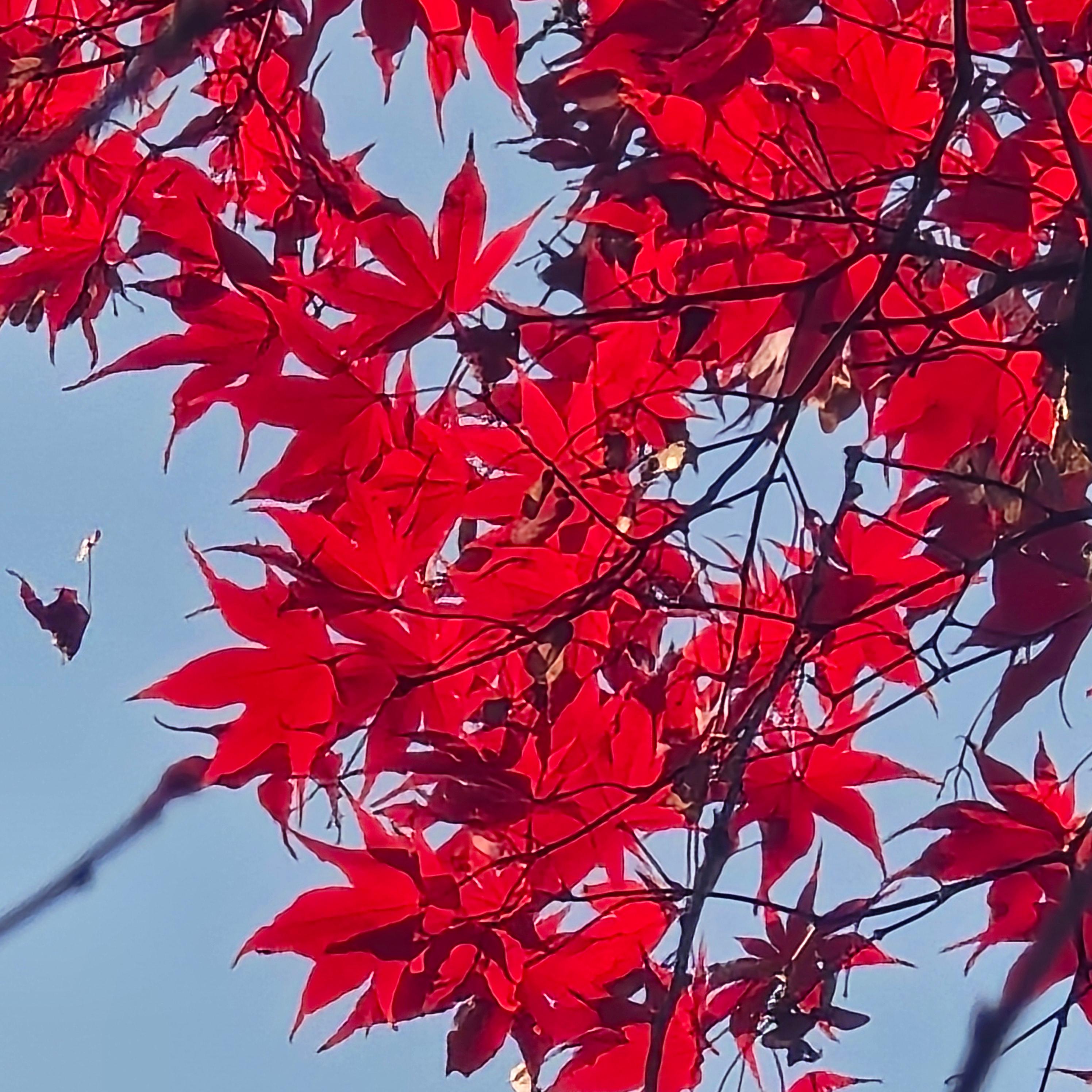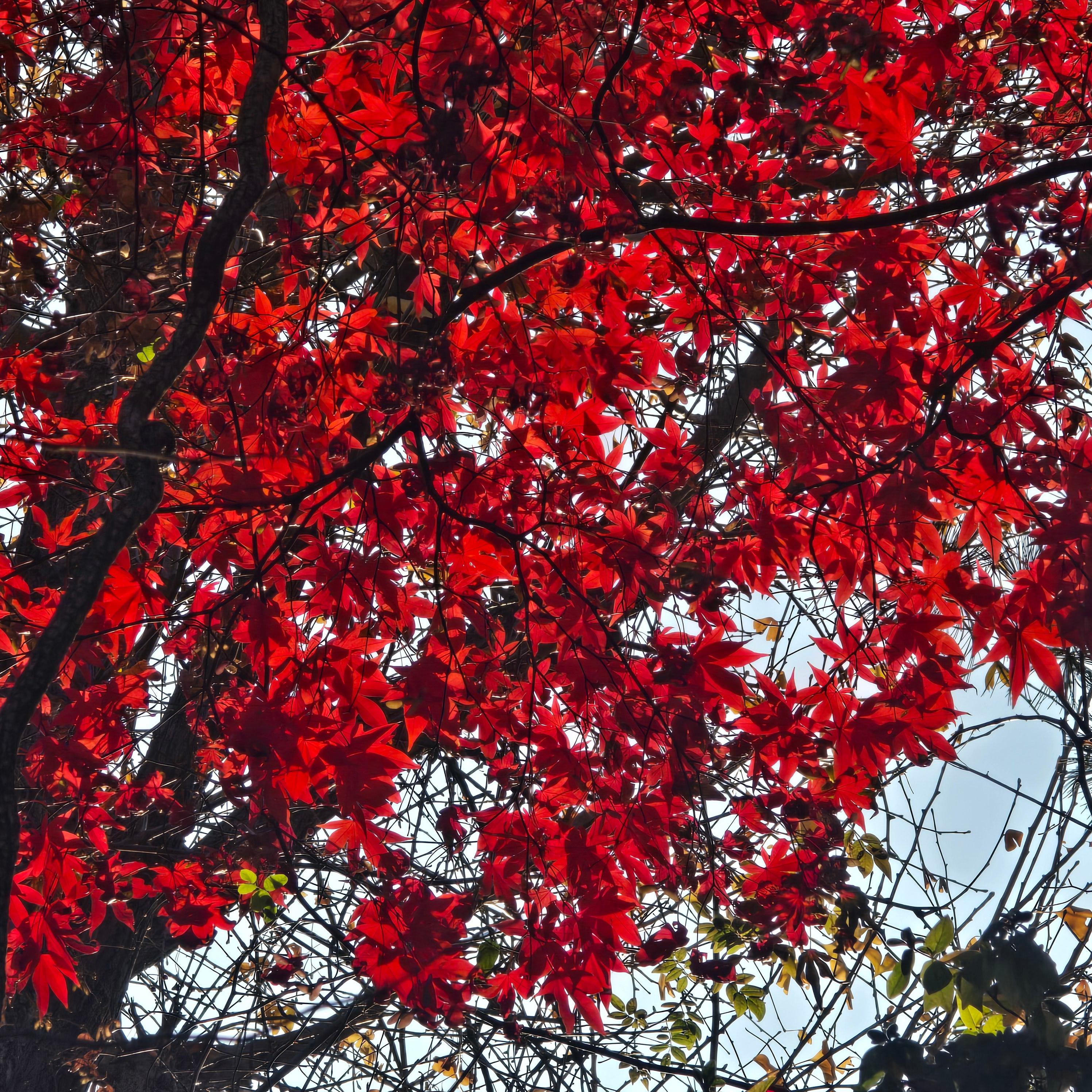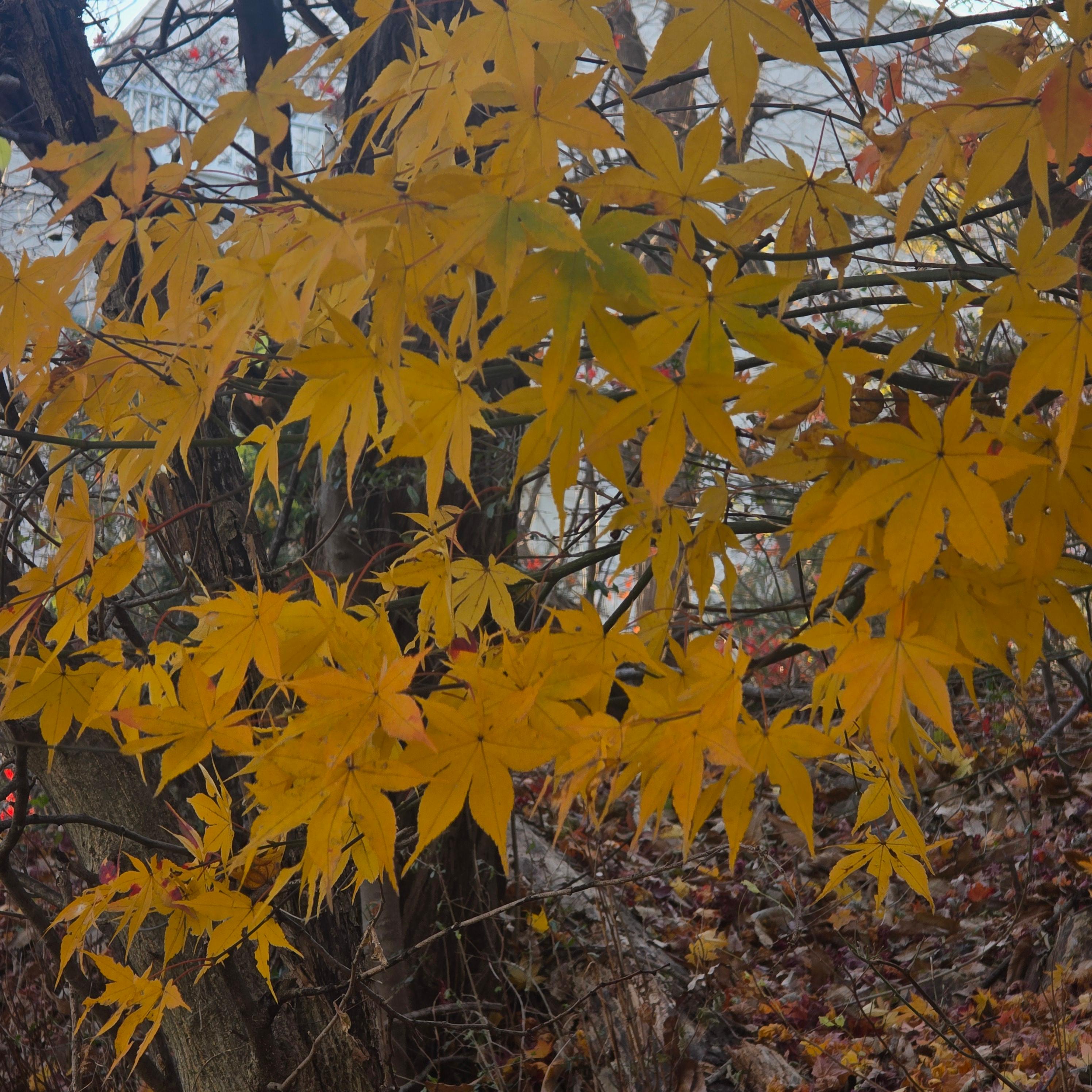 2025.12.02/ #도시기록 #안양 #단풍 #안양시립만안도서관/ 가을과 겨울 사이에 만안도서관 가는 오르막길 양쪽의 단풍나무가 불타는듯 하다.
