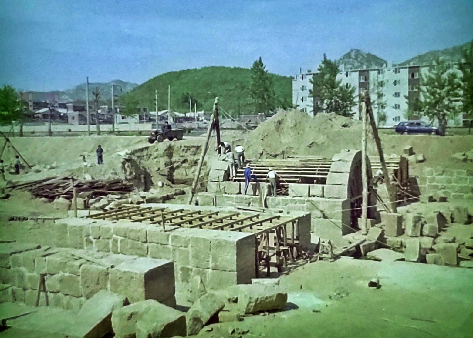 2025.12.25/ #아카이브 #옛사진 #만안교 #안양 #정조대왕 #시흥대로 #1번국도 #만안로/ 1980년 만안교 이전 복원 공사 장면이다. 안양시청 홍보실에 근무했던 이정범 선생이 찍었으며 보관해오던 사진을 입수했다,