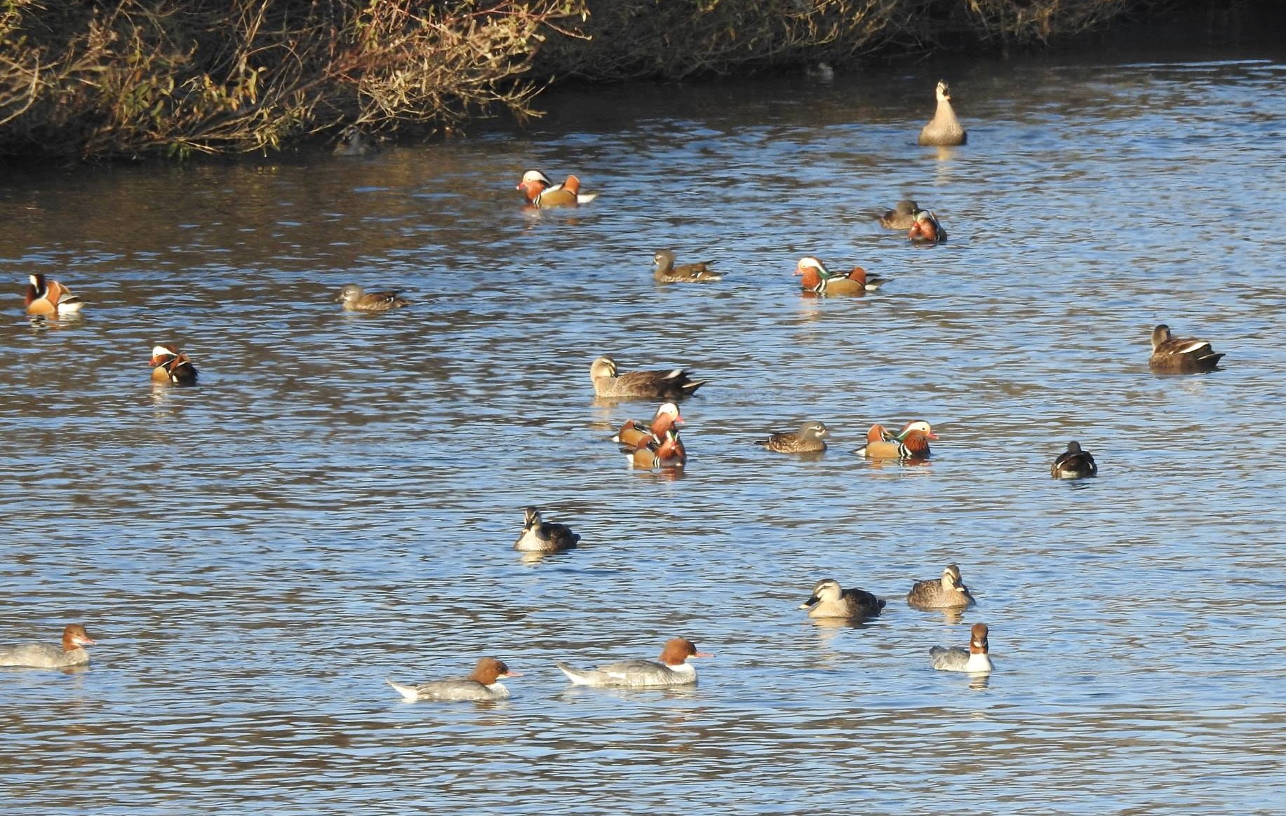 안양시 석수동 안양천에 올해 겨울에도 수많은 철새들이 찾아온 가운데 안양천 겨울 철새의 백미로 아름다운 깃털을 자랑하는 원앙 가족들도 목격돼 감탄사를 자아낸다.