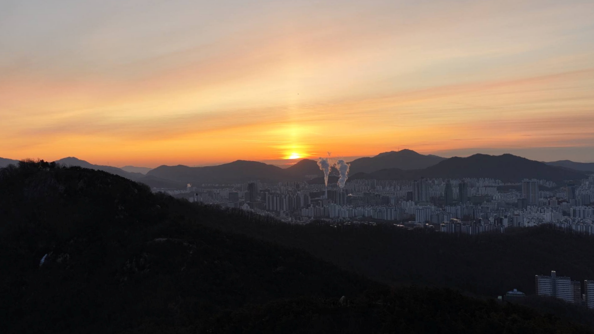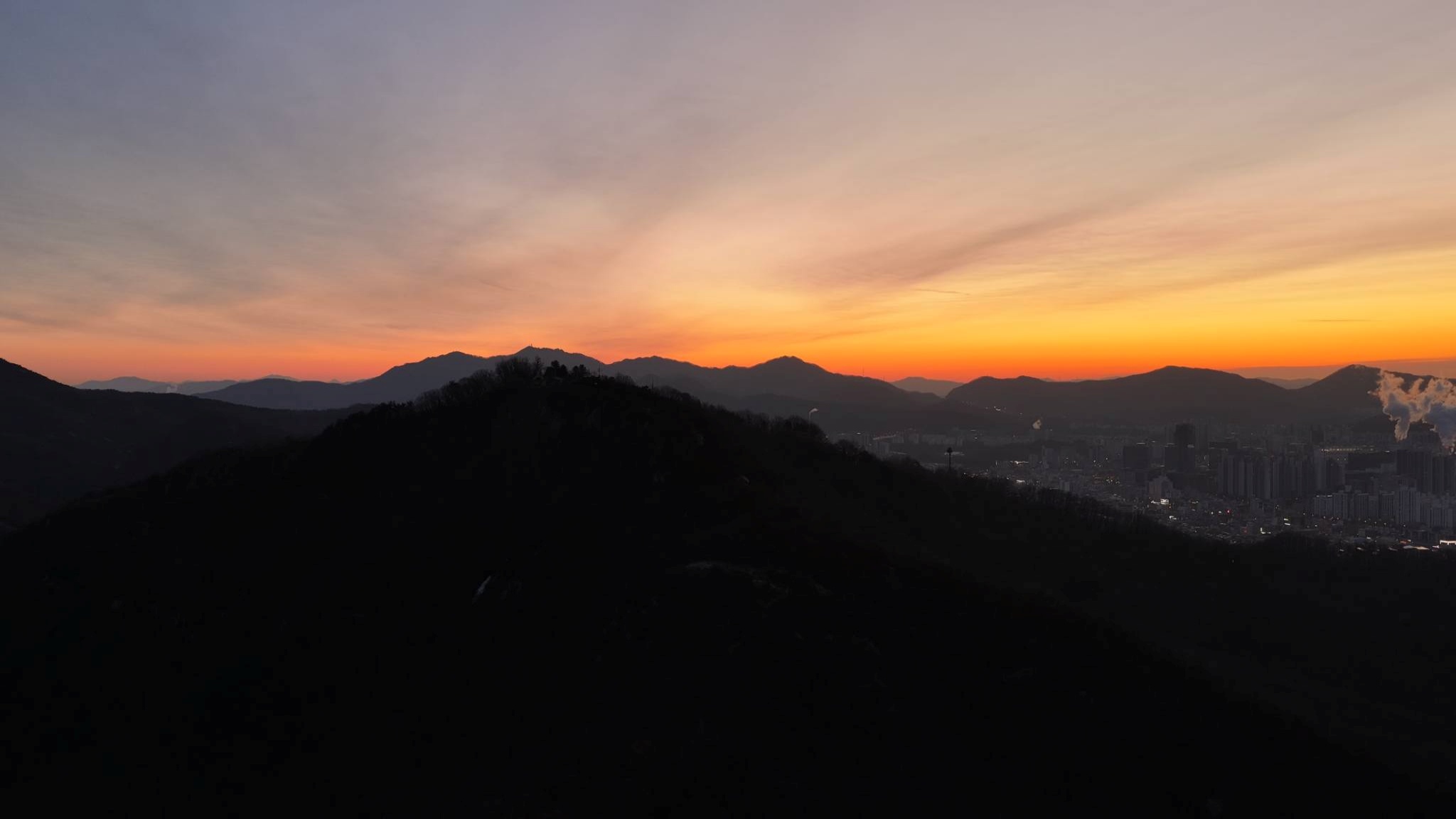2026.01.01/ #새해 #일출 #안양 #비봉산 #드론/ 안양8경 중 한곳인 망해암이 위치한 비봉산은 아름다운 경치와 함께 일출과 일몰을 감상할 수 있는 최적의 장소이다. 망해암에서는 일몰을, 망해안 윗쪽 정상 안양무선표지소 앞 공터에서는 일출을 보기 좋아 매년 한해의 끝자락인 12월 31일과 새해가 시작되는 1월1일에 많은 시민들이 몰려든다.