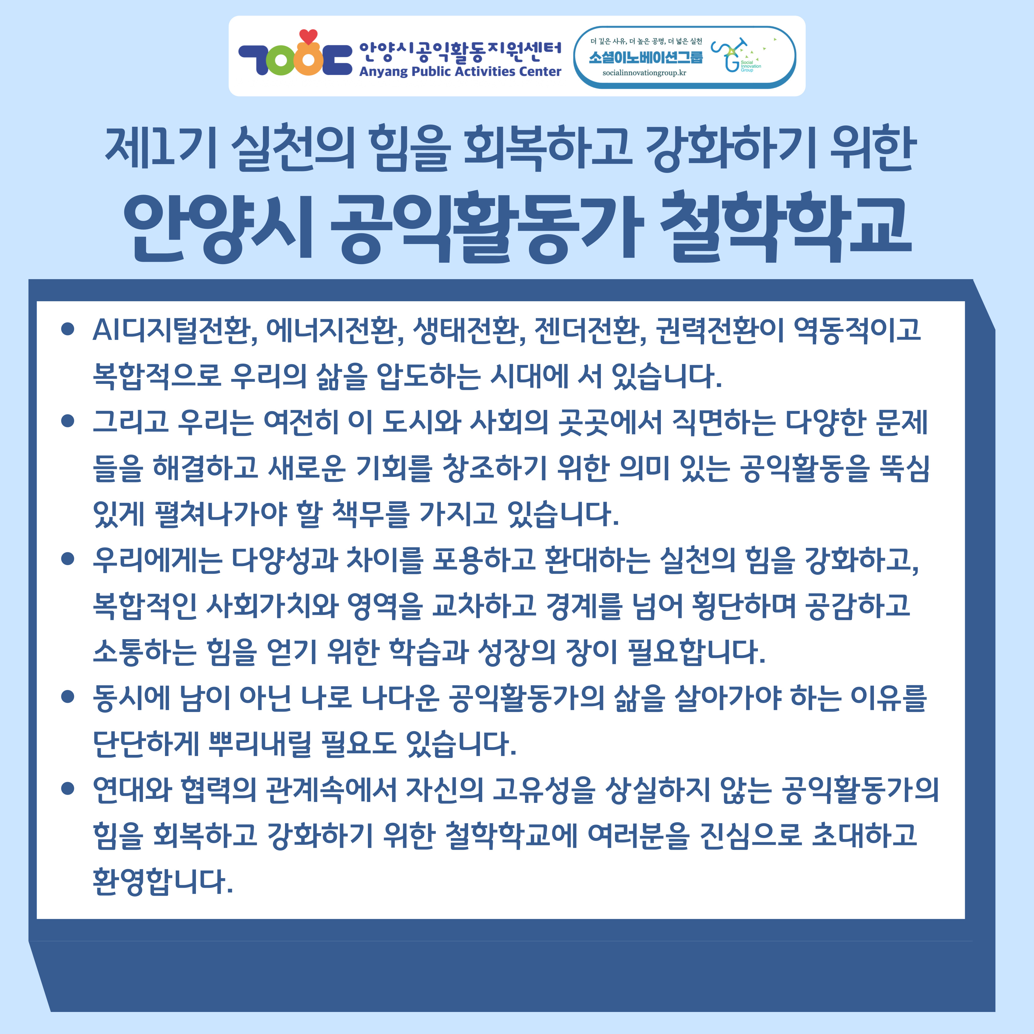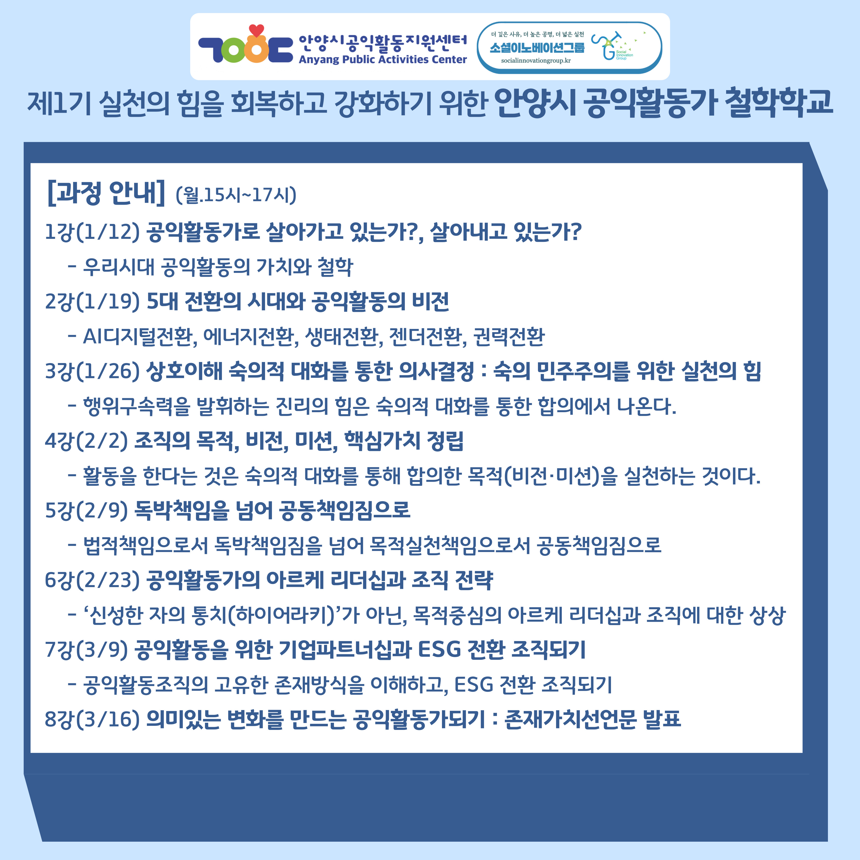 제1기 안양시공익활동가 철학학교(2026년1월12일~3월16일)