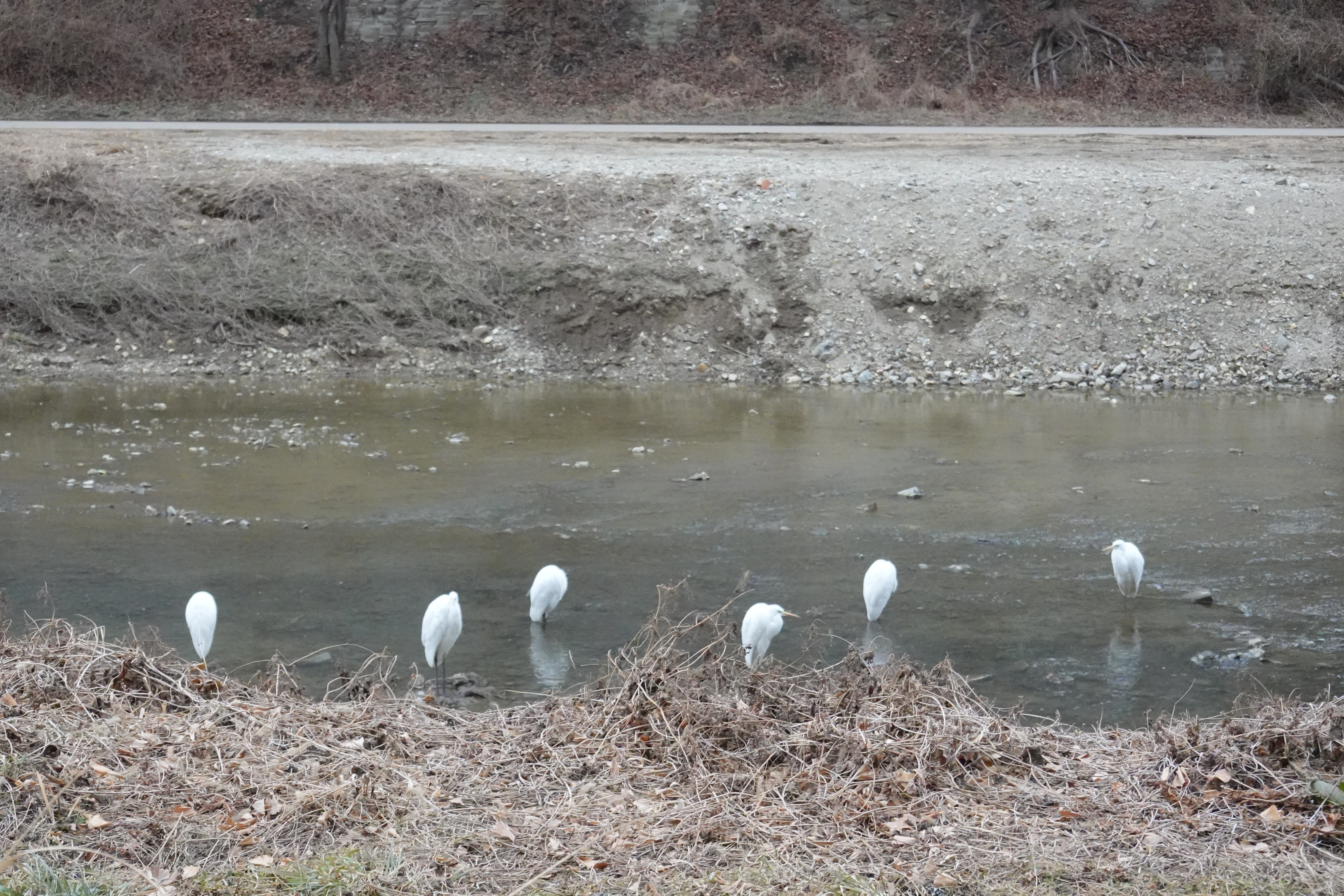 2026.01.18/ #도시기록 #백로떼 #안양/ 매년 겨울이 되면 쇠백로와 중대백로들이 떼로 모여 마치 반상회를 열기라도 한듯 옹기종기 모여서는 하루를 지낸다. 고정된 장소가 아니지만 안양천과 학의천 어느 한곳에 모이는데 오늘은 안양천 덕천교와 서로교 중간 지점에 모여 있다.