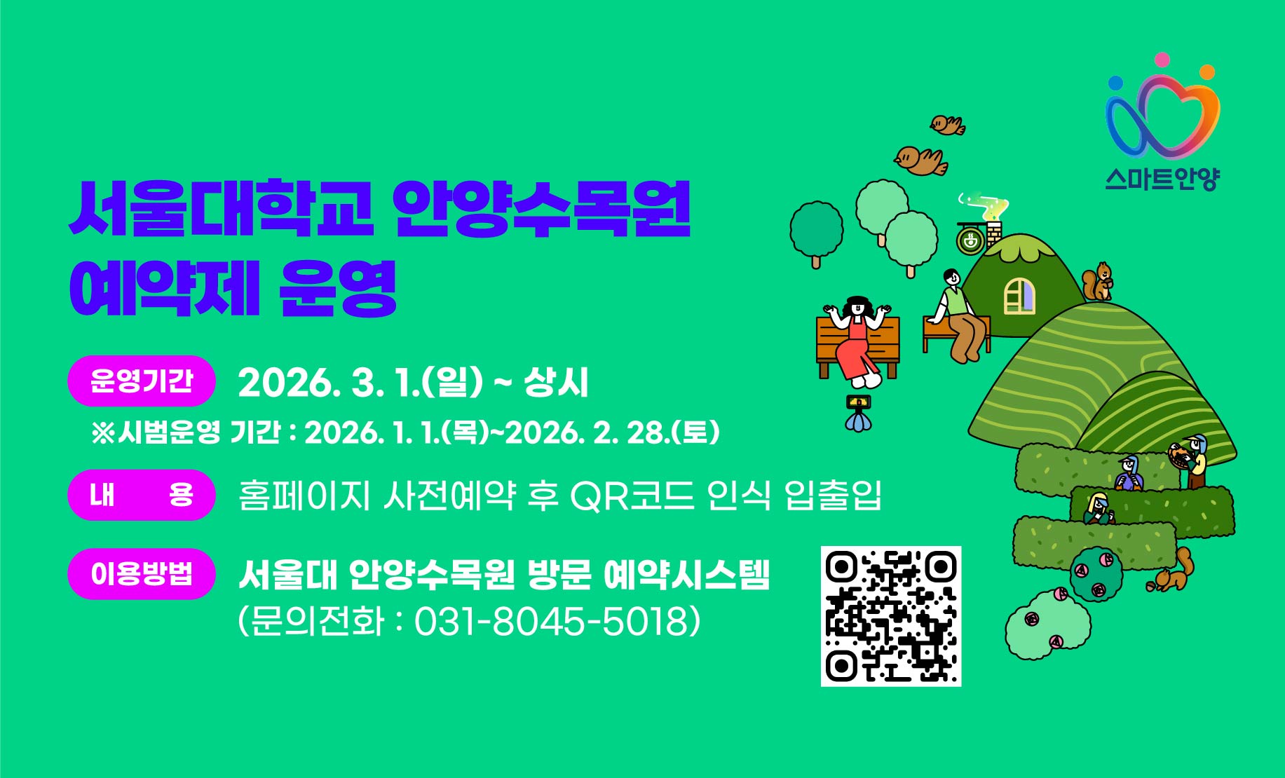 📣[서울대학교 안양수목원] 예약제 운영 안내
