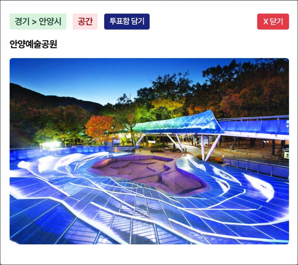 안양예술공원은 100여 년의 역사와 지역 문화를 품은 공간으로, 예술과 자연이 어우러진 ‘지붕 없는 미술관’으로서의 가치를 인정받았다.