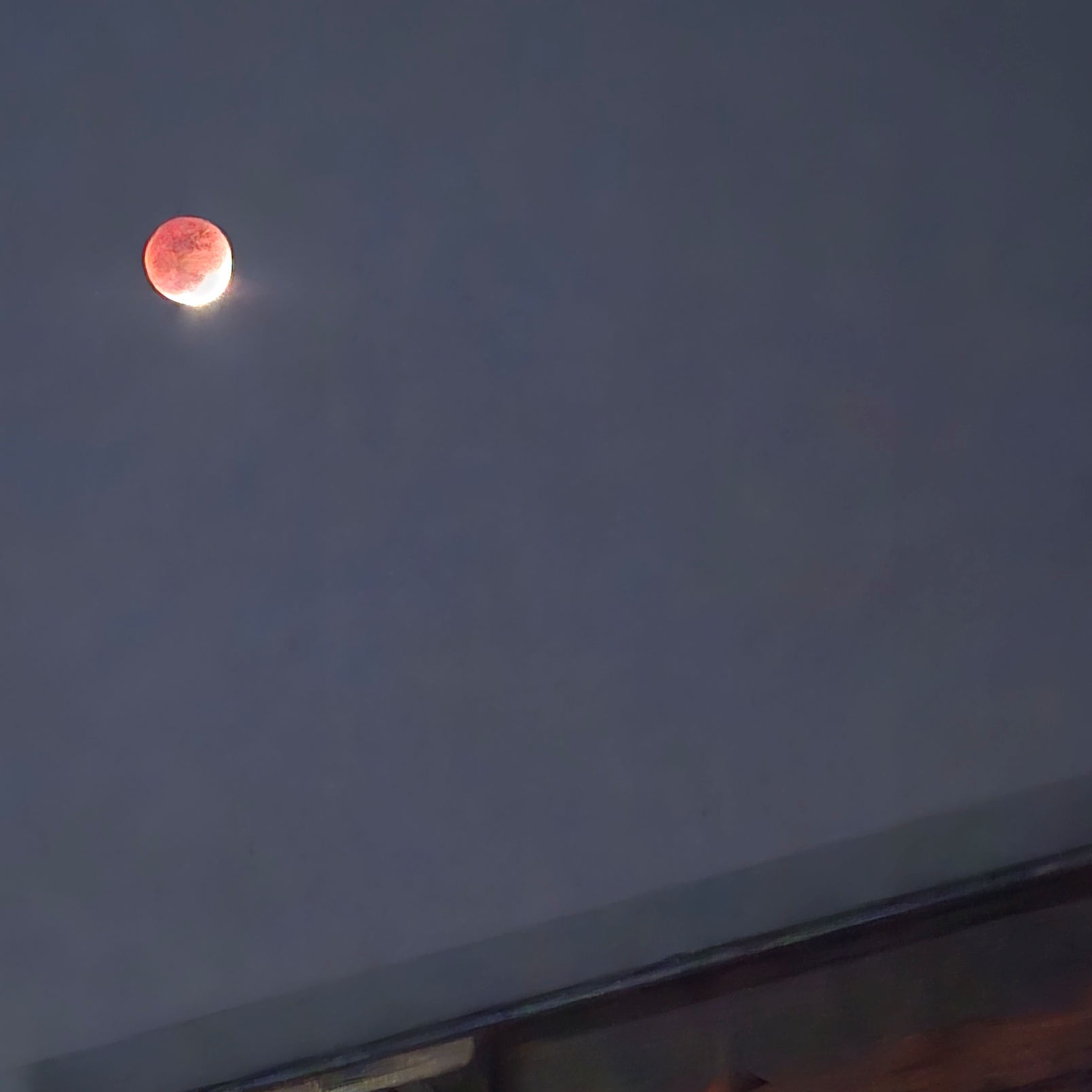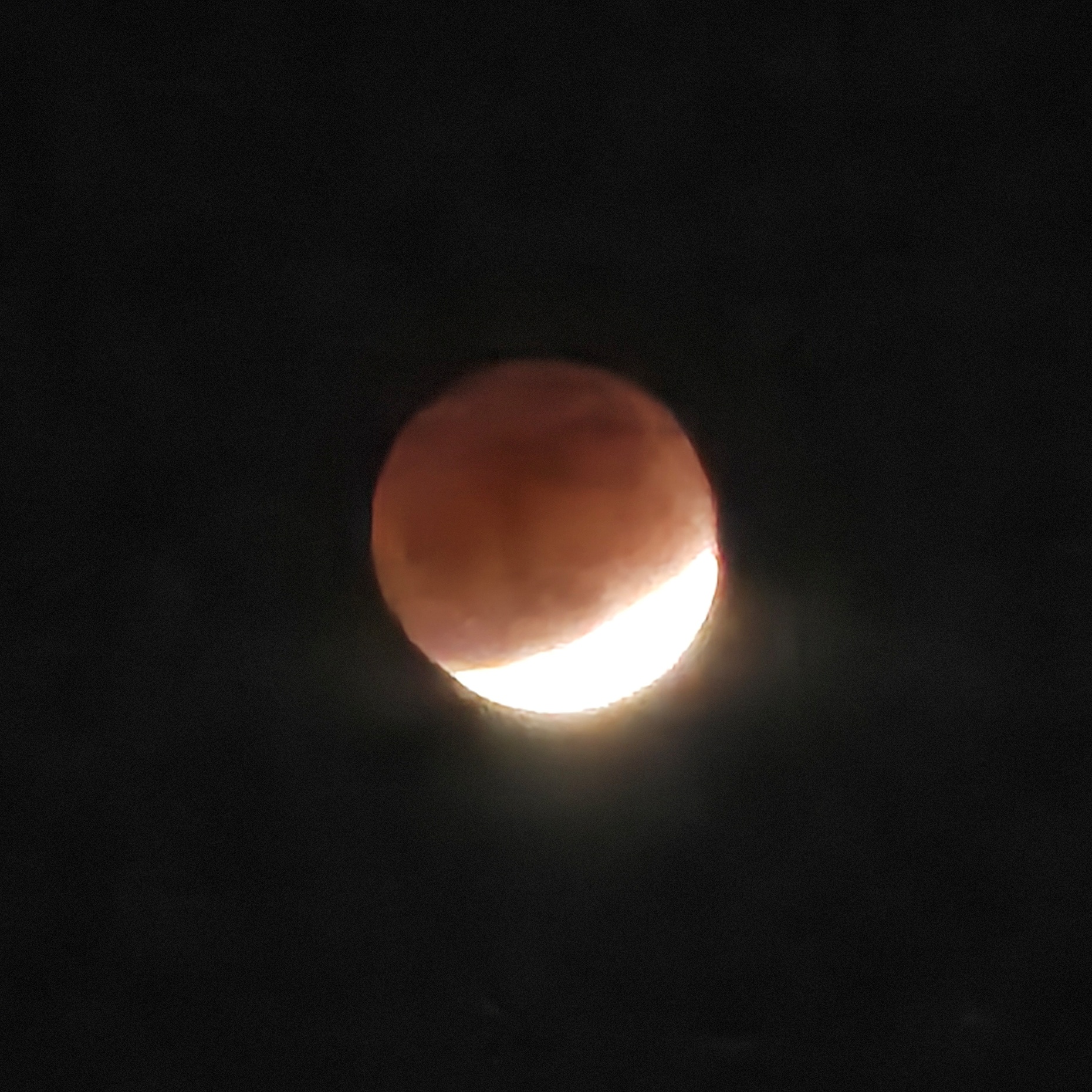 개기식은 20:33분경 최대의 하이라이트를 지났으며 21:03분경 종료된후 다시 달이 밝아지는 부분월식이 진행중으로 22:27분에 부분월식이 끝나 원래 달의 모습으로 돌아간다. 한편 다음 개기월식은 2년후인 2028년 12월31일에 볼수 있다고 한다.