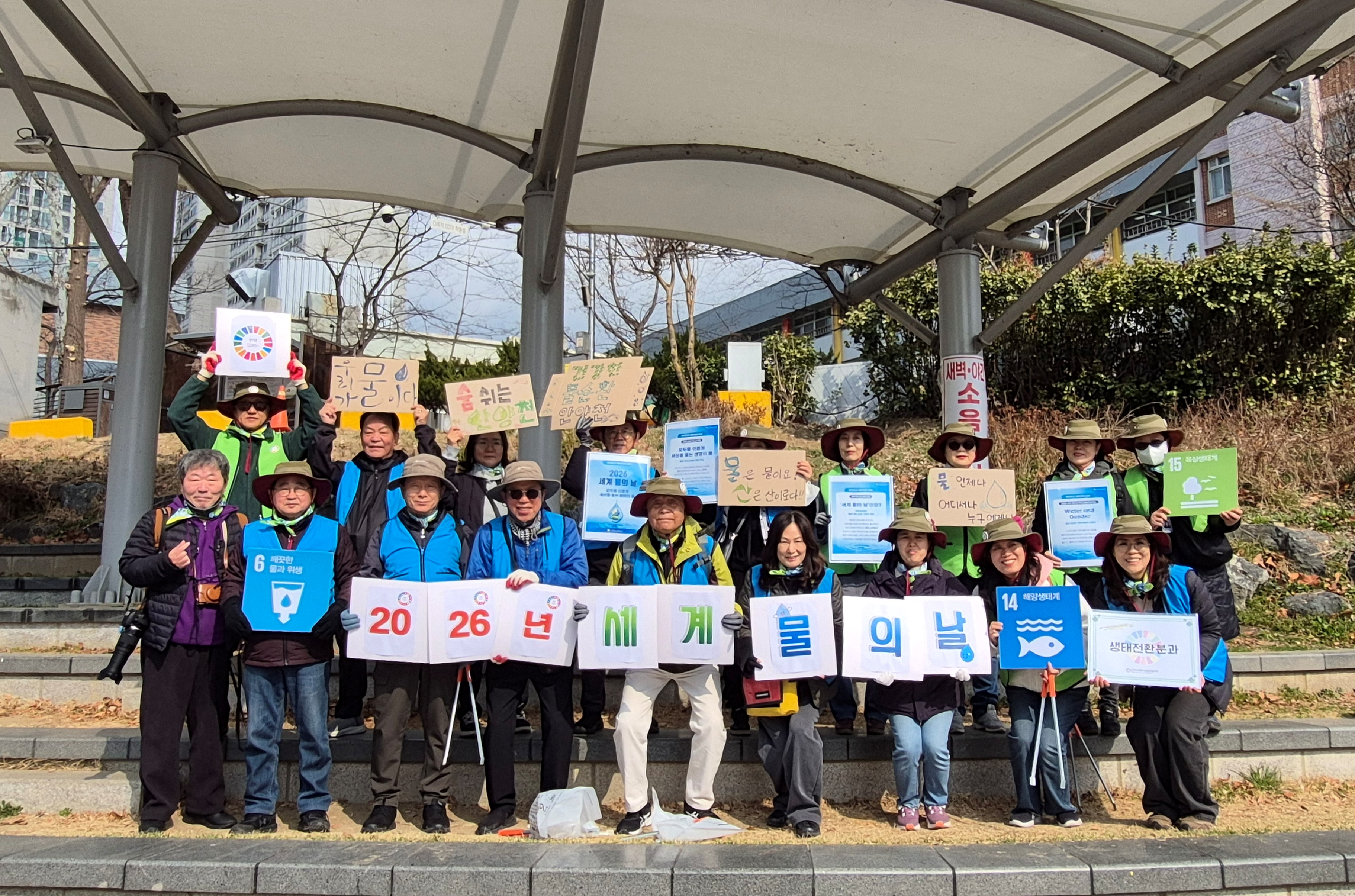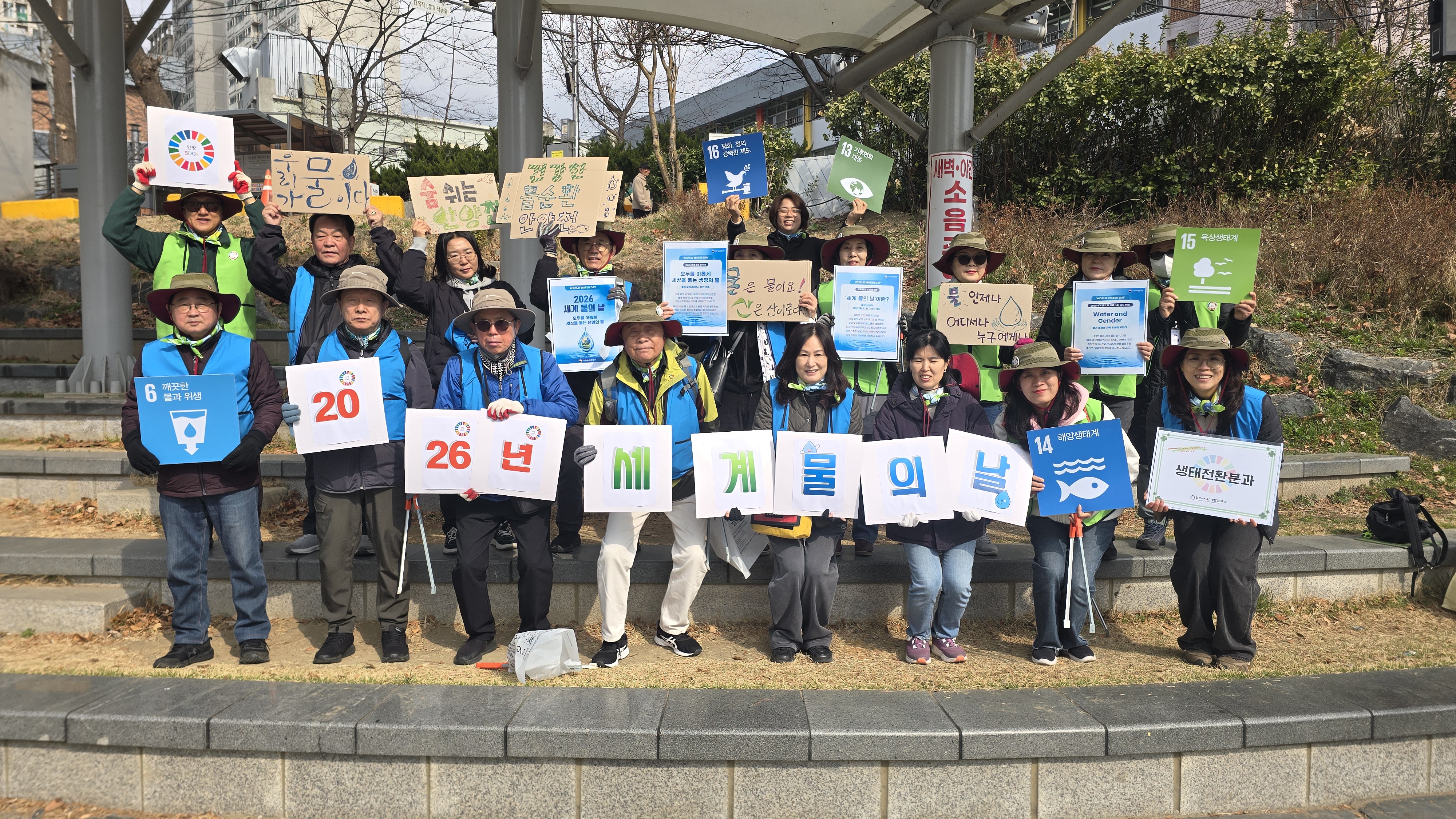 안양시지속가능발전협의회가 3월 22일 세계 물의날을 맞아 안양천 쌍개울 문화광장에서 물의 가치와 중요성을 새기고 미래 세대를 위한 실천 의지를 다지는 홍보 캠페인및 하천정화활동(플로깅)을 진행했다.