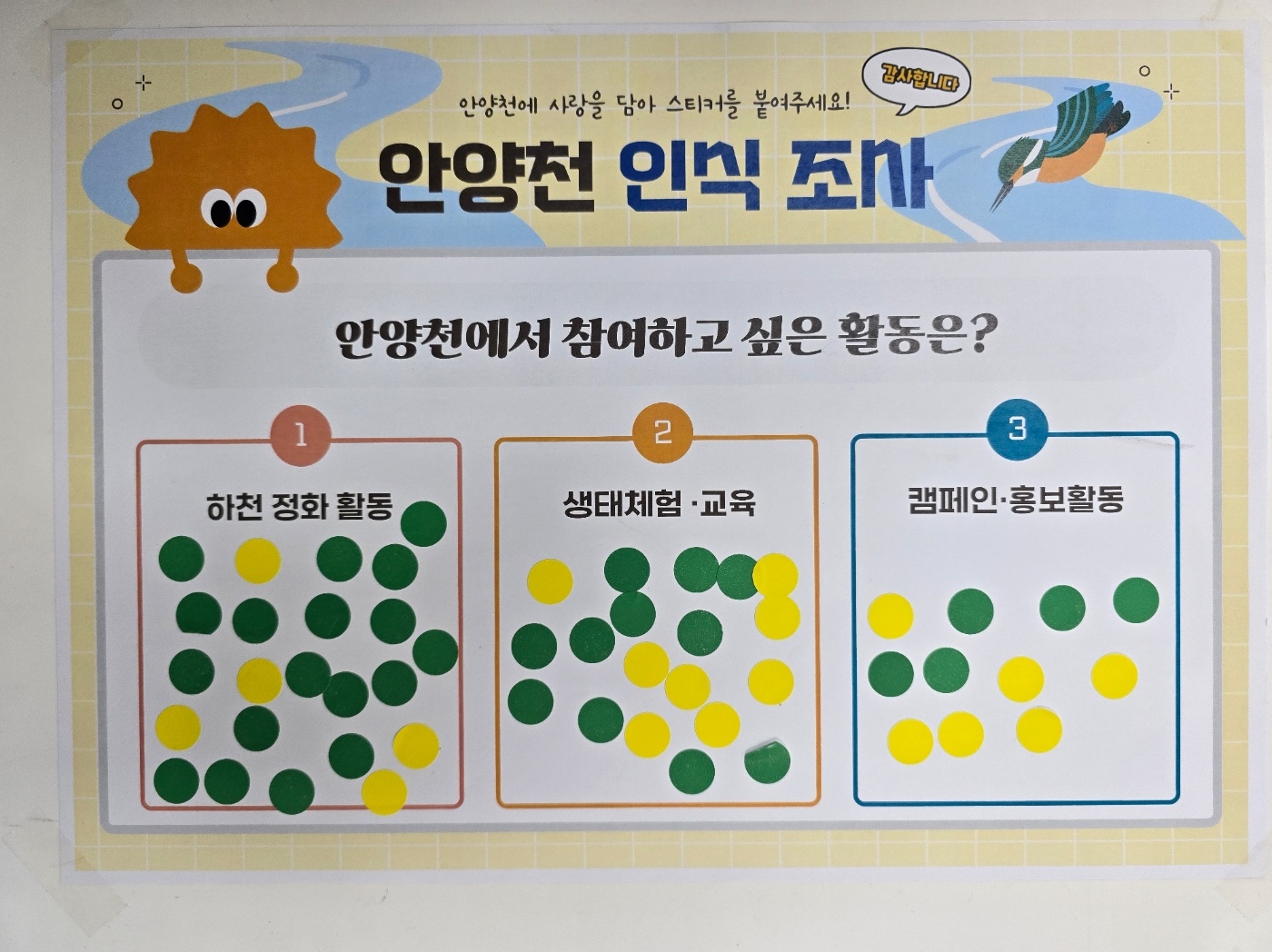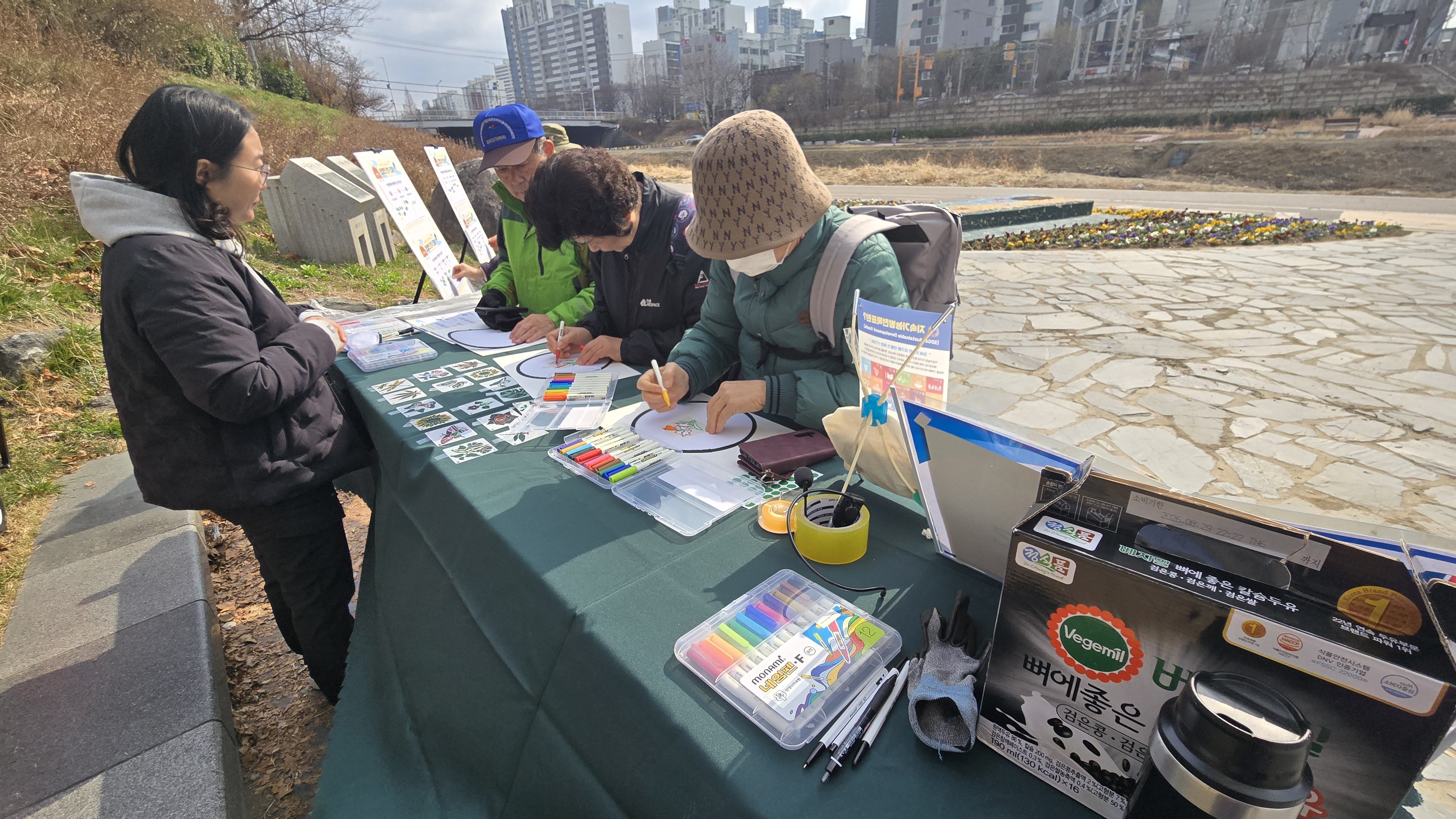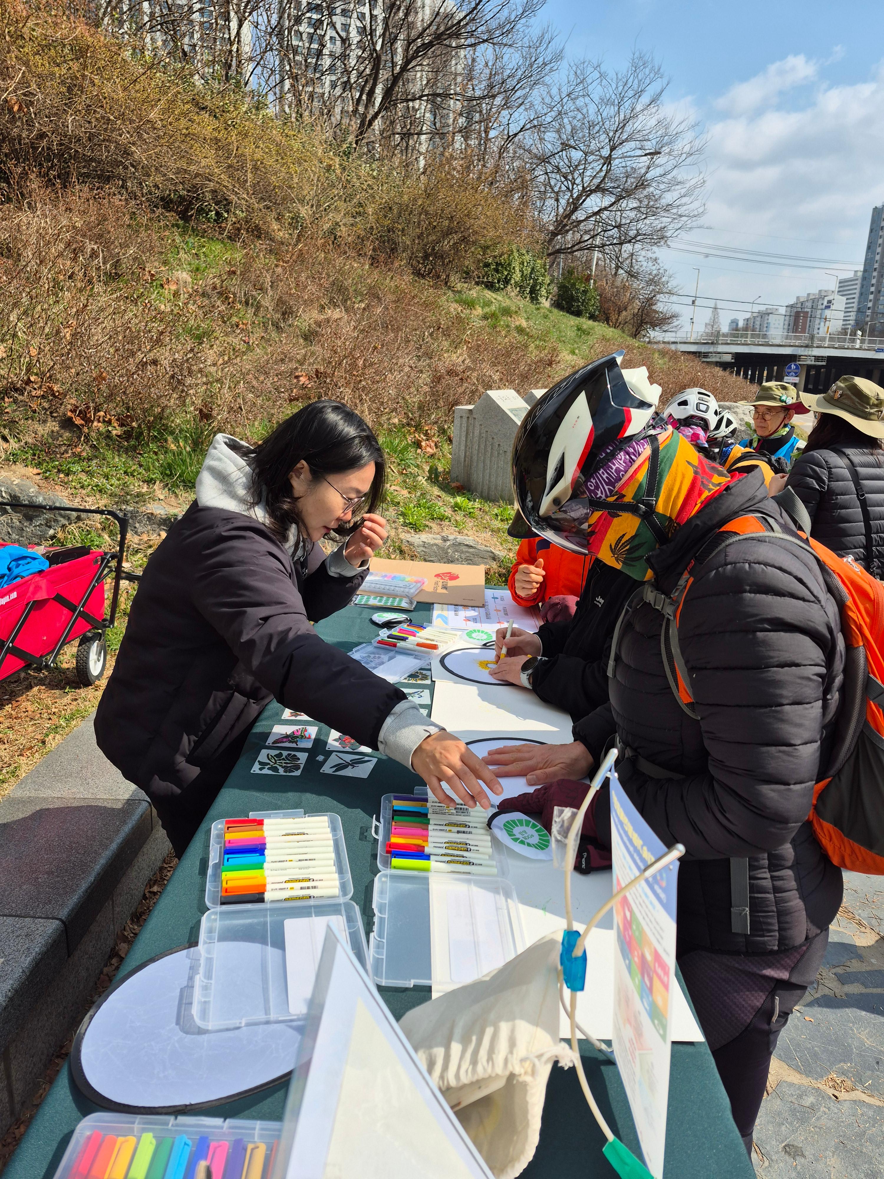 생태전환분과 주관으로 진행한 이날 행사는 오전 10시부터 안양지속현 위원을 비롯 하천을 산책하고 운동하는 시민들을 대상으로 SDGs 부채만들기 체험, 안양천 관련 시민 인식 조사, 하천정화활동(플로깅) 등을 진행했다.