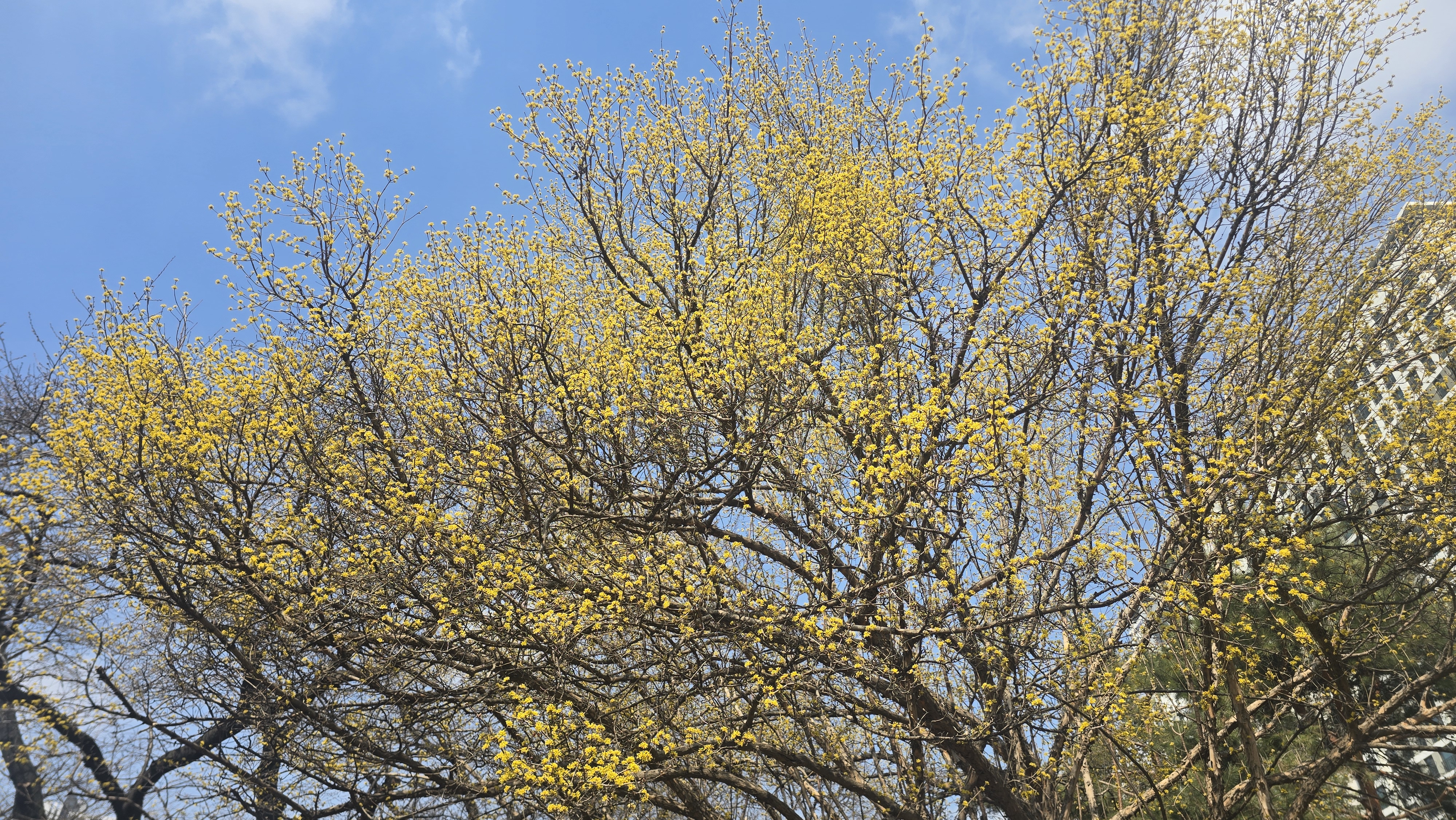 2026.03.20/ #도시기록 #산수유 #옛검역원 #봄봄봄/ 봄이 왔어요. 왕개미 정원에 두 그루의 늙은 고목 산수유 나무가 있는데 재작년 겨울 습설로 가지가 부러지는등 피해를 입었던 나무가 작년 봄에는 만개한 산수유꽃 모습이 다소 썰렁했는데 금년에는 꽃이 노랗고 화사하게 만발했네요. 하지만 또다른 산수유 나무는 아파 신음중입니다.