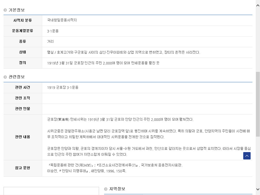 안양시 호계동에 속한 구군포 일대가 군포에서 볼때는 안양, 안양에서 볼때는 안양 변두리이자 군포라는 지명과 맞물려 역사적인 군포장 만세운동의 출발지라는 중요성과 역사적 의미도 외면하는것은 아닌가 싶다.