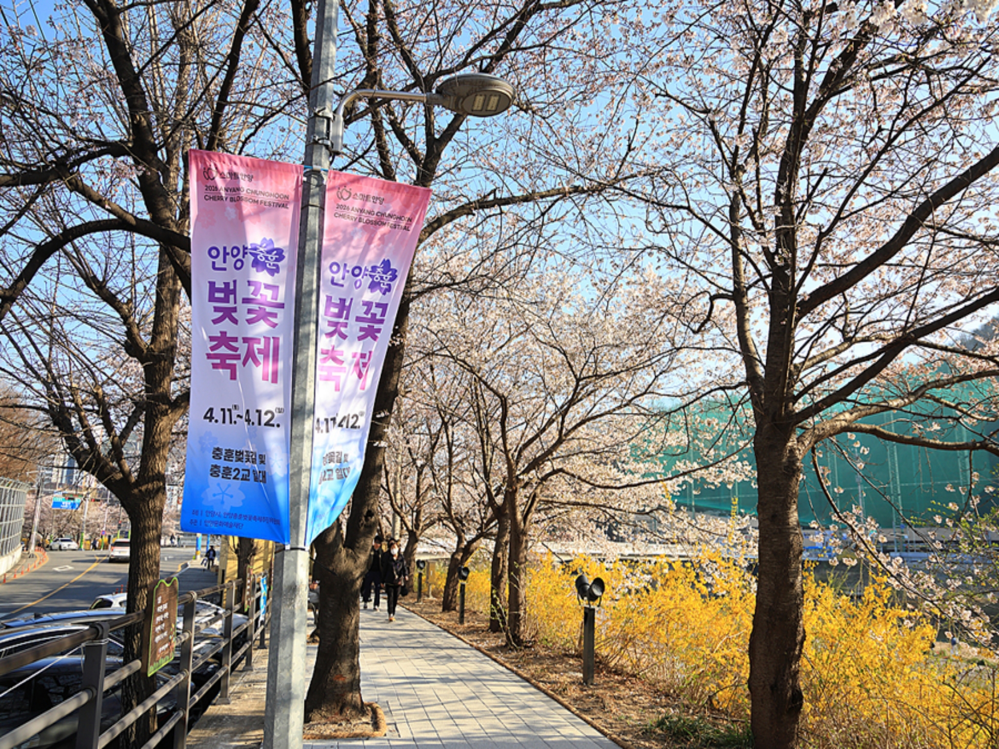 안양시가 시의 대표 봄꽃 축제인 ‘2026 안양충훈벚꽃축제’를 오는 4월 11일부터 12일까지 개최할 게획이지만 충훈부 제방길에는 벚꽃은 물론 개나리와 천변 둔치 정원에는 시에서 식재한 온갖 꽃들이 만개헸다. 이에 금년에도 기후변화로 인한 꽃 피는 시기를 맞추지 못해 꽃 만개 시점과 연계하는 축제 개최는 실패했다.