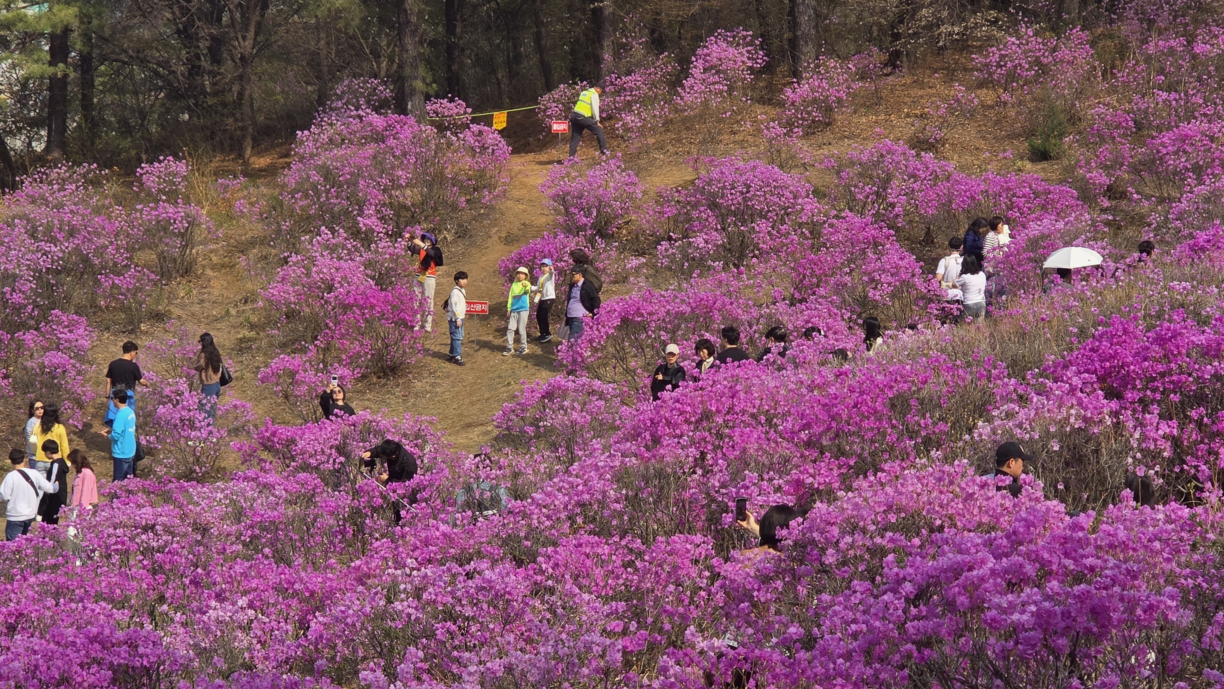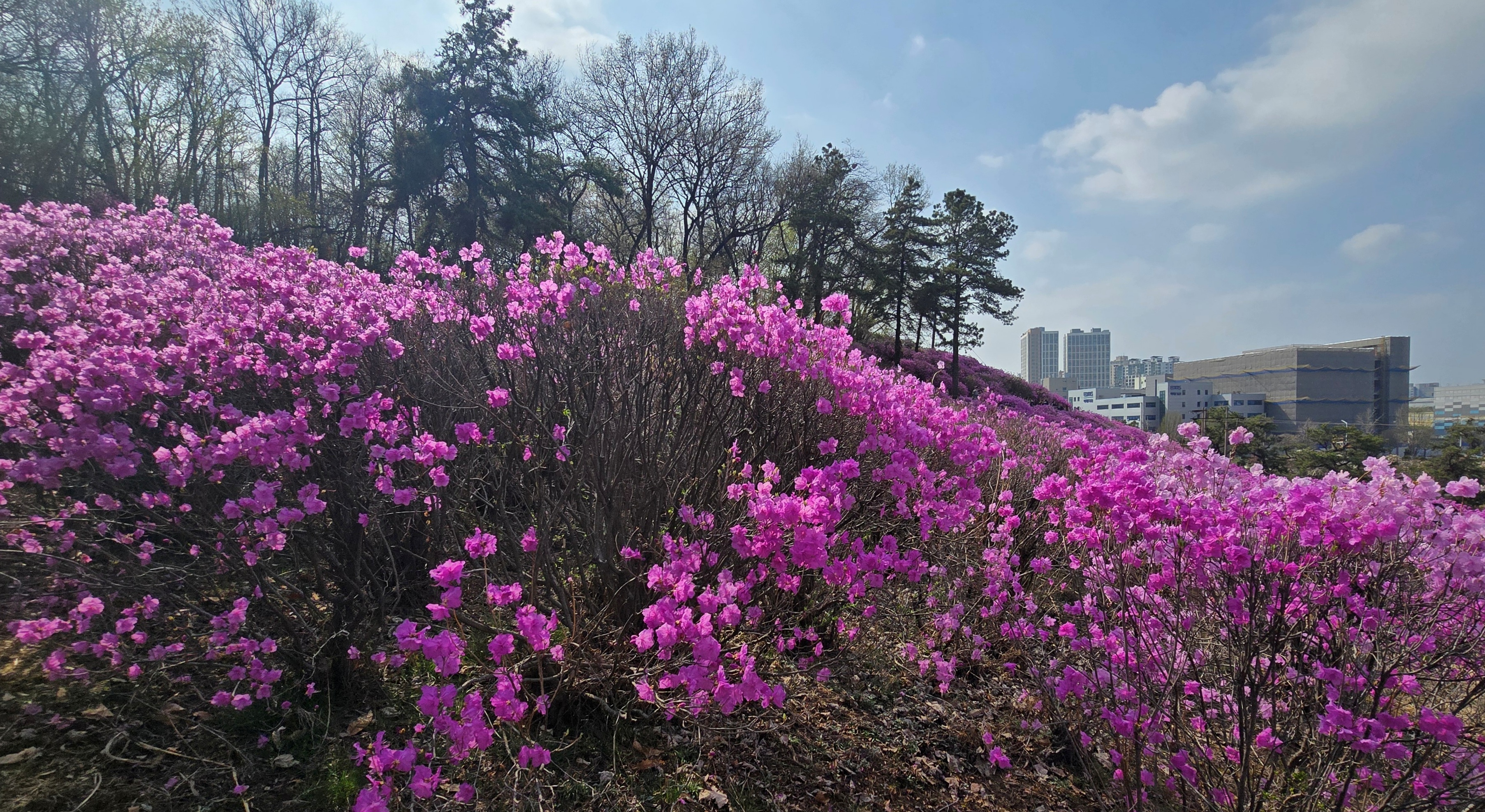 안타까운 점은 과거 3천여㎡에 달하는 면적에 어른 키 보다 높은 진달래 군락이 만개했으나 가지치기를 이유로 잘라내고, 또 면적 일부는 값비싼 조경수 단지로 바뀌면서 진달래 군락지 면적이 대폭 축소돼 아름다운 모습이 예전같지 않아 아쉬움을 주고있다.