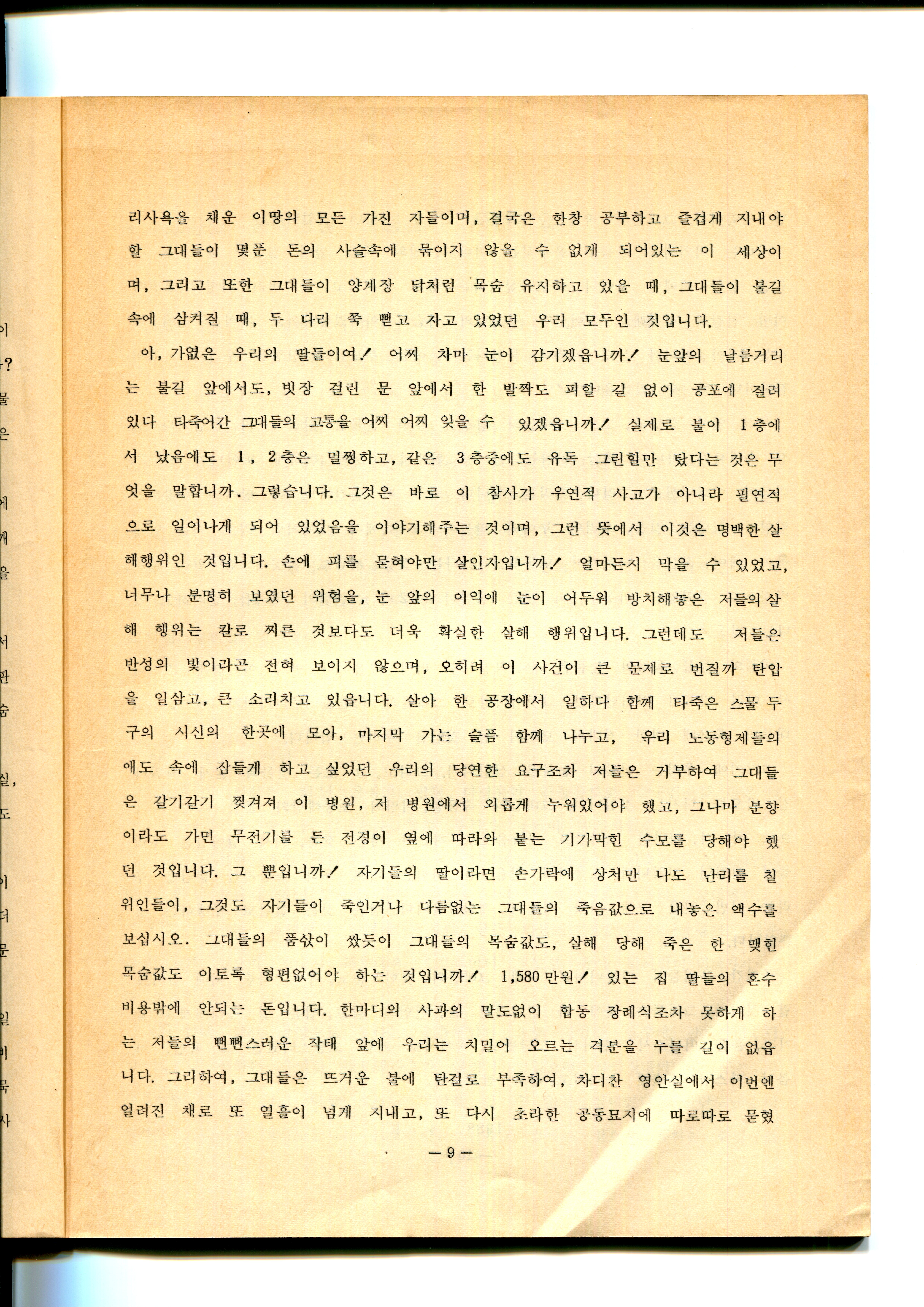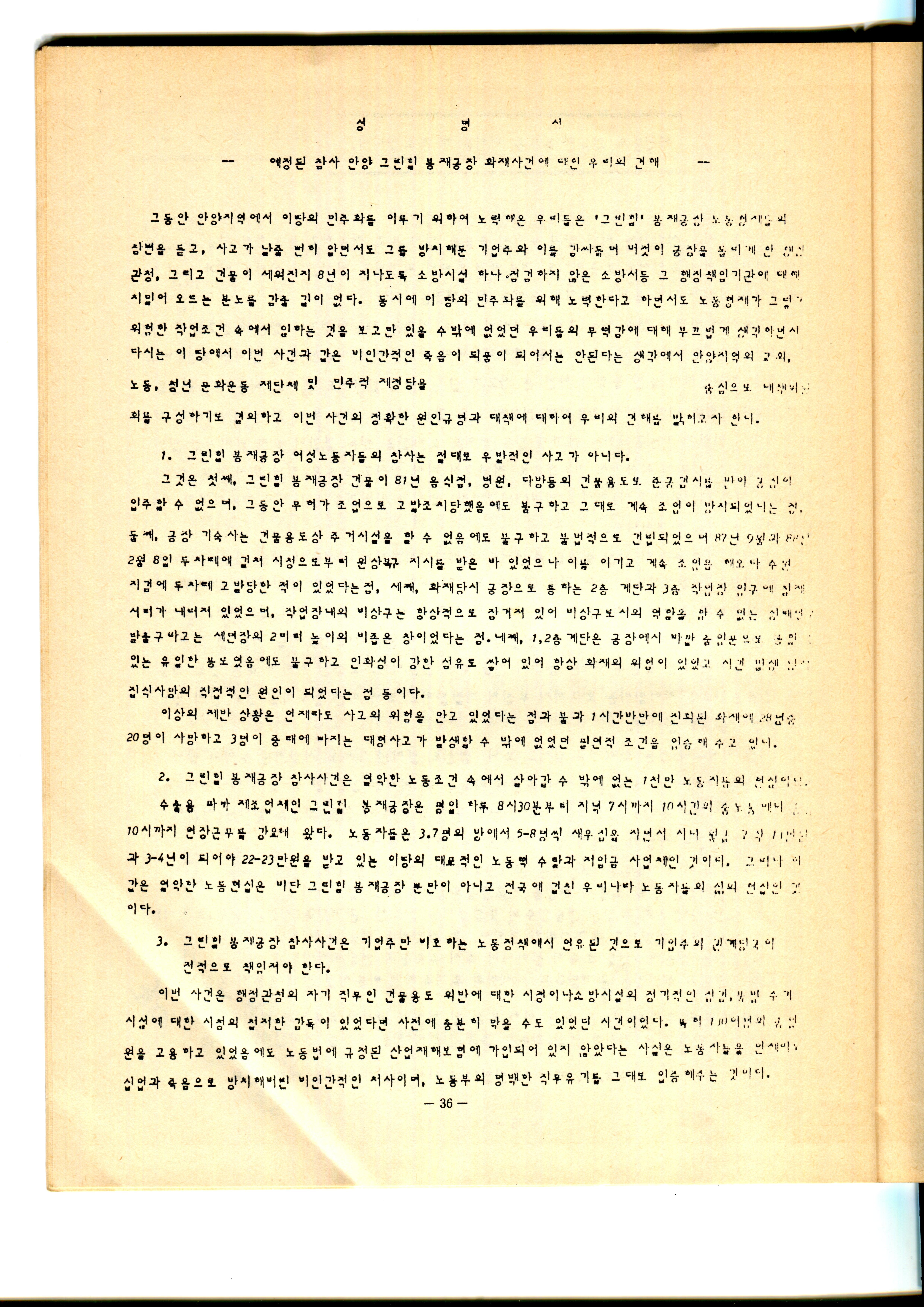 참고로 이 자료(그린힐봉제공장노동참사대책보고서)는 민주화운동기념사업회에 전달될 예정입니다.