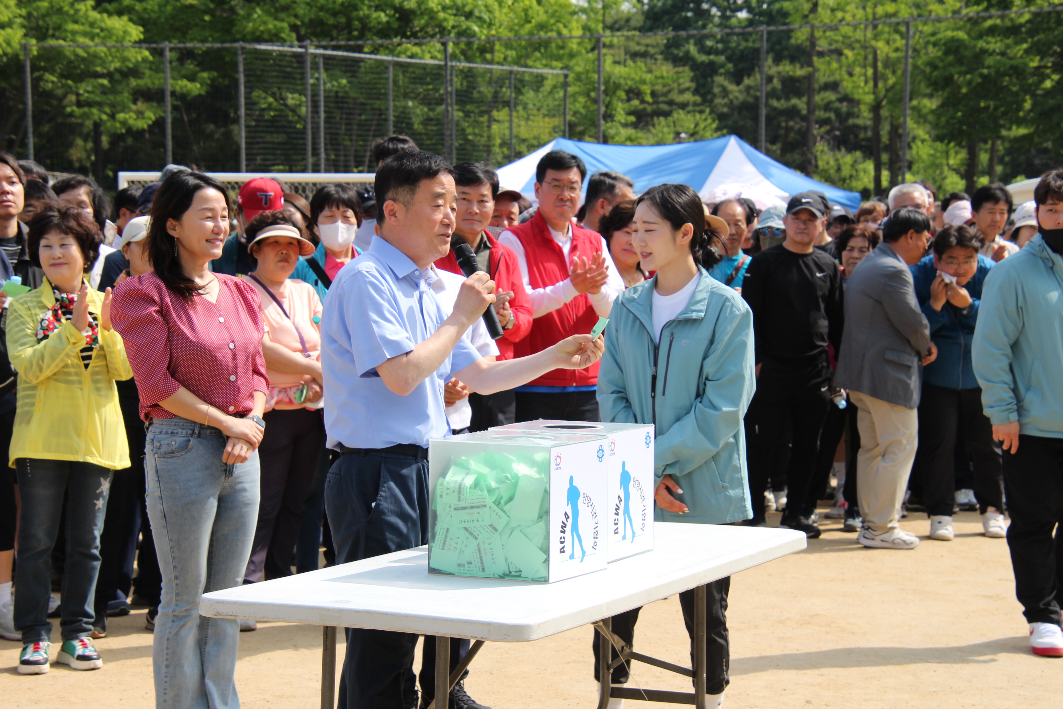 안양시체육회와 안양시걷기협회는 이날 대회에 참가한 시민들을 위해 TV, 공기청정기, 자전거 등 다양한 경품을 준비하고 반환점에서 나누어준 경품권을 공정하게 추첨해 전달했다.
