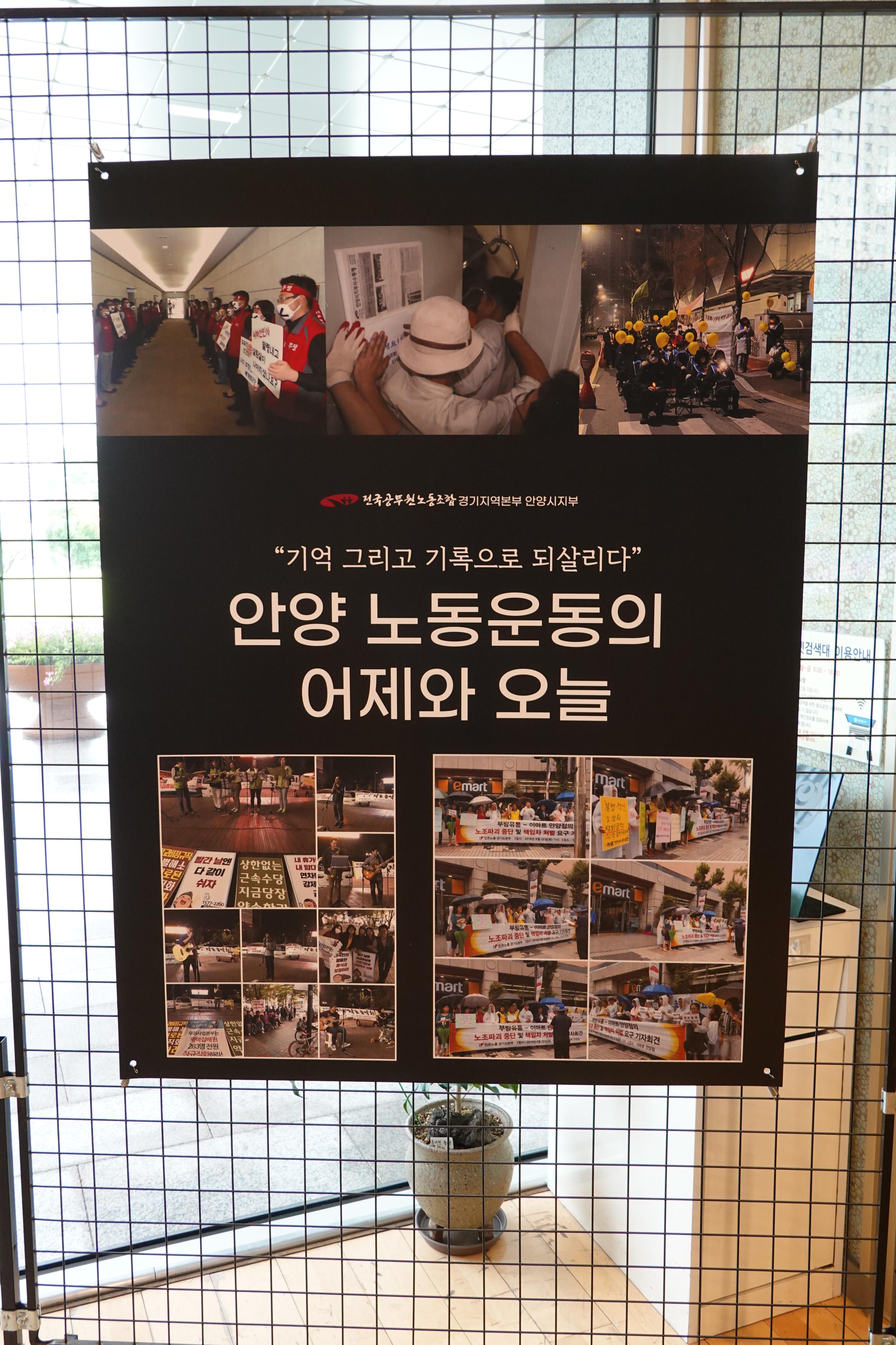 안양시 노동운동의 역사를 담은 전시회 “기억 그리고 기록으로 되살리다”가 안양시청 1층 로비에서 열리고 있다.