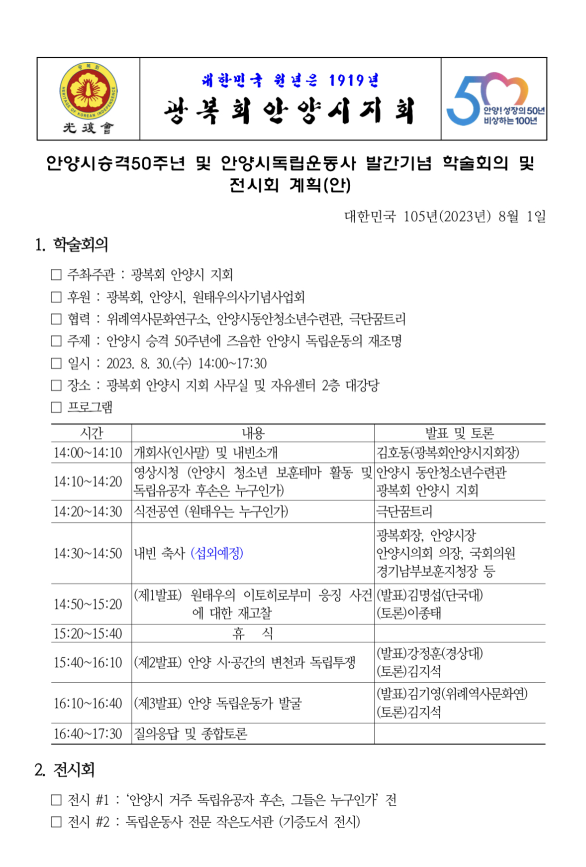 [20230825]광복회 안양지회, 안양시 독립운동사 재조명한다