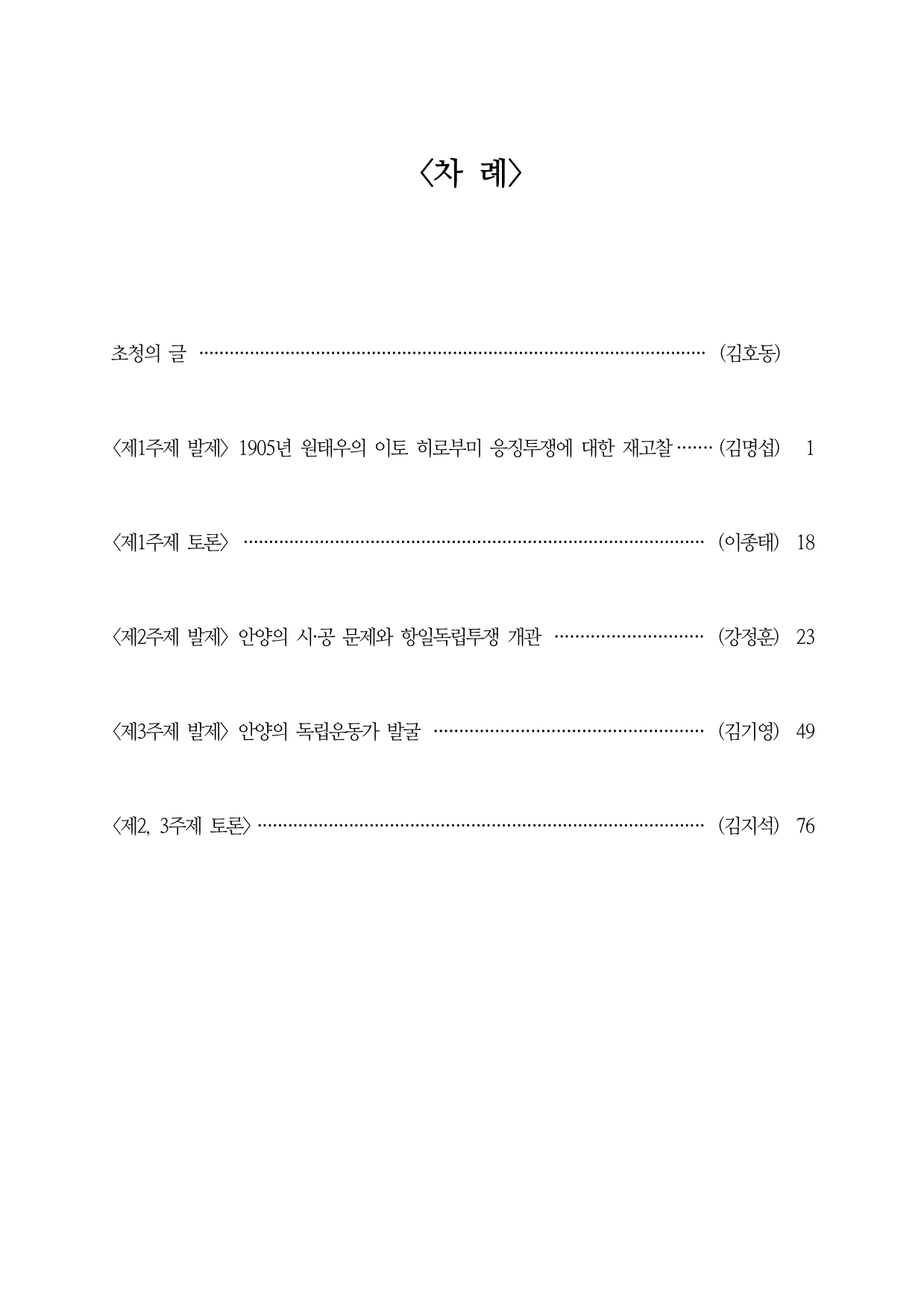 □ 주제 : 안양시 승격 50주년에 즈음한 안양시 독립운동의 재조명