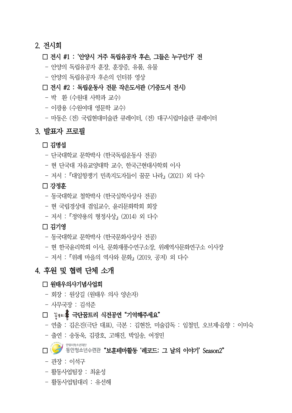 □ 협력 : 위례역사문화연구소, 안양시동안청소년수련관, 극단꿈트리