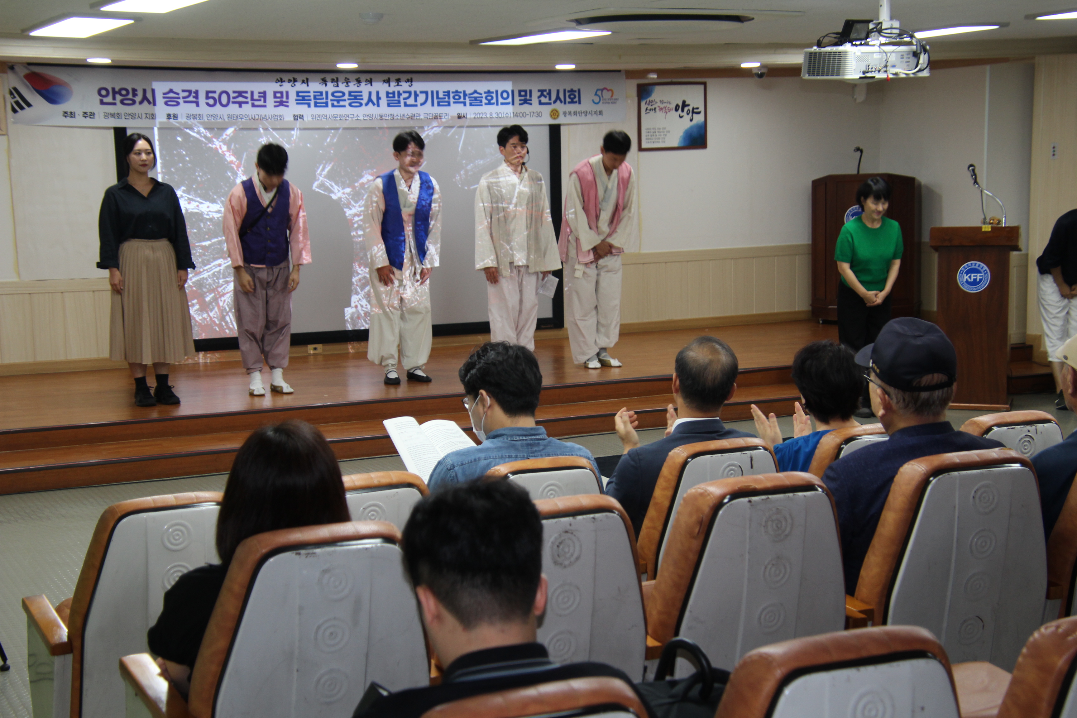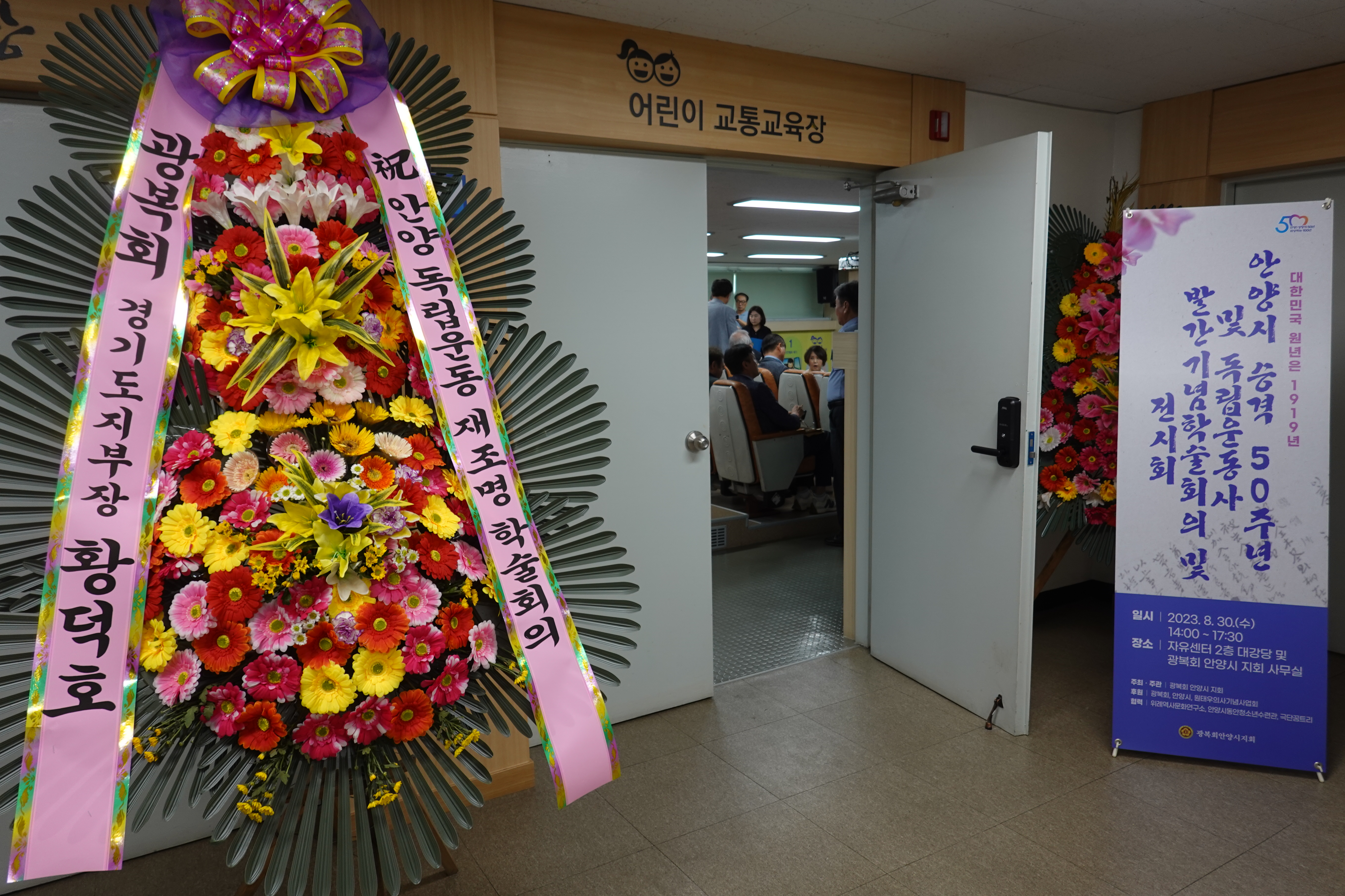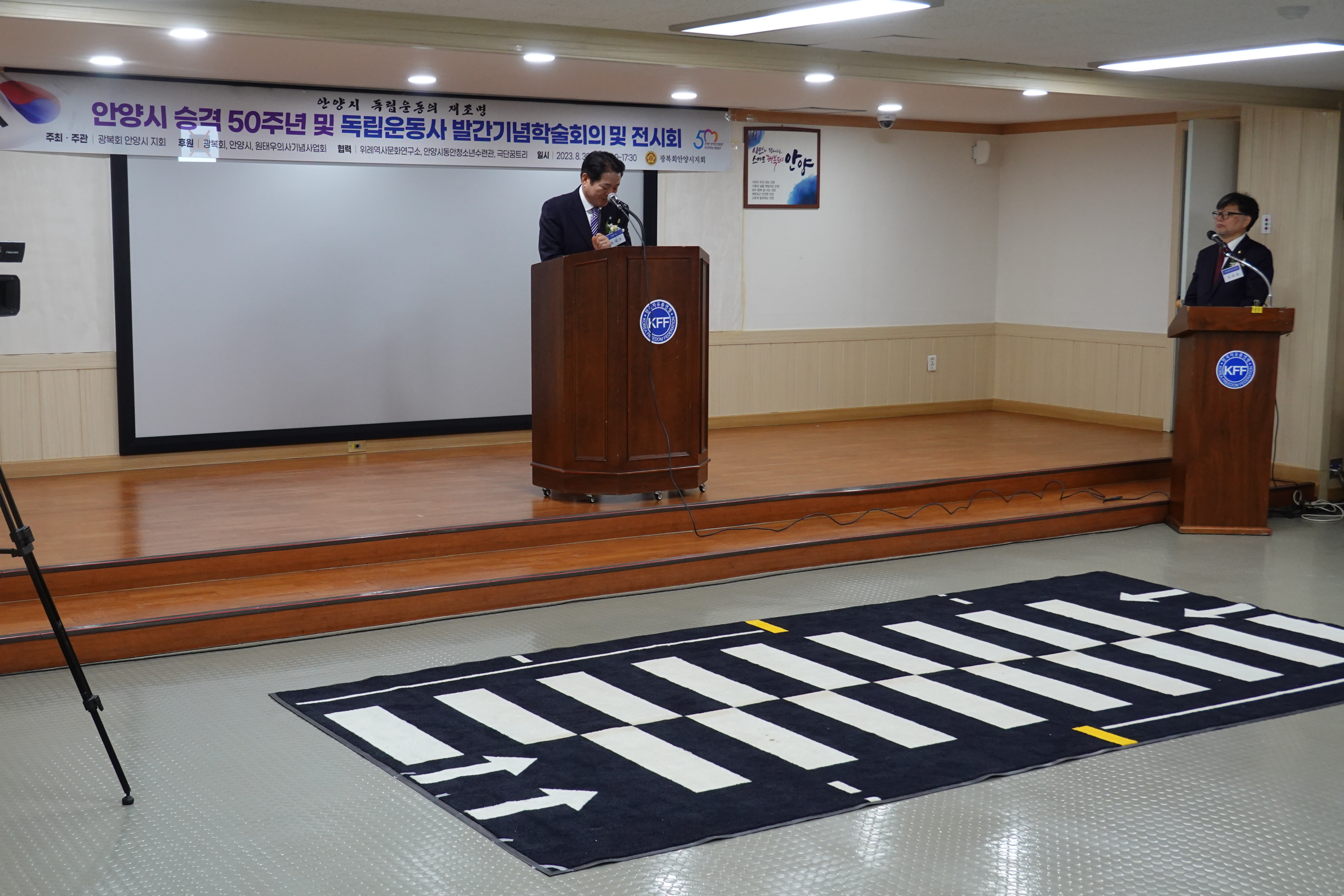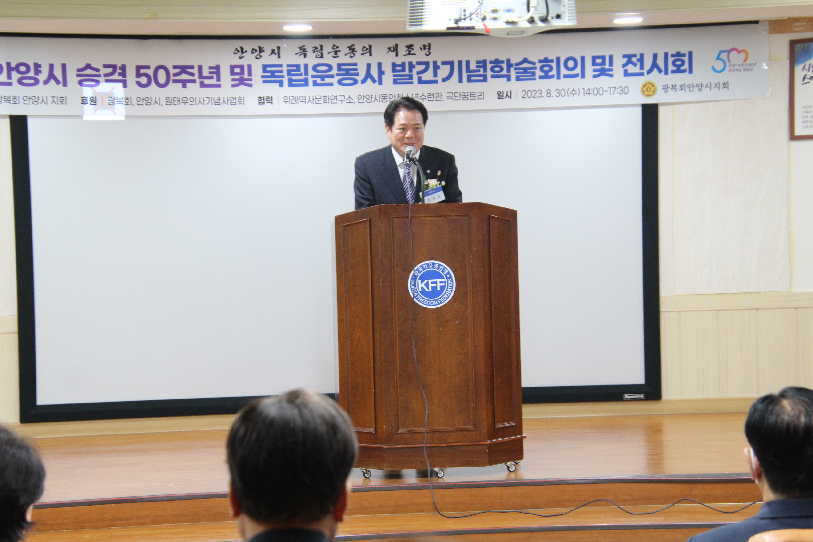 개막식에서 김호동 광복회 안양시지회장은 안사말을 통해 "지난 2년 동안, 시승격 50주년을 맞는 안양시의 후원으로 전문 연구진과 함께 안양시의 근현대역사, 특히 독립운동사를 연구하고 조사하여 책으로 발간하고 드디어 학술회의 및 전시회를 개최하여 그 성과를 소개하려 한다"며 :이 작업의 목적은 안양과 연고가 있는 독립운동가의 서훈을 추진하고 그분들의 공적을 기리는 공간을 안양에 마련하기 위한 것으로 많은 관심을 가져달라"고 요청했다.