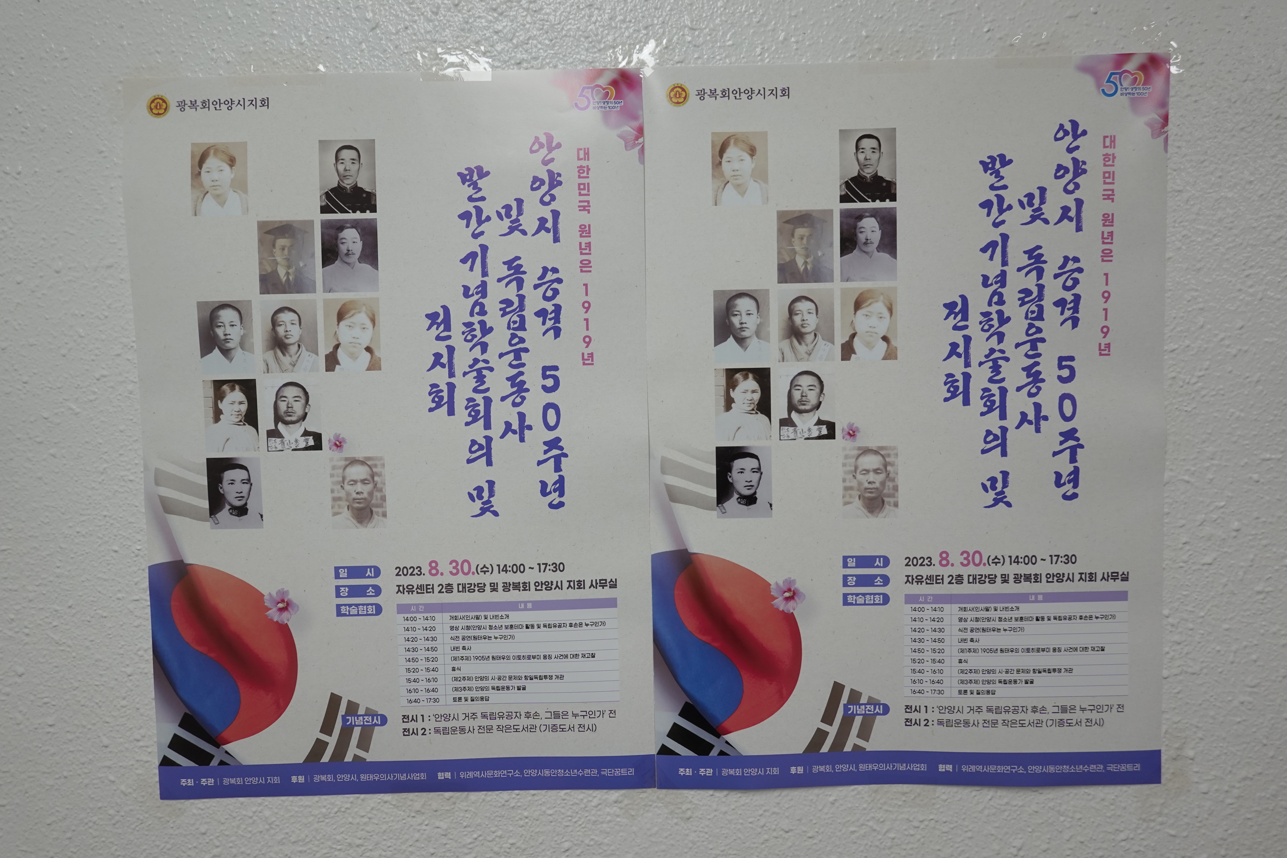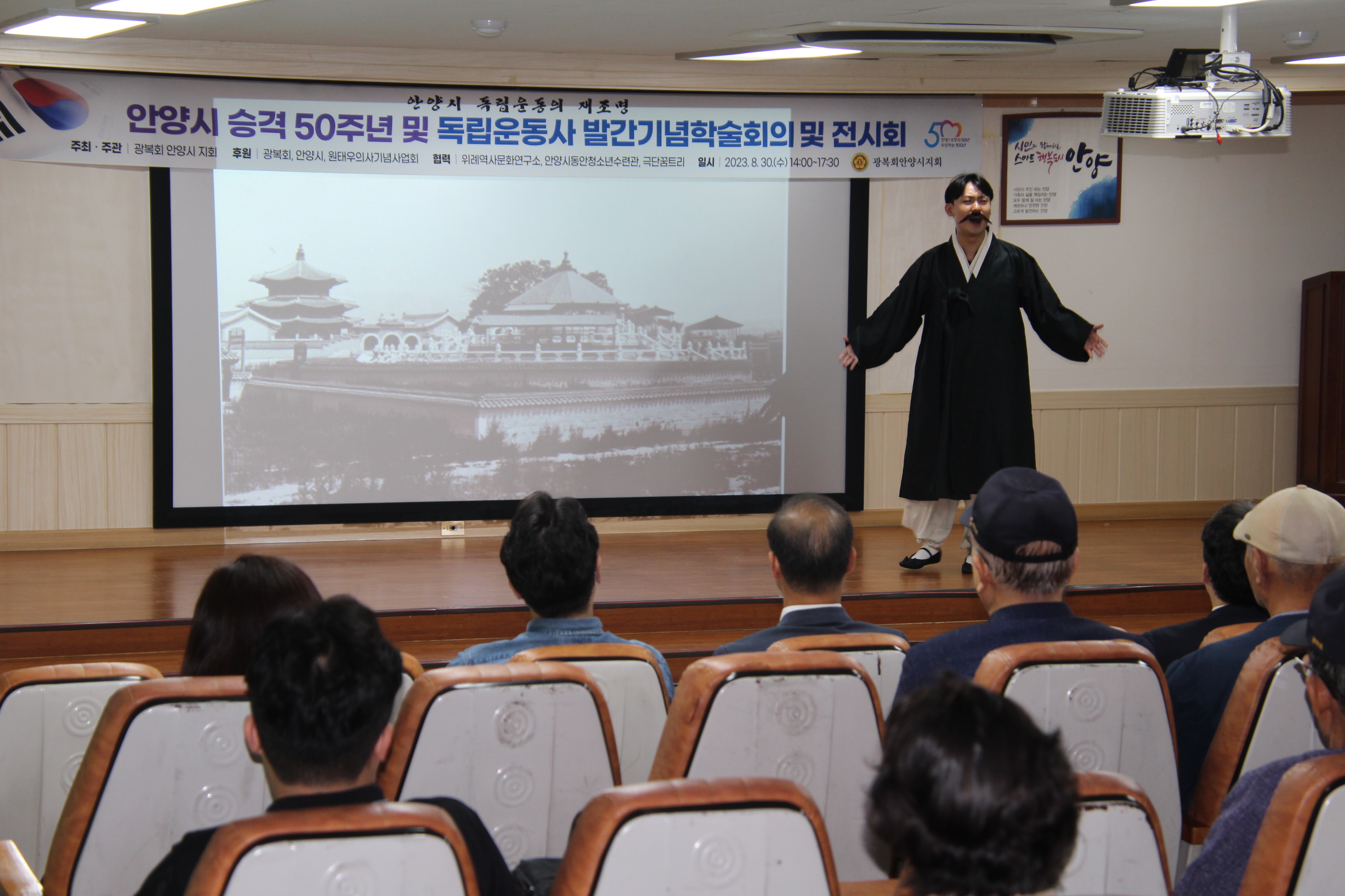 독립유공자와 그 후손들의 공법단체인 광복회 안양시지회가 안양시 승격 50주년에 즈음하여 2022년부터 집필해 왔던 「안양시 독립운동사」를 발간하면서 『안양의 독립운동 재조명』이라는 제목으로 안양의 독립운동과 독립운동가들의 연구 결과를 소개하는 학술회의와 전시회가지난 8월 30일 오후 2시, 안양 평촌 자유공원 내에 있는 자유센터에서 열렸다.