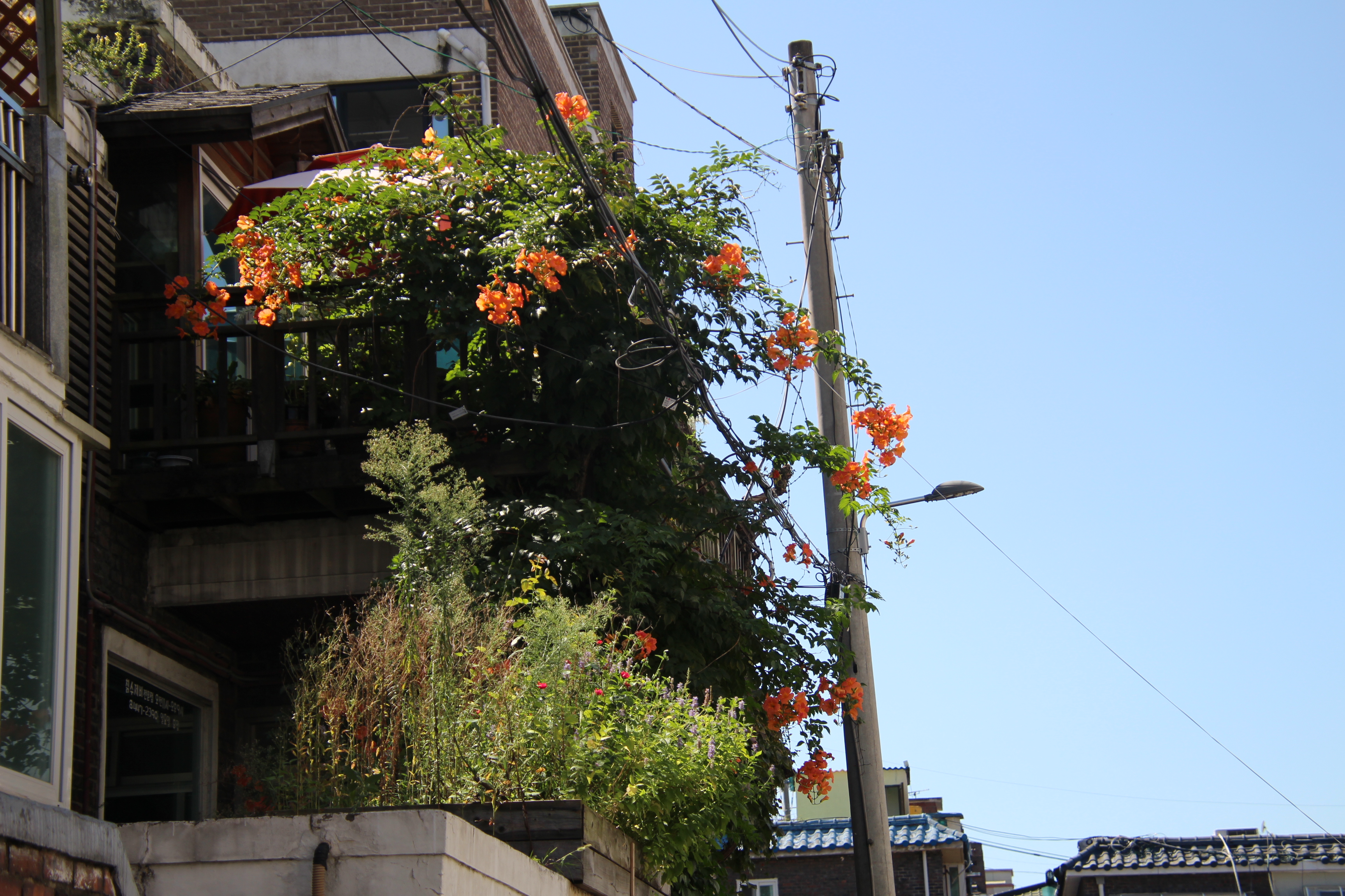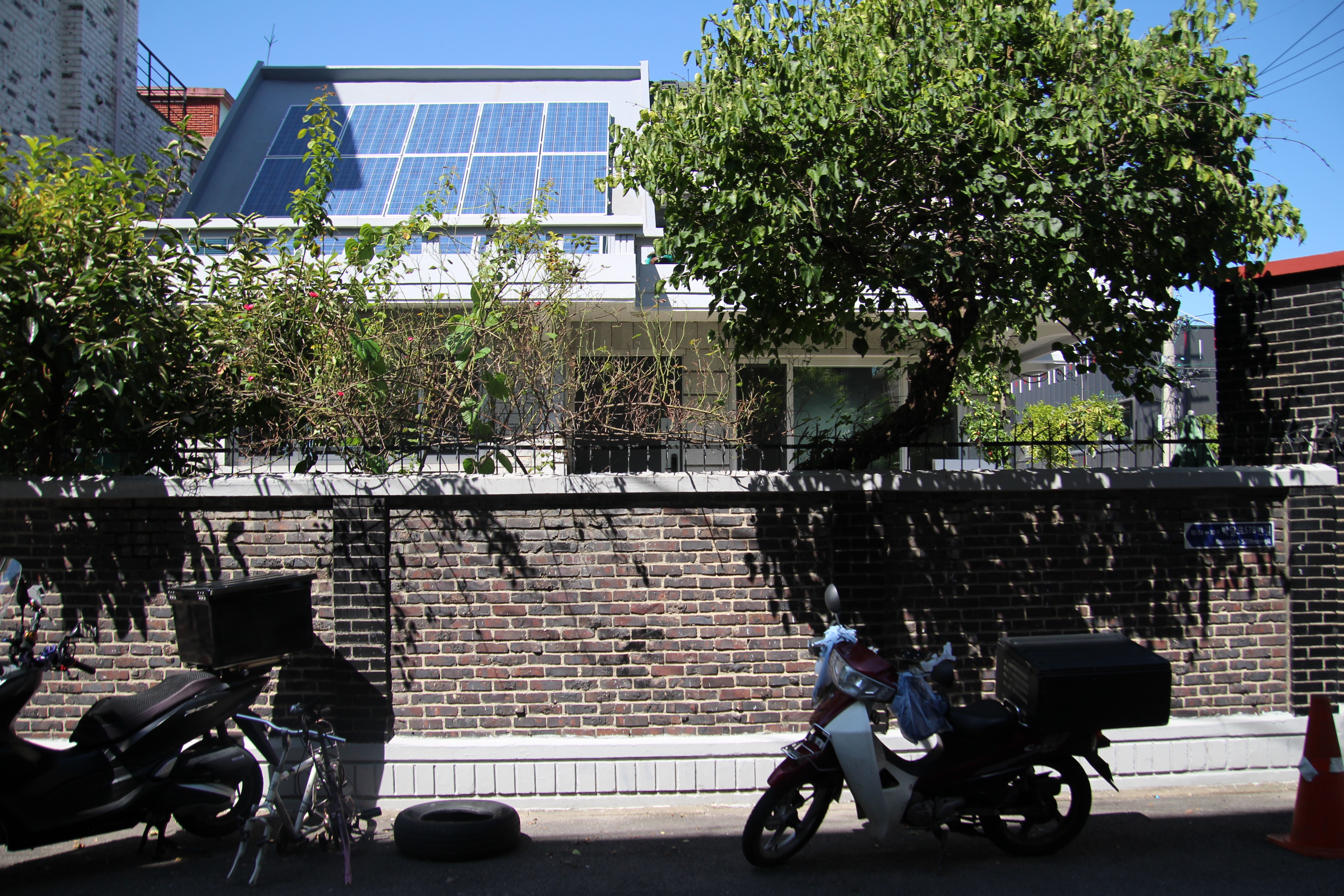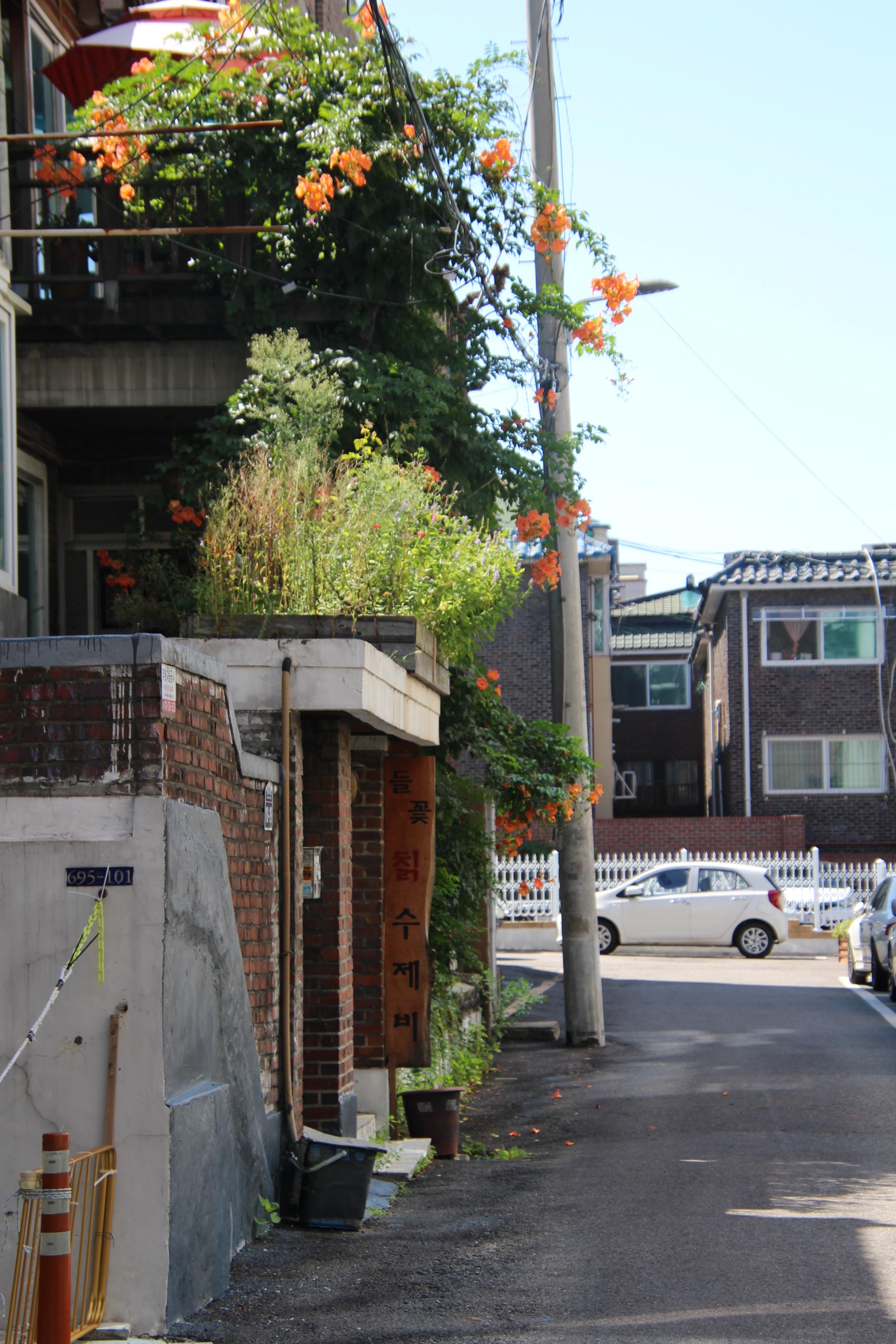 아래 사진을 찍었던 9월 7일에는 댕리단길에 대하여 취재차 나온 B-TV abc방송팀을 안내하며 마을을 한바퀴 돌다보니 1977년 택지를 분양받아 집을 지었던 당시의 2층양옥집 대여섯채를 발견했다. 마당에 심어진 채송화, 대문앞의 담벼락에 심어진 맨드라미, 단장 한쪽에 소나무, 대추나무, 감나무가 심어진 집들이 너무나 예뻤다. 앞으로도 계속 남아있었으면 하는 바람을 가져본다.