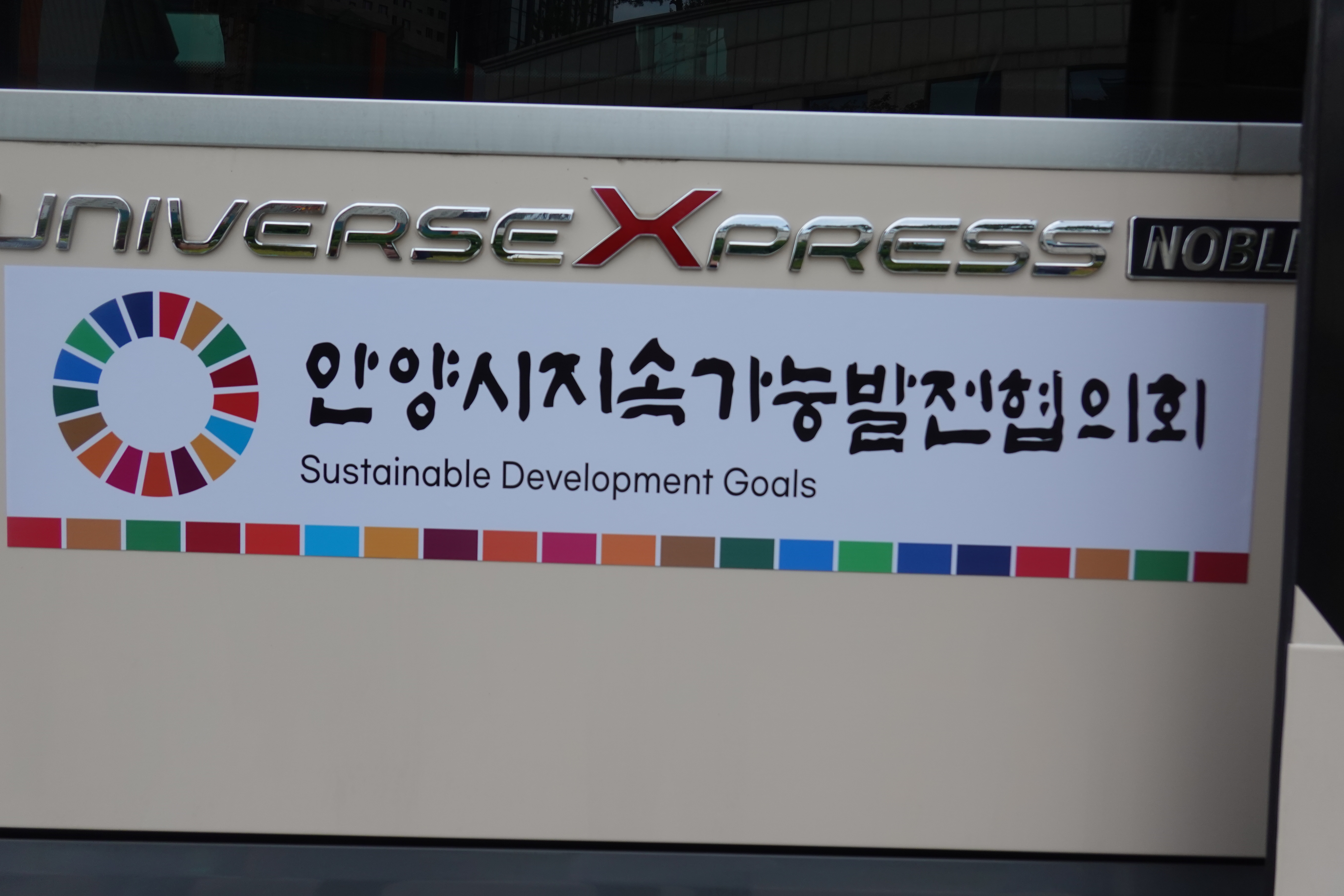 2023.09.12/ #안양지지속가능발전협의회 #SDGs/ 2023.09.13-15일 순천에서 개최되는 전국지속가능발전대회에 안양지속협 위원 40여명을 태우고 갈 안양시청 버스가 SDGs이미지로 꽃단장을 했습니다. 작년 보령대회에서도 SDG이미지로 치장을 한 안양시청 버스 1호차가 인기몰이를 했는데 이번 순천 대회에서는 안양시청 버스 2호차가 포토존으로 카메라 세례를 받지 않을가 싶네요.