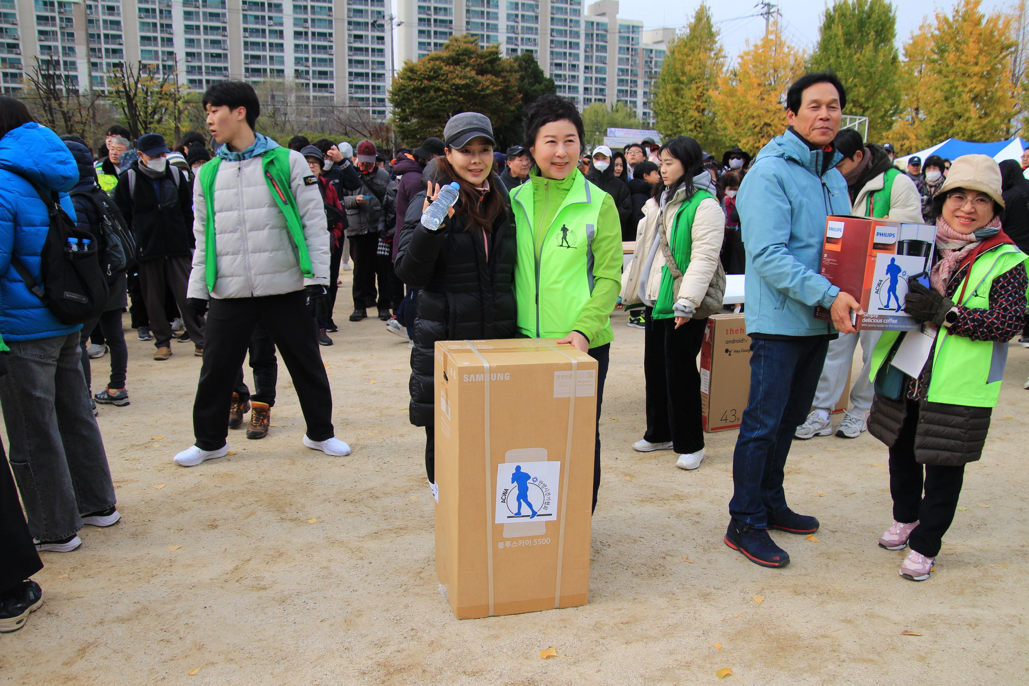 안양시걷기협회는 이번 행복걷기대회에 참가한 시민을 위해 TV, 공기청정기, 전기밥솥, 전자레인지, 자전거, 쌀 등 다양한 경품을 준비했다.