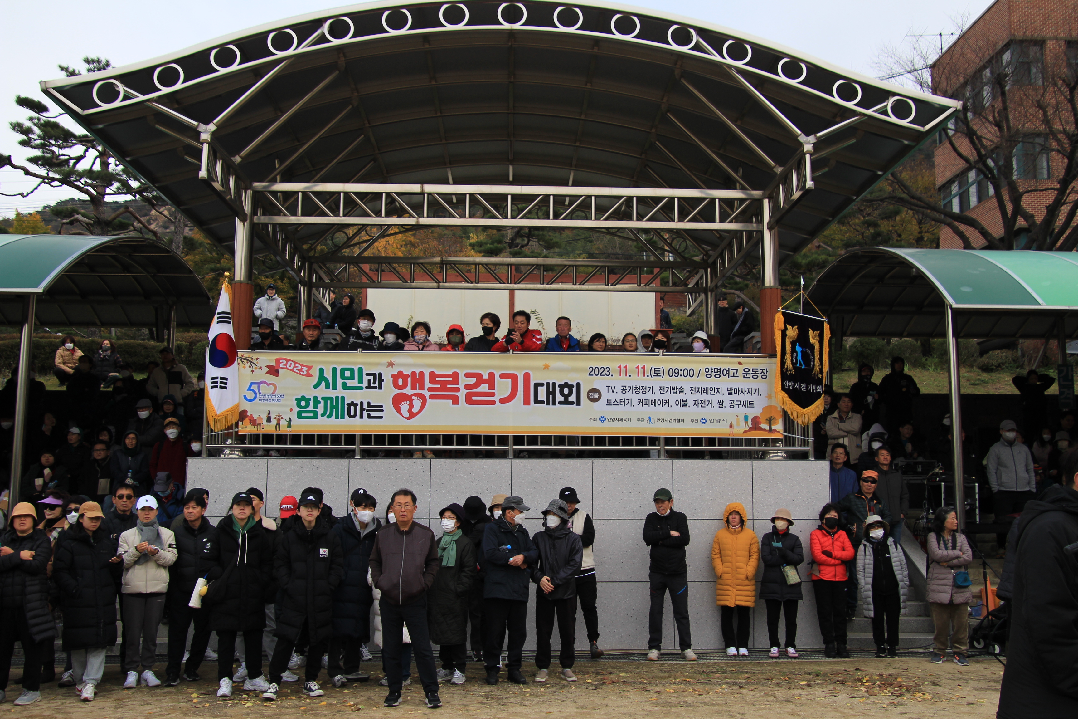 안양시 2023힐링행복걷기대회가 11월 11일 오전 9시 양명여고 운동장에서 2천500여명의 시민들이 참여한 가운데 열렸다.