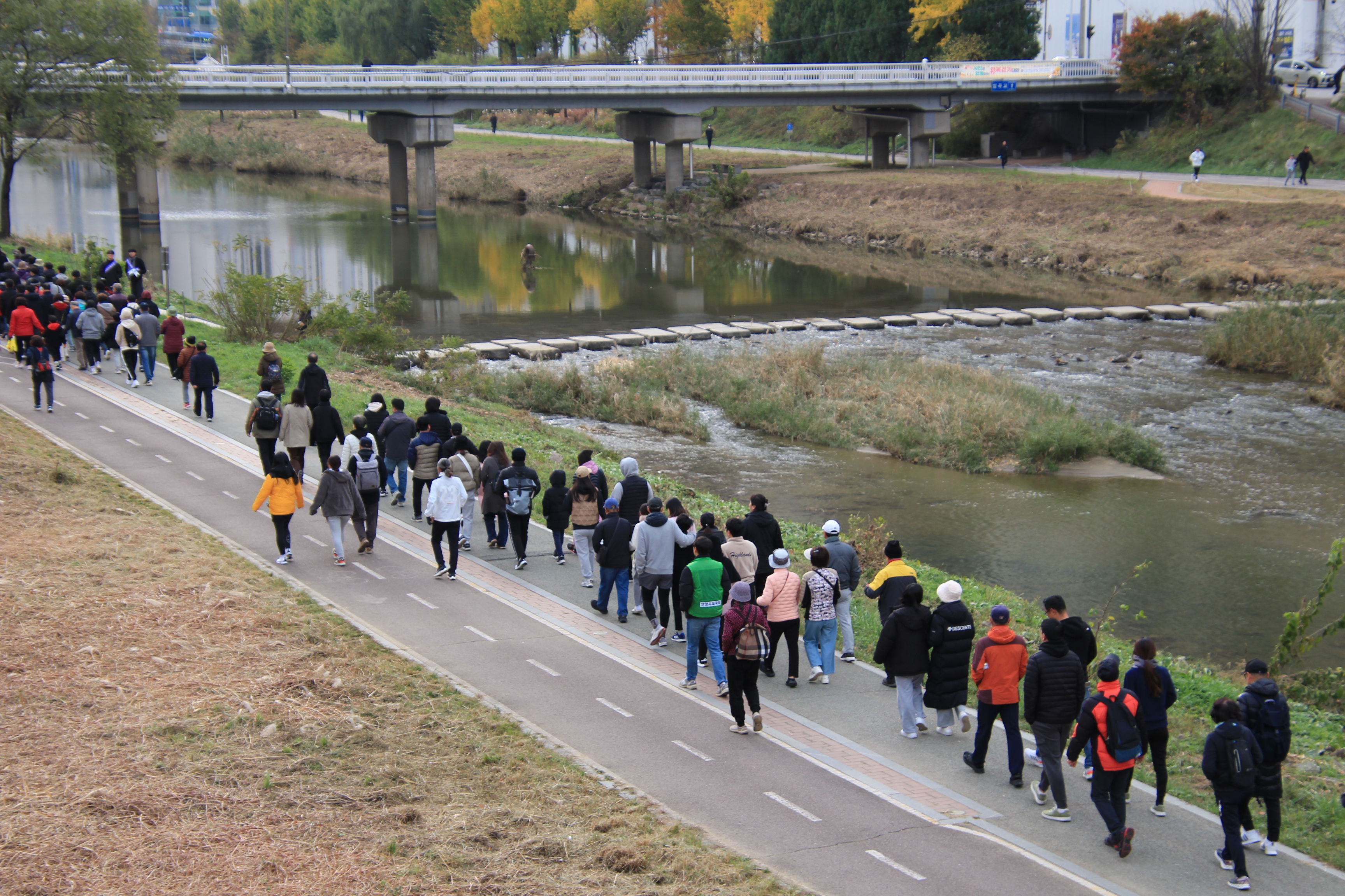 안양시체육회가 주최하고 안양시걷기협회가 주관한 이날 행복걷기대회는 안양2동 양명여고 운동장을 출발해 비산대교를 지나 세월교를 반환점으로 되돌아오는 약 3.5㎞ 코스로 약 1시간이 소요됐다.