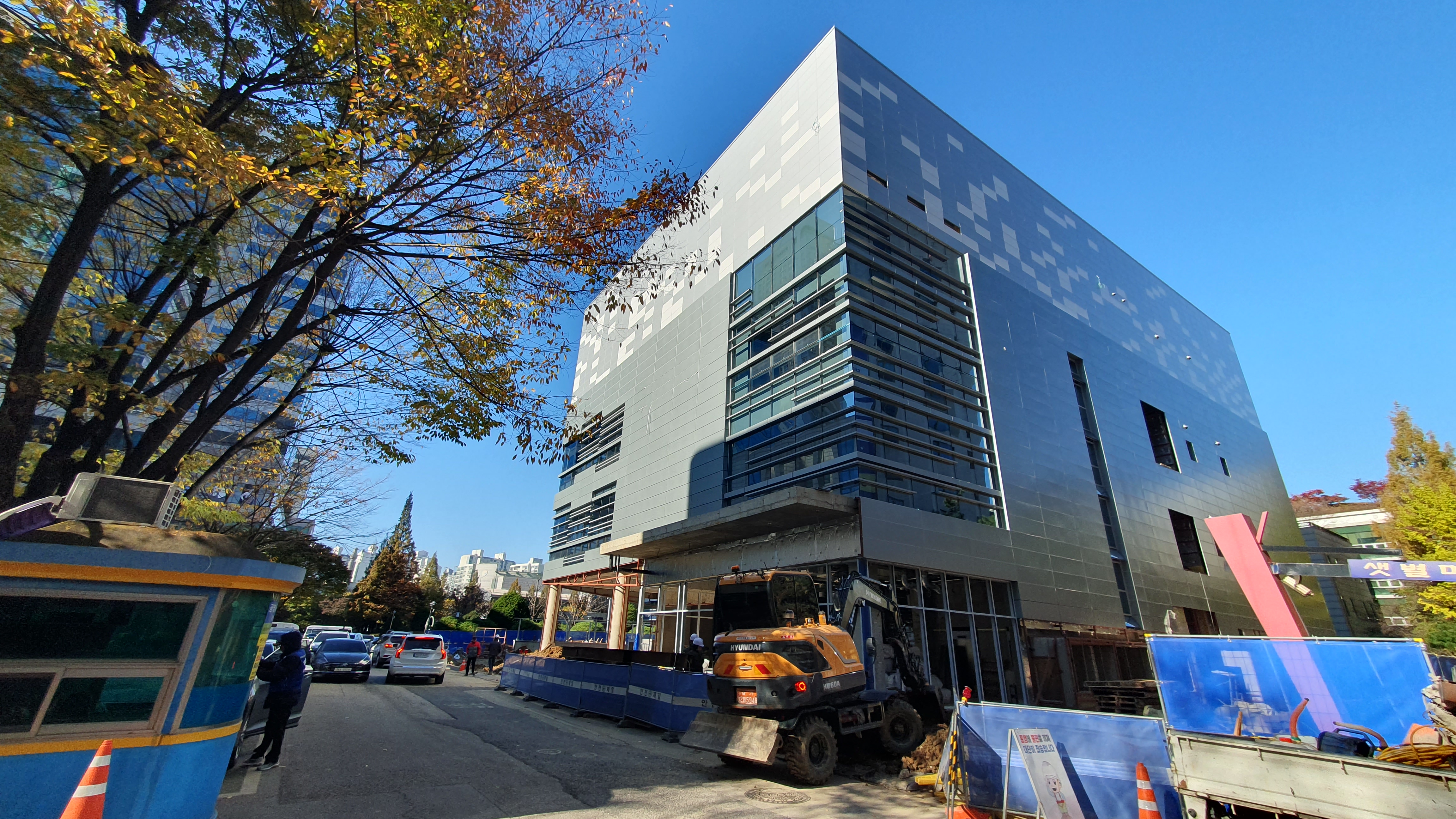 안양시 동안구청(동안구 비산동 1111번지) 청사앞 우측 쉼터공간에 신축중인 'IoT 공공서비스 경기도 거점센터' 막바지 공사가 한창이다.