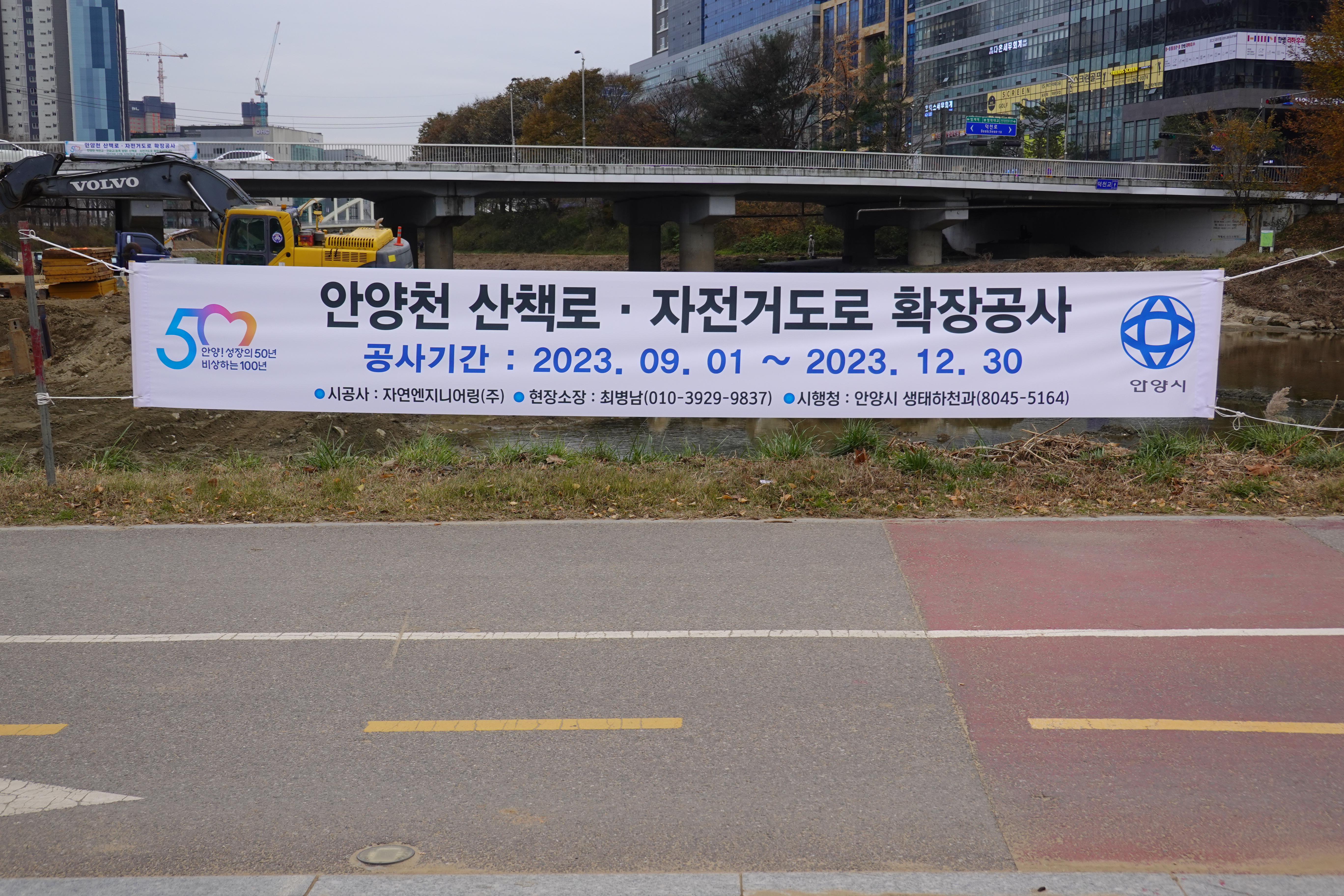 도시사진기록/골목풍경 [20231126]안양천 동쪽길(쌍개울-호안교) 통행금지 안양똑딱이 2023. 11. 27. 10:27 2023.11.26/ #도시기록 #안양천 #공사중/ 안양천 산책로.자전거도로 확장공사로 쌍개울에서 군포방향 안양천 동쪽길 통행금지. 쌍개울 학의천다리부터 안양천 호안교까지 전면 통제중으로 서쪽길로 우회해야 한다. 저작자표시 비영리 변경금지 (새창열림)