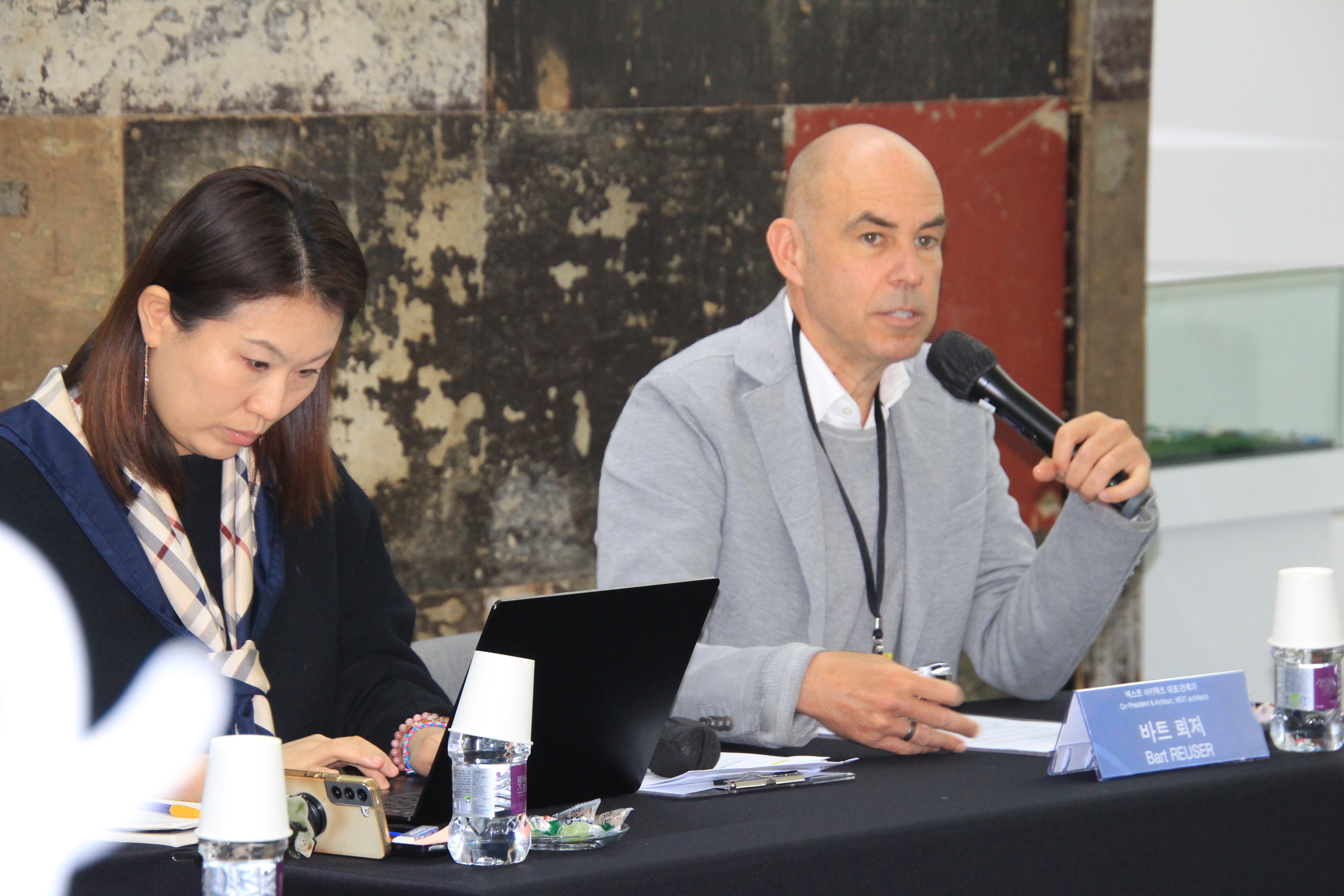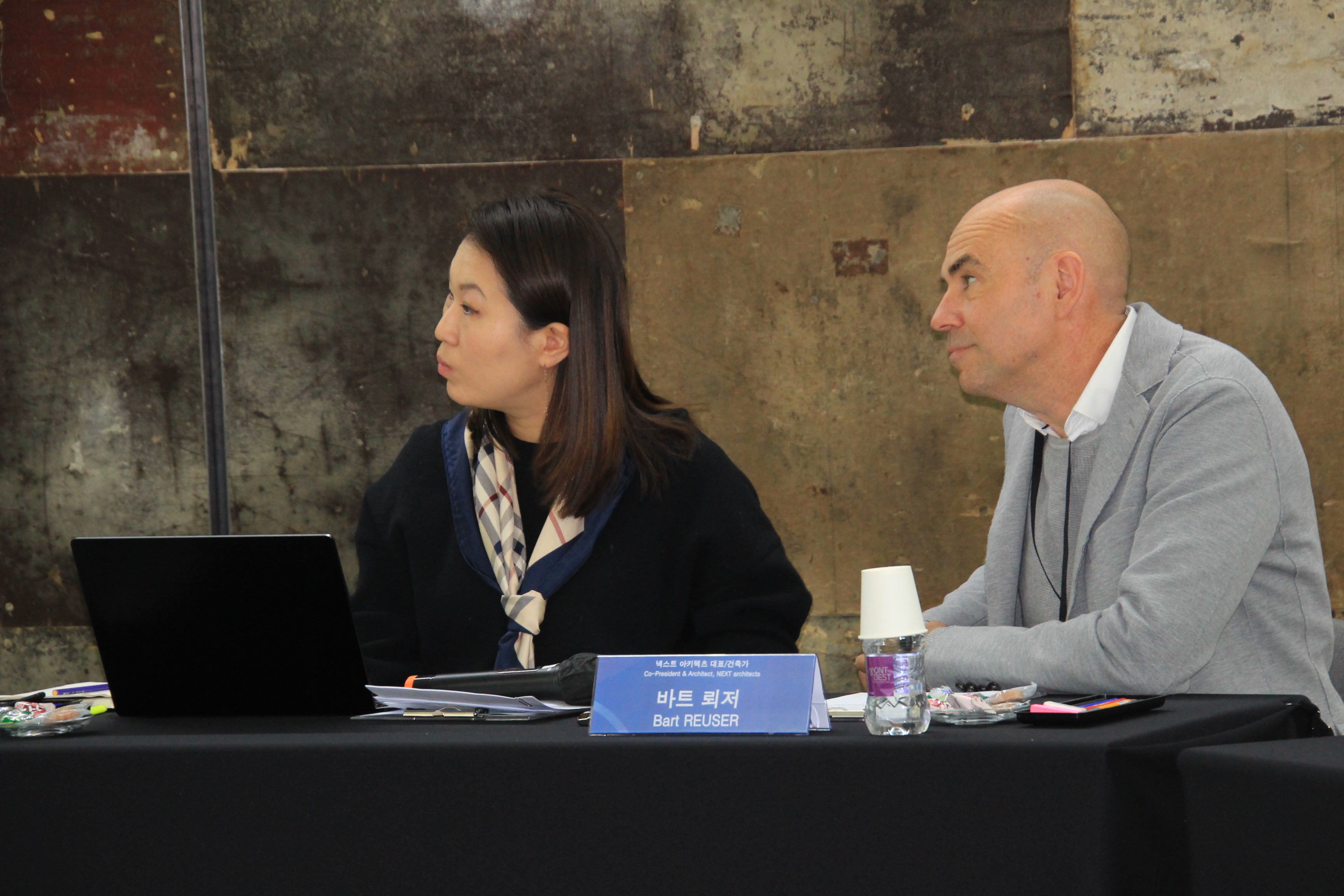 넥스트 아키텍츠(1999년 설립)는 암스테르담과 베이징에 기반을 둔 세계적인 건축 그룹으로, 이날 기념식에는 공동 설립자이자 건축가 바트 뢰저와 한국인 건축가 지백현, 모더레이터로 참여한 서울시청 문화본부의 이성민 학예연구사가 건축가의 시선에서 바라보는 건축과 공공예술에 관한 논의를 가졌다.