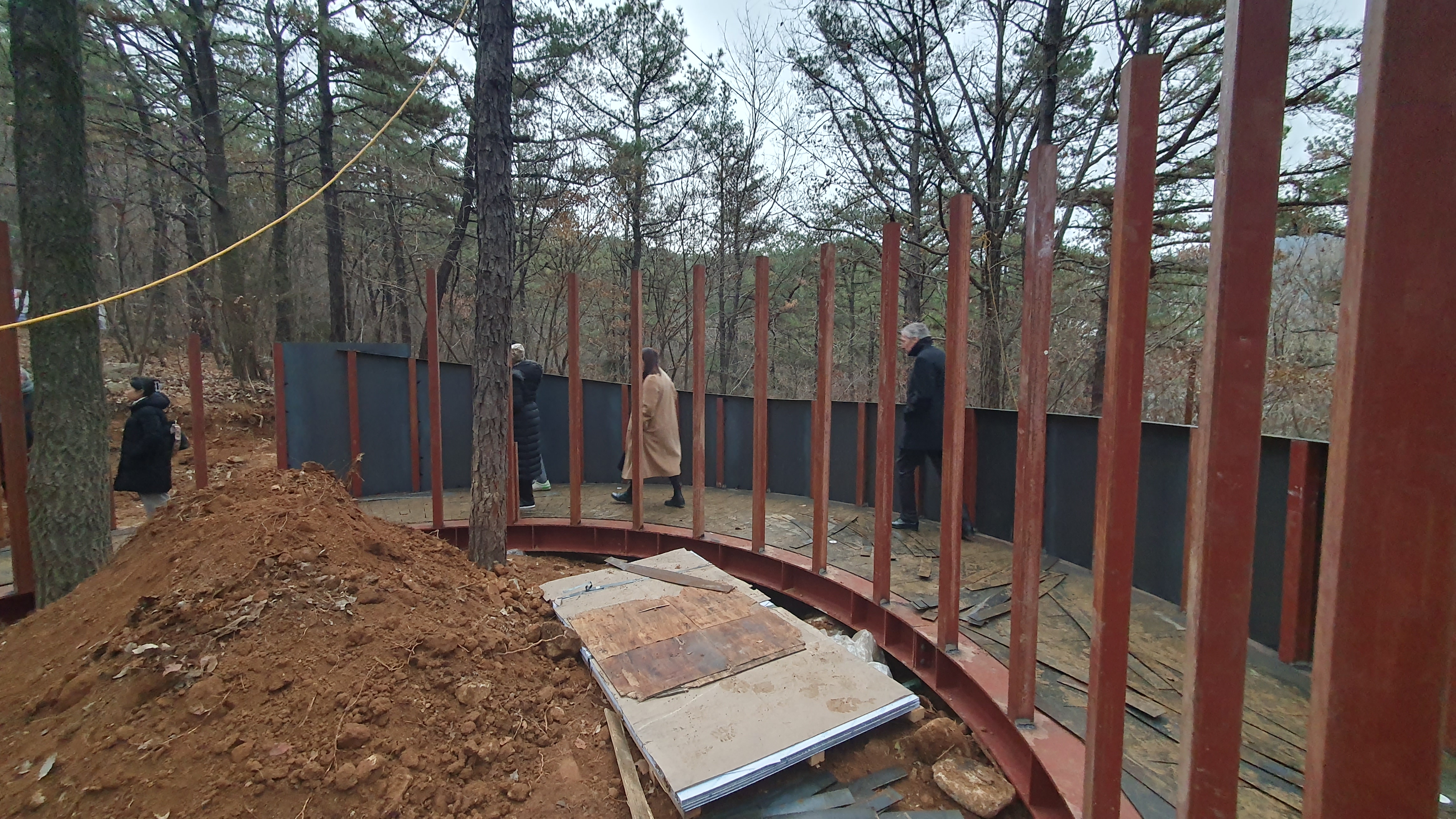 이에 주한네덜란드 대사 부부와 APAP7과 비밀의숲 작품을 설계한 넥스트 아키텍츠 관계자 그리고 기념식 참석 시민 일부가 작품 투어에 나섰으나 당초 11월 말까지 설치 완료할 예정이던 작품 설치가 이날까지도 완공되지않아 공사가 한창 진행중인 현장만 보고 내려와 아쉬움을 남겼다.