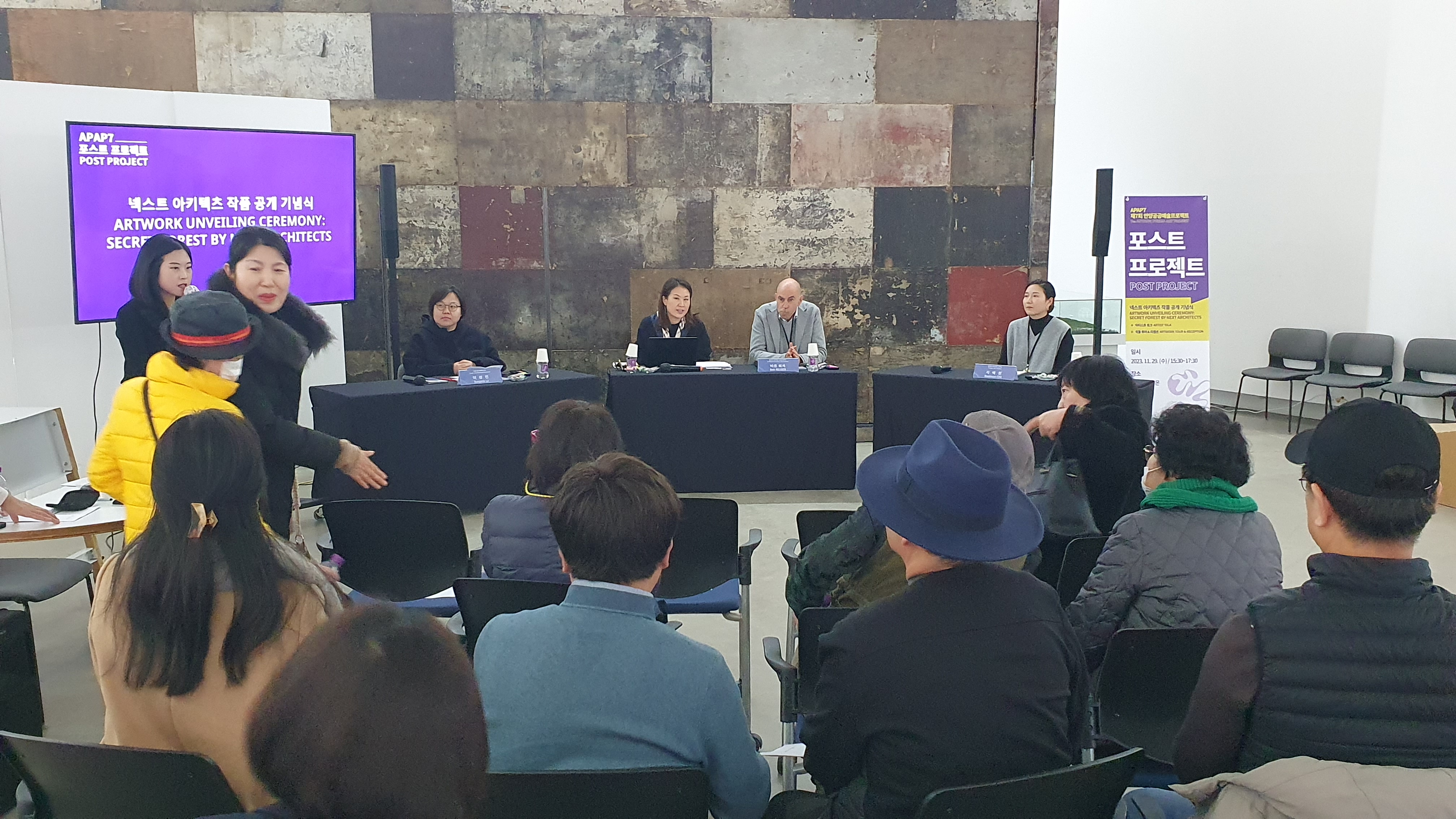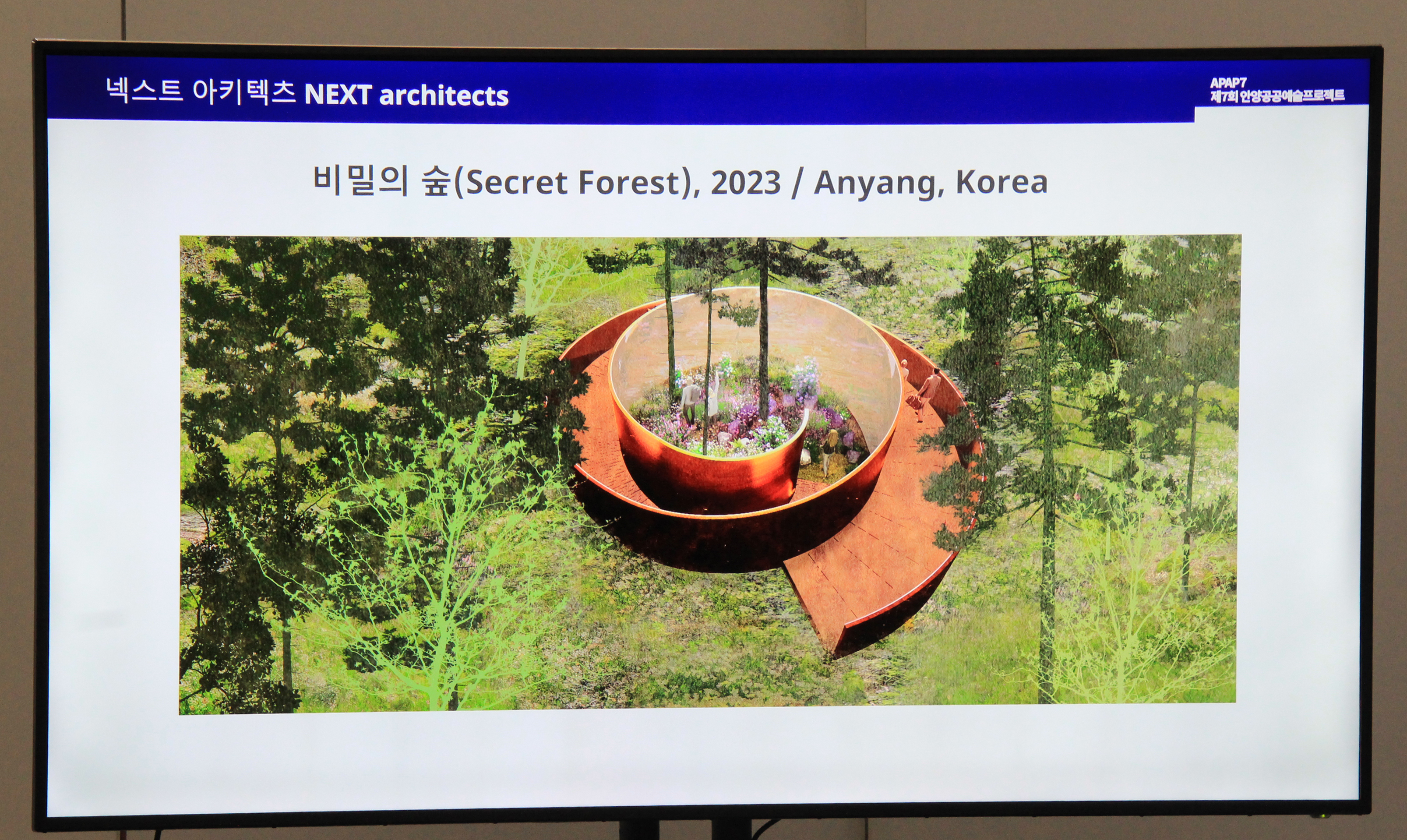 두 번째로 APAP7 참여 작가인 넥스트 아키텍츠의 출품작 ‘비밀의 숲’을 공개하는 기념식이 한/영 순차통역으로 진행됐다.