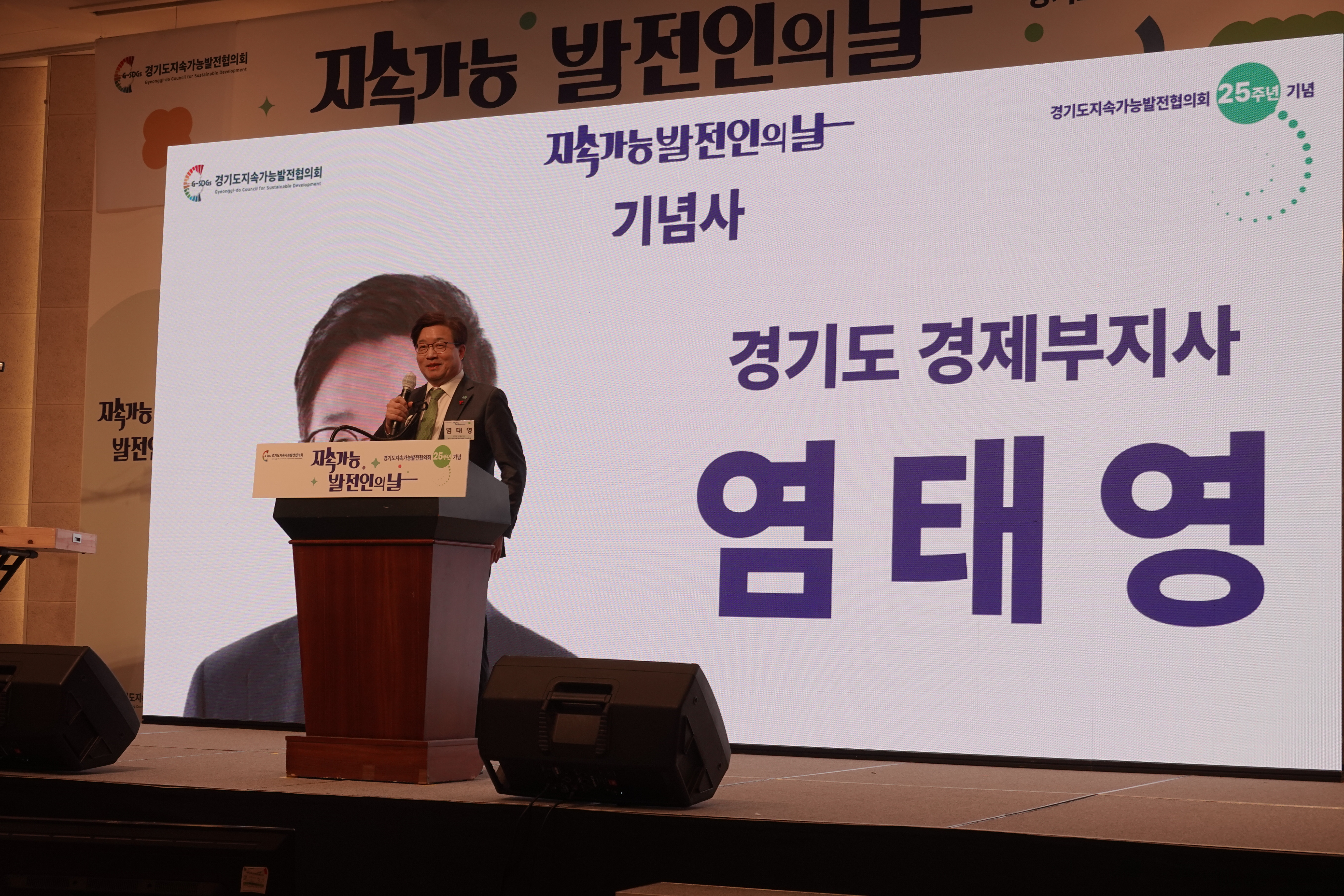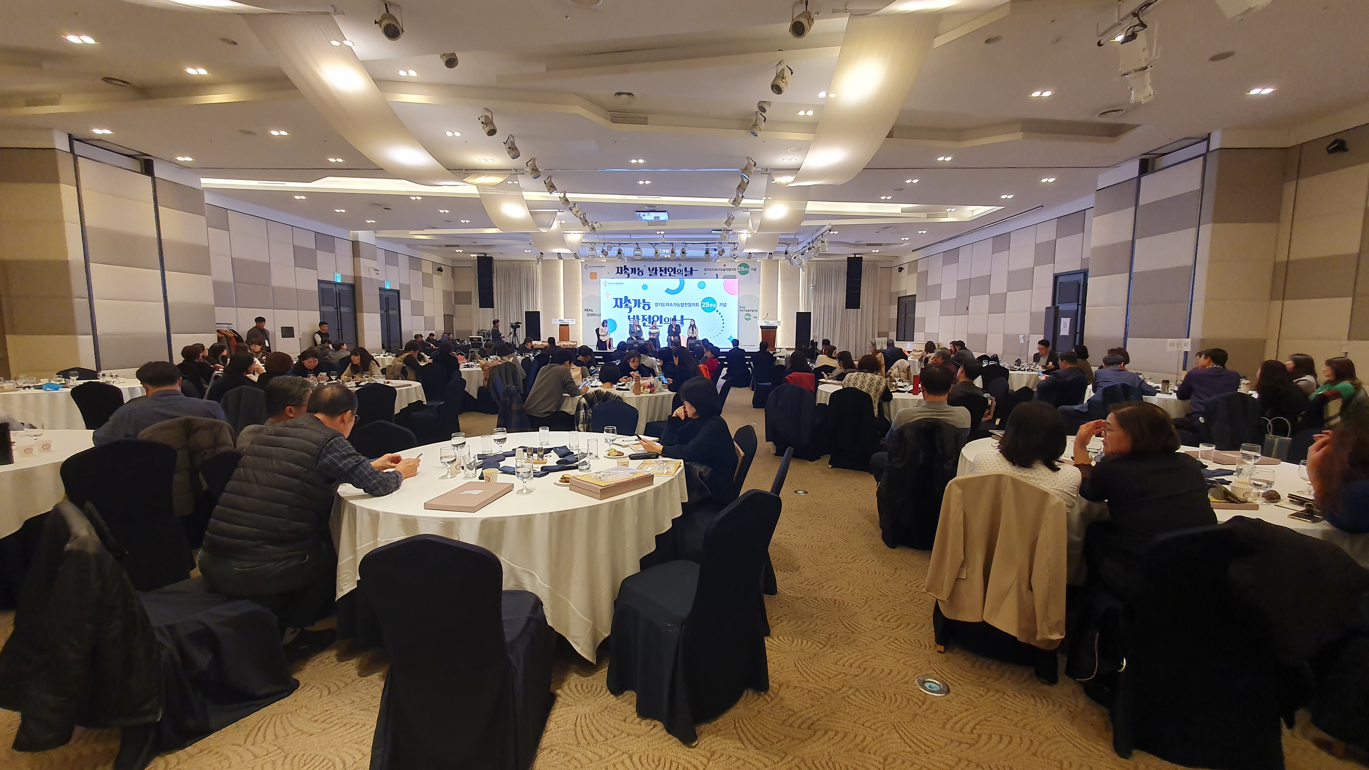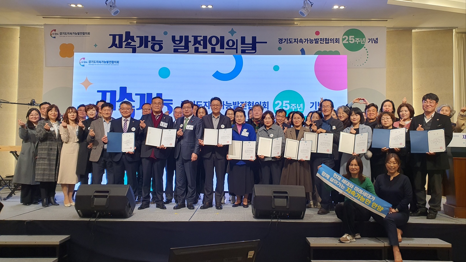 경기도지속가능발전협의회는 지난 8일 오후3시 화성에 위치한 푸르미르호텔 1층 그랜드볼룸에서 25주년 기념 지속가능빌전인의 날 행사를 개최했다. 이날 행사에는 경기도지속가능발전위원회 원호식 상임회장과 한금진공동회장, 경기도 관내 27개 시군 지속협 상임회장들과 위원 및 활동가, 행정, 유관기관 이해당사자 등 250여명이 참석했다.