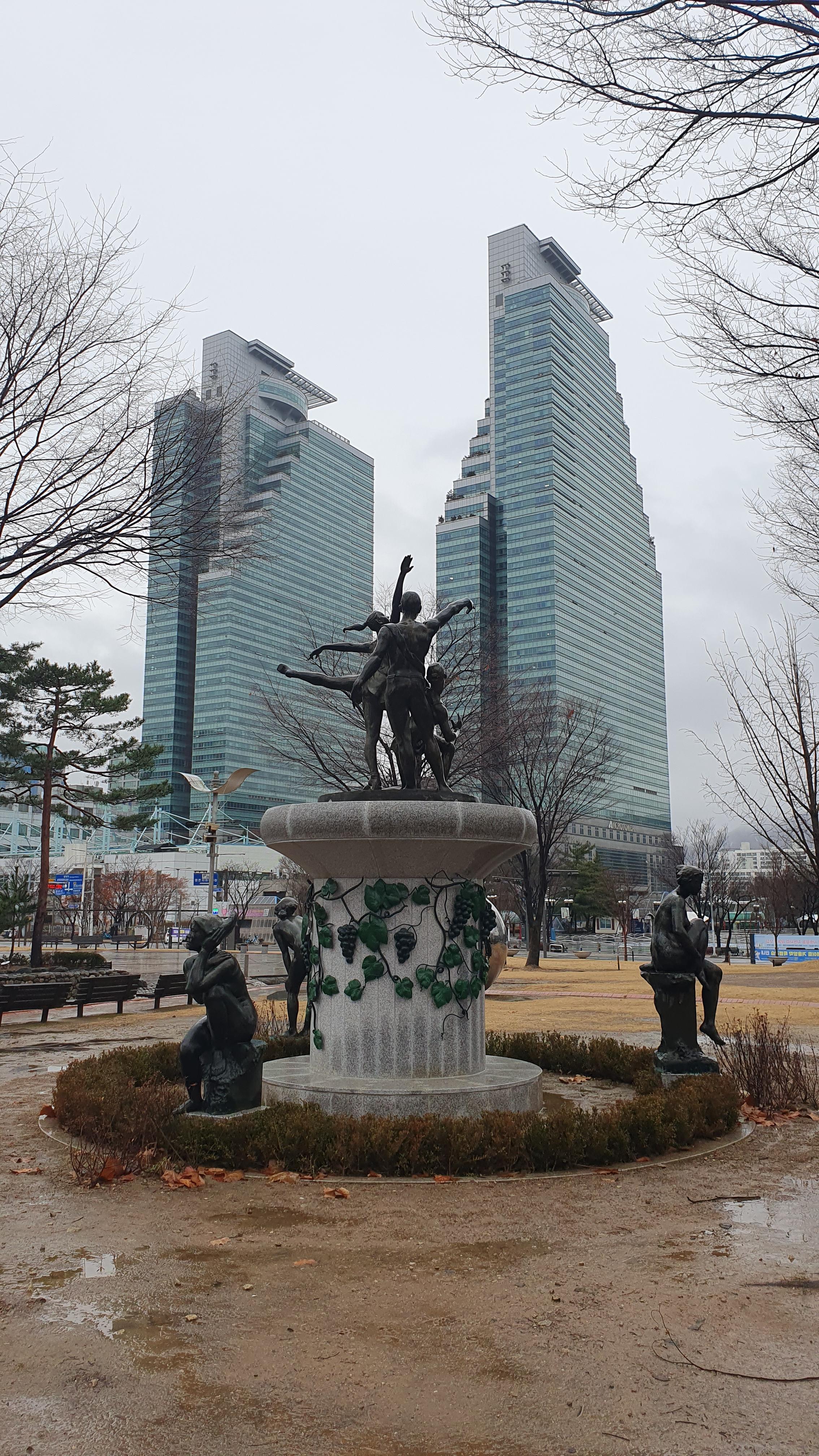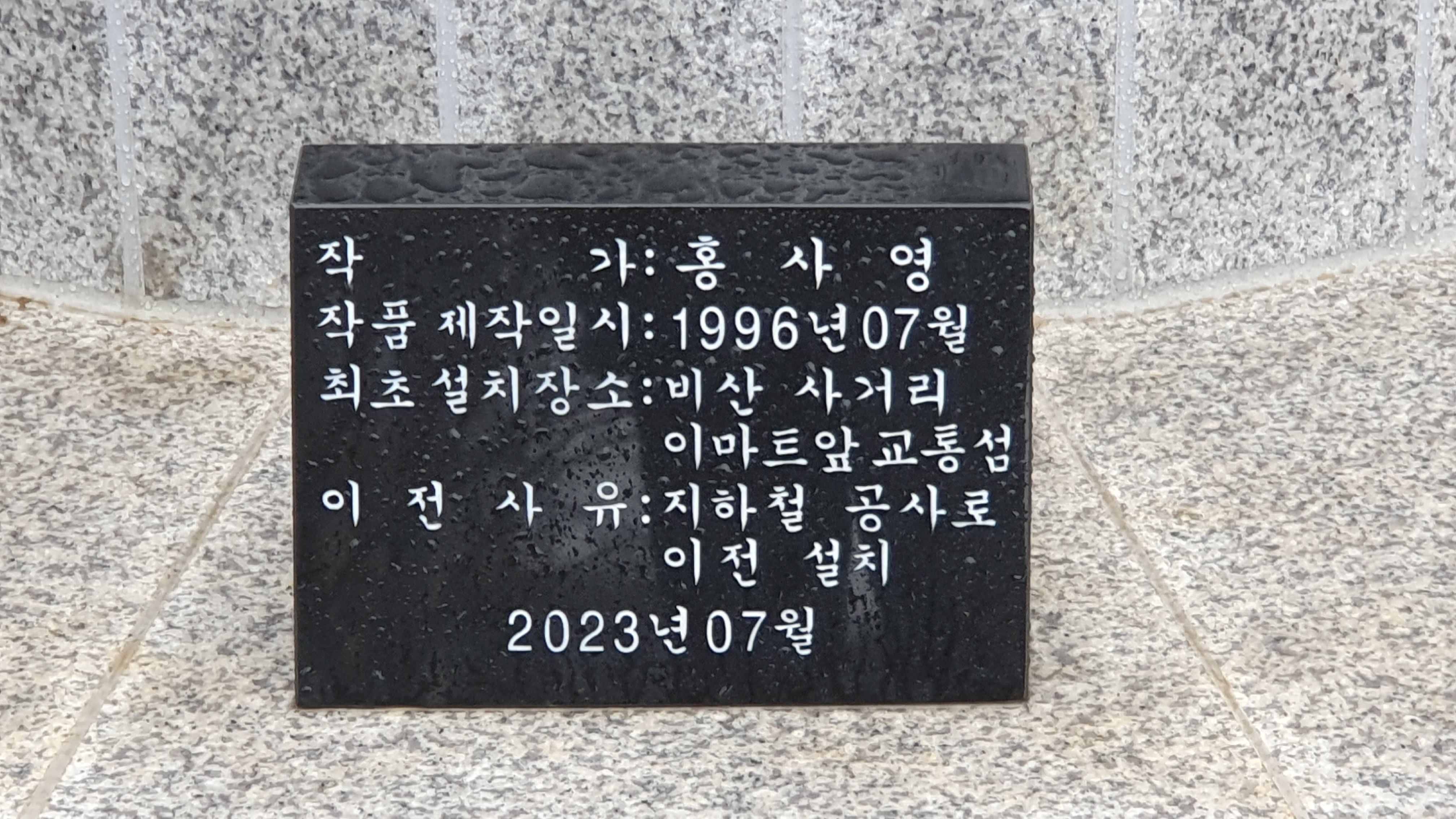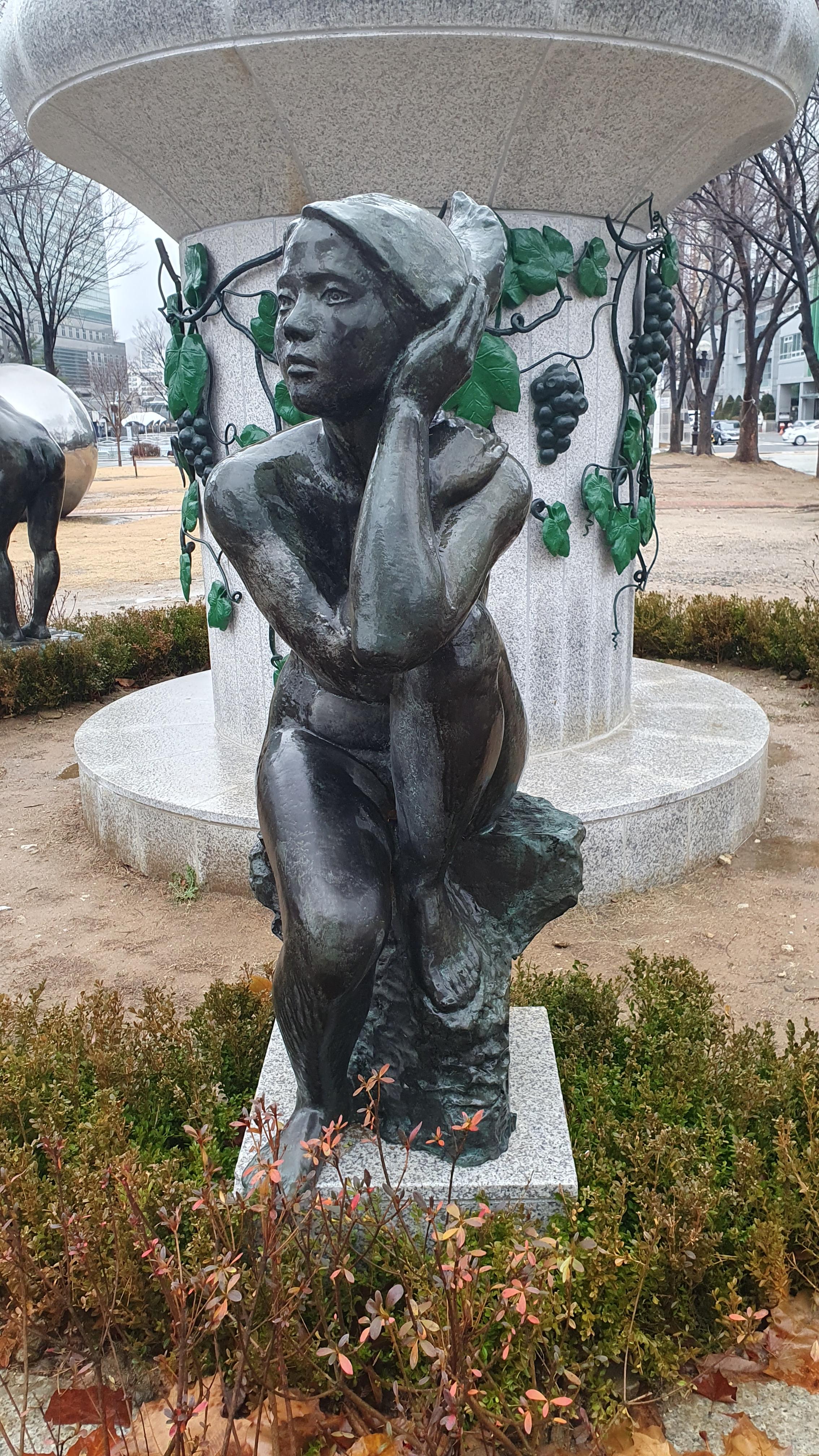 2023.12.15/ #도시기록 #미술작품 #안양 #평촌중앙공원 #홍사영/ 안양 평촌중앙공원 동쪽구역에 처음보는 대형 조형물(공공미술작품)이 생겼다. 2023년 apap7 개막을 앞두고 공사가 한창이기에 안양공공예술프로젝트 영구작품인가 했더니 2009년 작고하신 홍사영 화백(전 안양미술협회 지부장) 작품이다. 작품앞 표지석을 보니 1996년 7월에 제작하여 비산사거리에 이마트앞 교통섬에 설치했던 것인데 월곶-판교 지하철 공사로 인해 평촌중앙공원으로 이전 설치한 것이다. 그런데 작품명이 없다. 새 표지석에 작품명도기록하면 좋았을것을. 포도장식이 있는걸 보니 작품명이 포도와 연관 추정.