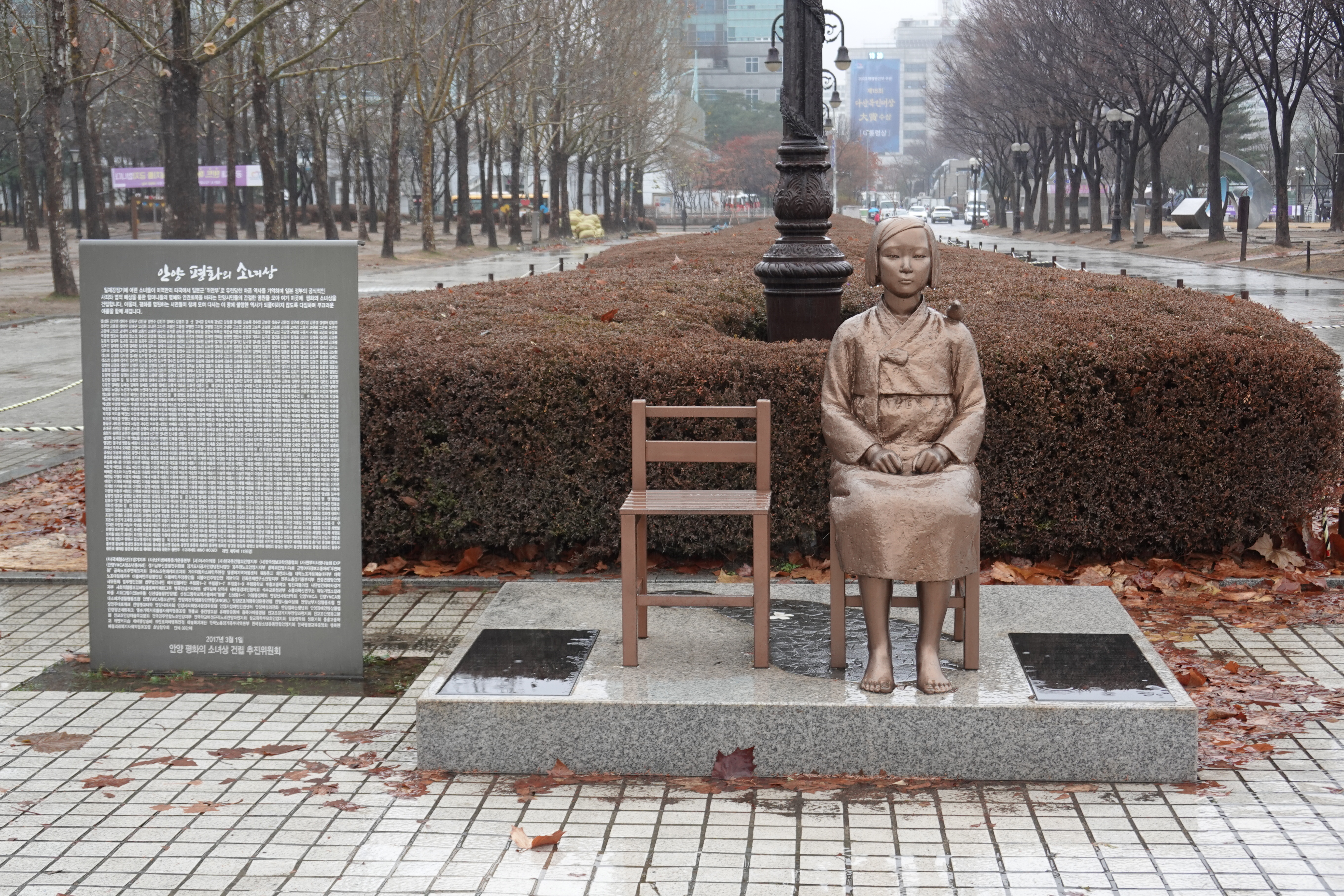 도시사진기록/골목풍경 [20231215]안양 평화의소녀상 2023년 마지막 기록을 하다 안양똑딱이 2023. 12. 15. 16:24 2023.12.15/ #도시기록 #평화의소녀상 #안양 #평촌중앙공원/ 비오는날 중앙공원을 지나며 평화소녀상을 찾다. 2023년의 마지막 기록이지 않을까 싶다. 날이 추워지고 눈이라도 내리면 누군가 와서 소녀상 목에는 머플러를 두르고, 손에는 벙어리장갑을 끼우고, 발에는 신발을 놓아두지 않을까 싶다. 저작자표시 비영리 변경금지 (새창열림)